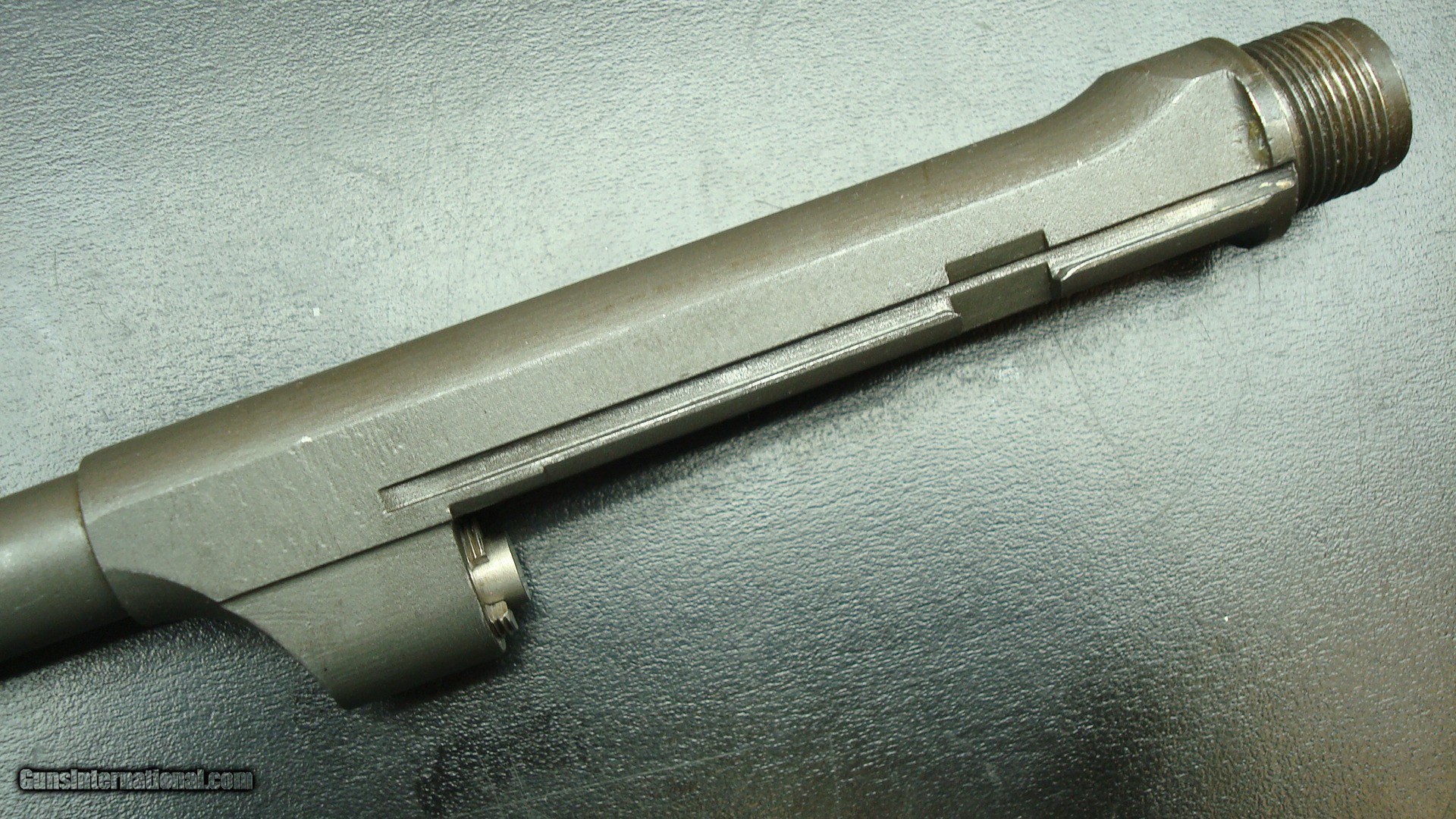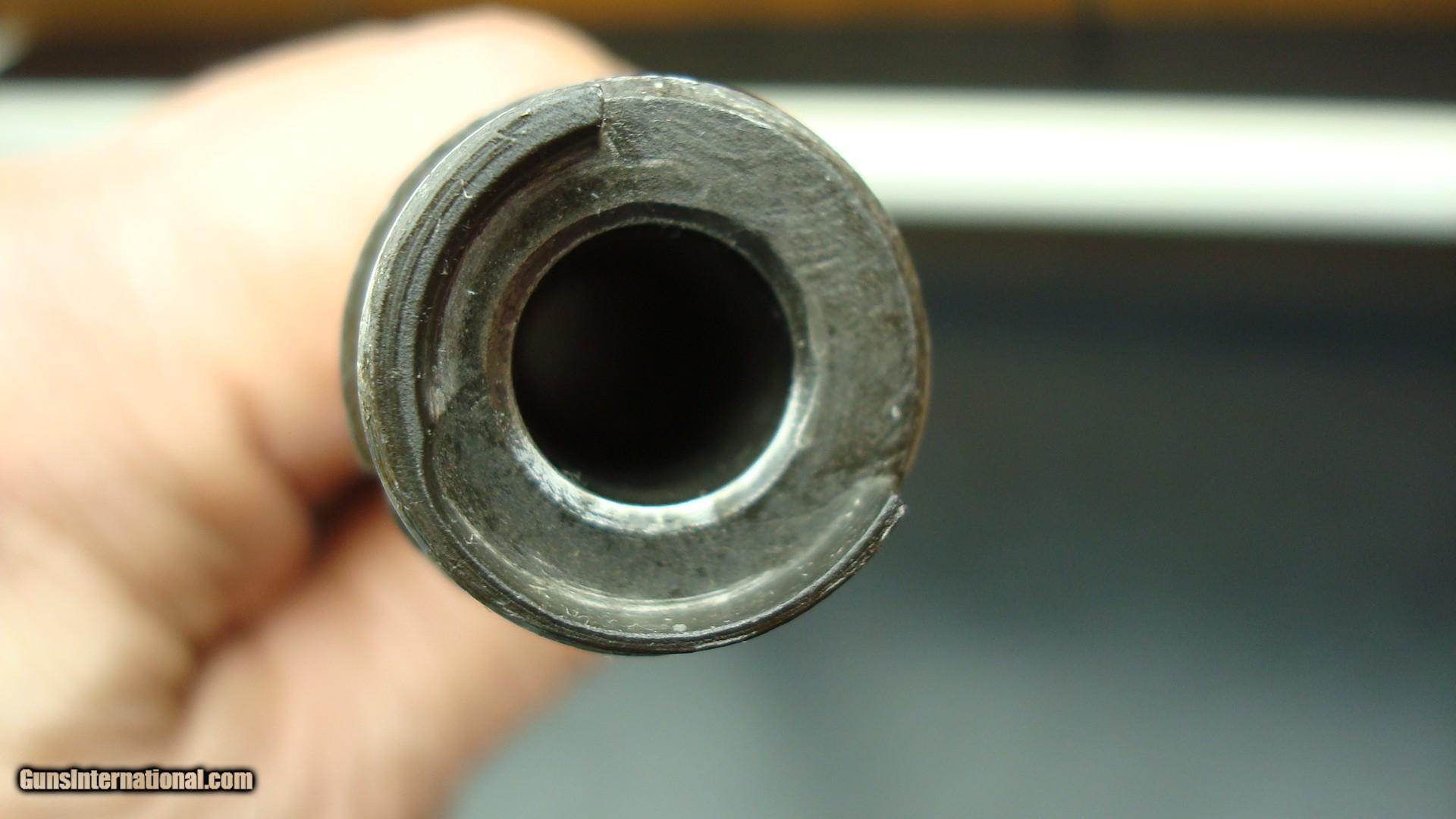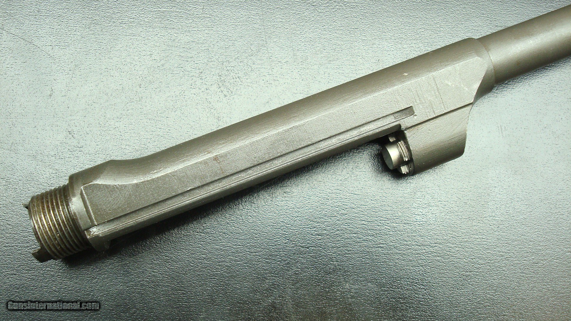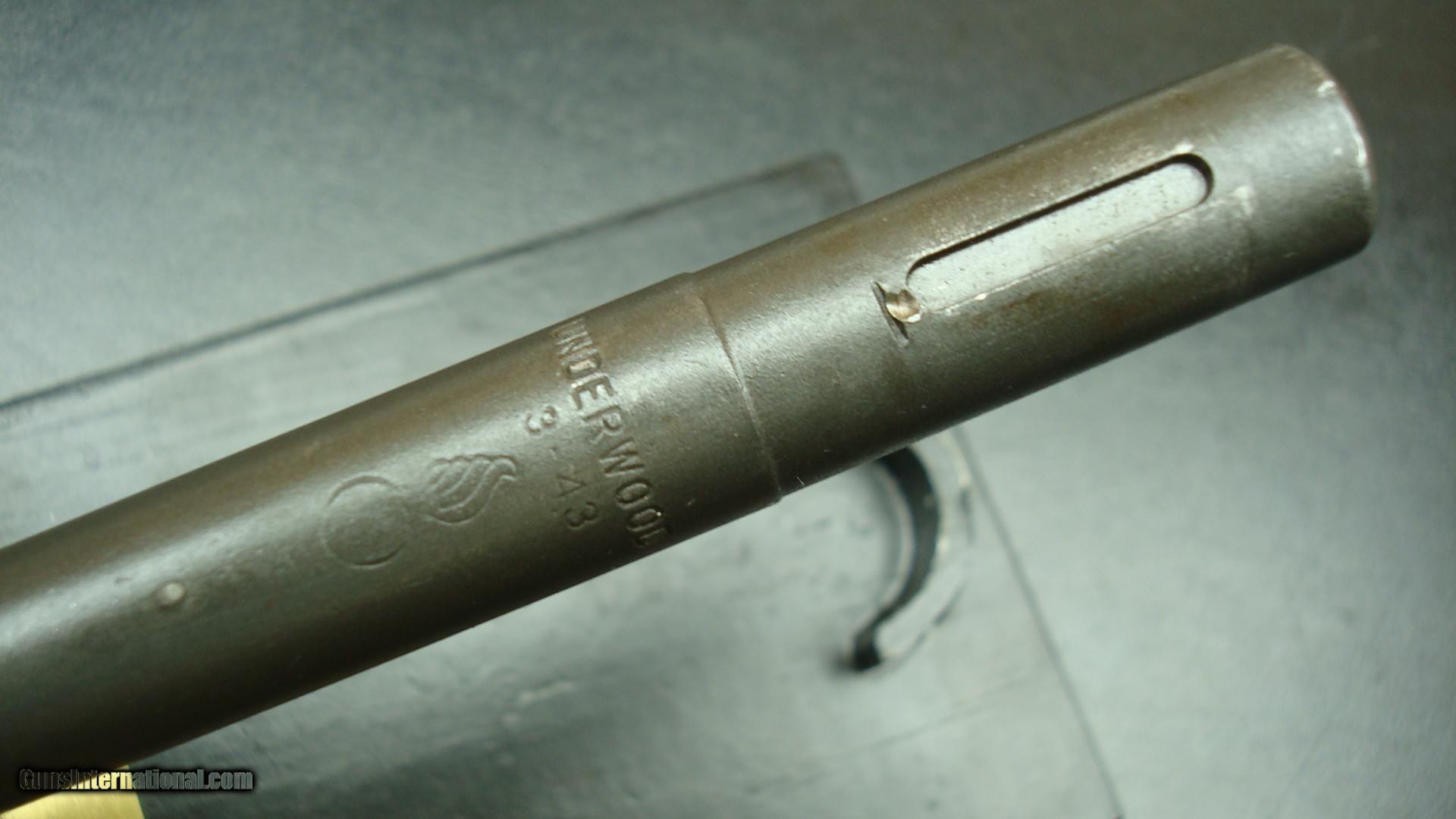 Description: M1 Carbine barrel. NOS Underwood carbine barrel, 3-43. Ordnance stamp just below date on barrel. I bought this many years ago from a NOS surplus batch that had the front sight and C bands removed from them. Never installed or fired, mint bores. No dings, dents or scratches. No import markings. Just as issued. Some surface scuffing in the parkerizing from the C bands and front sight being removed. Priority mail shipping charges to buyer zip code. Payment by Postal MO, Bank check or MO, personal check with shipping pending bank clearance. SOLD Rifle Caliber: .30 Carbine |