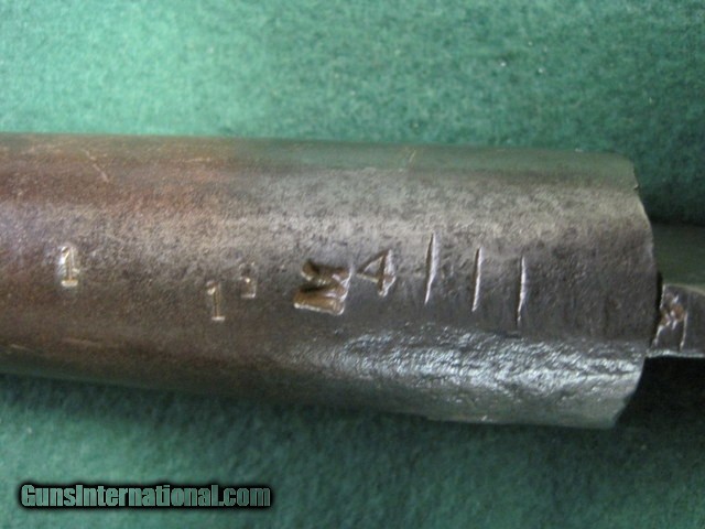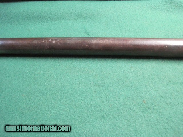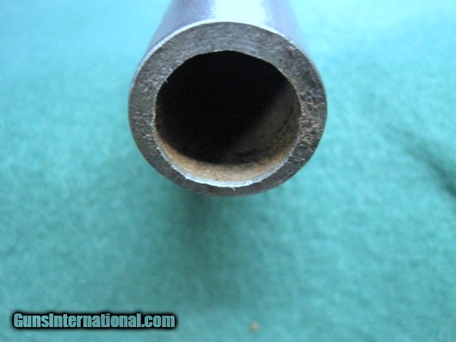 Description: I got 8 of these barrels from an old time gunsmiths estate 30 yrs ago. I do not know why but they were all cut off like this one. I have had a lot of fun making pistols & carbines out of them. This is the only one I have left. Bore is about like you would expect - dark with some pitting. Length 21 1/4", Outside dia at the breech is 1 1/4" &15/16" at the muzzle. Sold as Parts & Accessories with no returns .Ships only to lower 48 states. Shipping is $15. This will be added to the purchase price. No add on fees for credit cards . SOLD |