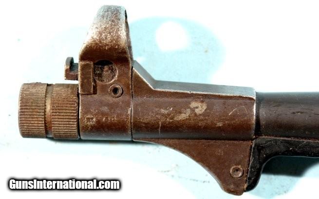Description: ORIGINAL WW2 GERMAN STEYR BARREL ASSEMBLY FOR MP38 OR MP40 MACHINE PISTOL. Serial number "1098X" and all matchign except front sight with Erma code "280" under Eagle. Rest of unit with Eagle over "623"(Steyr) codes. Original bakelite barrel protector with Material Proofing House symbol cast into it. Barrel threads crisp with two-piece collar still present. Six sided barrel nut. Late front sight with guard(for use with nvr used muzzle cover). Blank firing muzzle nut thread protector with some heavy rust build-up but threads under are perfect(will clean up better). NO damage to muzzle itself(just sleeve) with one groove. Bore is fair. Usually found without bakelite guard as easily broken. SOLD Handgun Caliber: 9x19mm Parabellum (9mm Luger, 9x19mm NATO) |