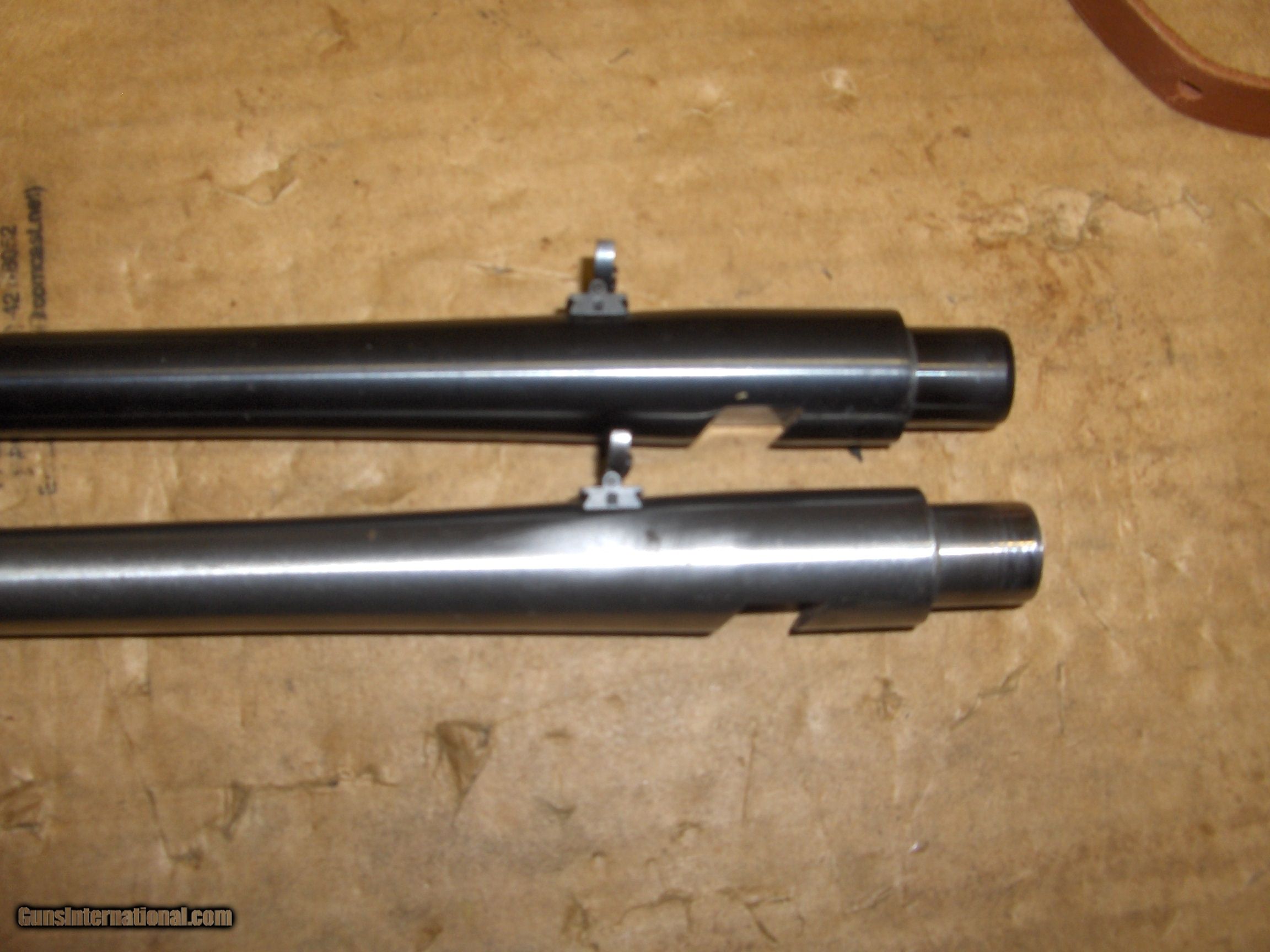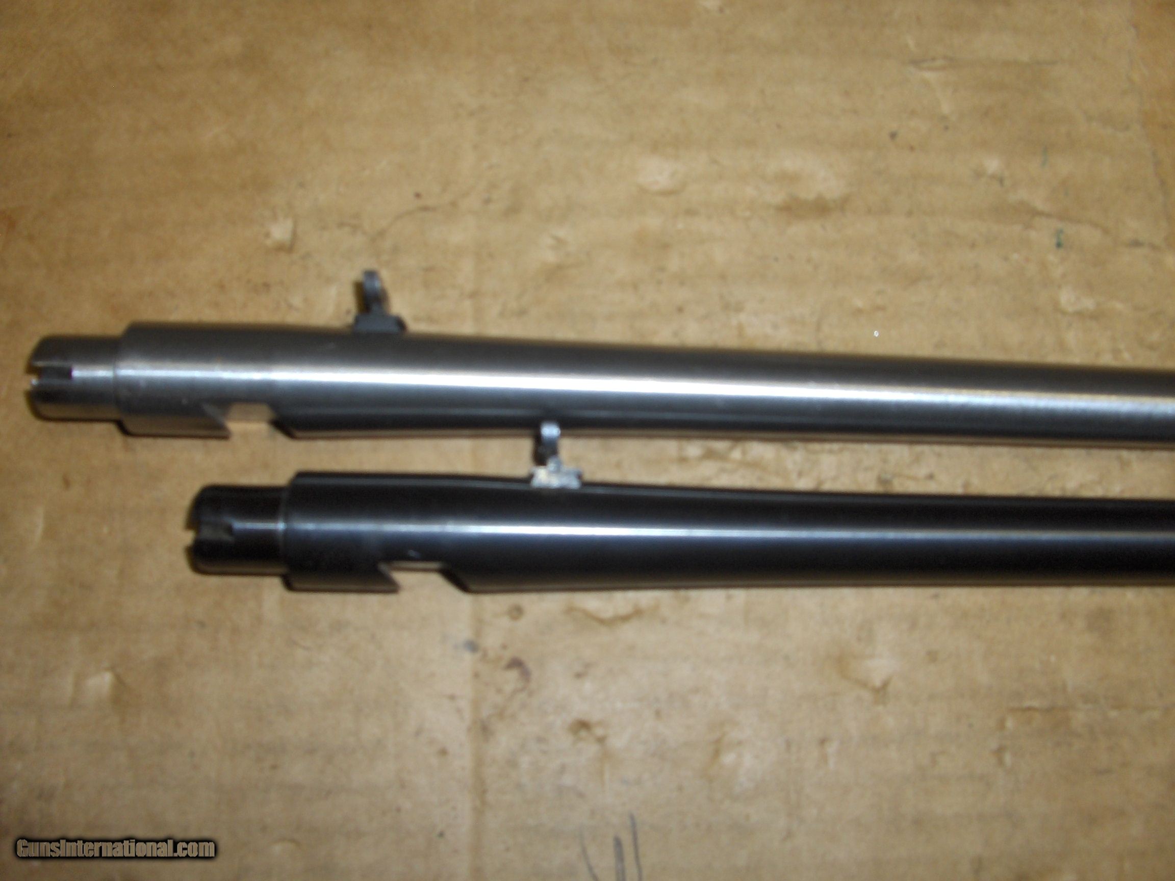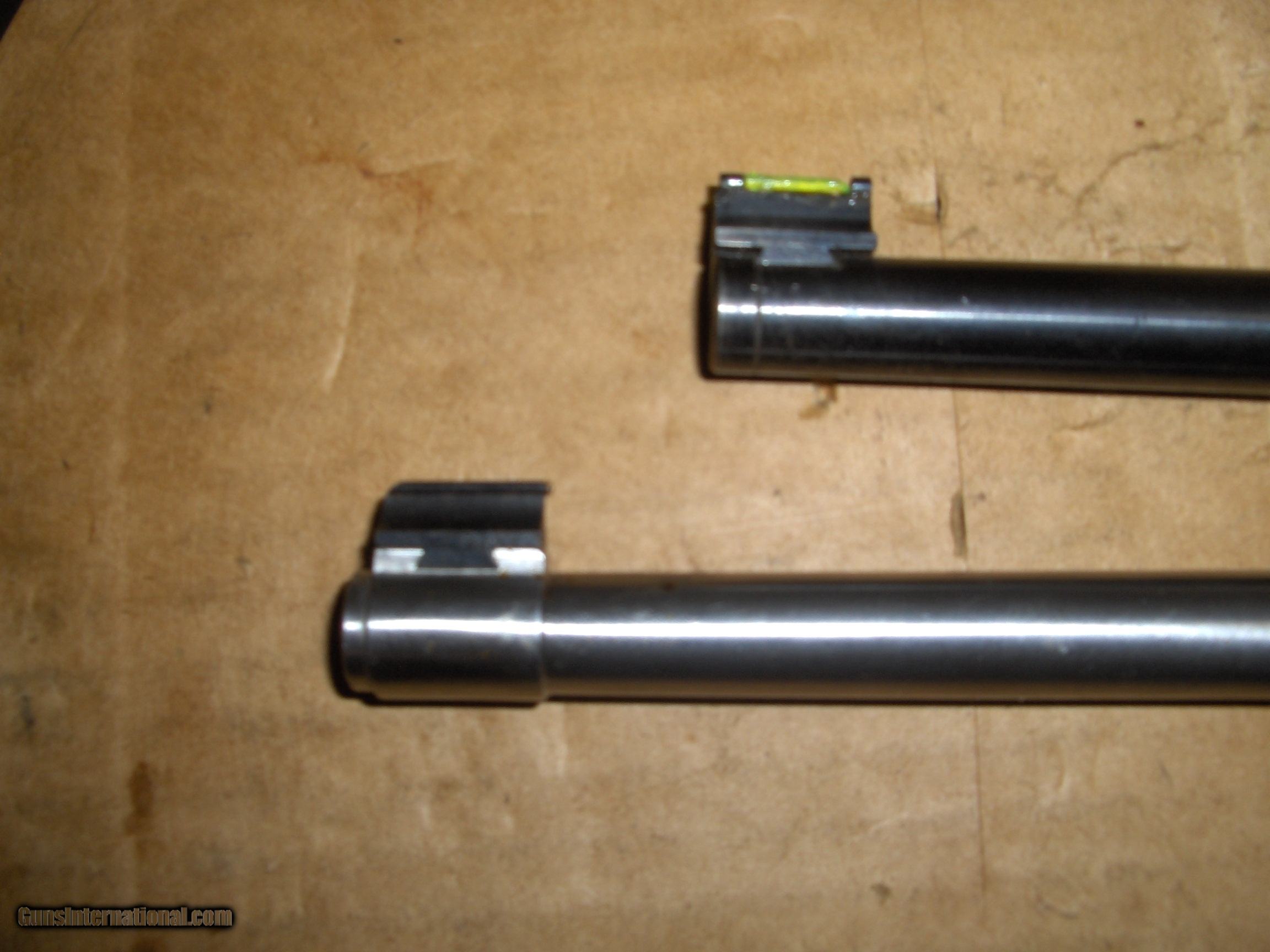 Description: 2 Ruger 1022 baqrrels. 1. Blued 16" very nice inside and out. 2. 17 1/2' S/S also very nice. Both have front and rear sights. SOLD |