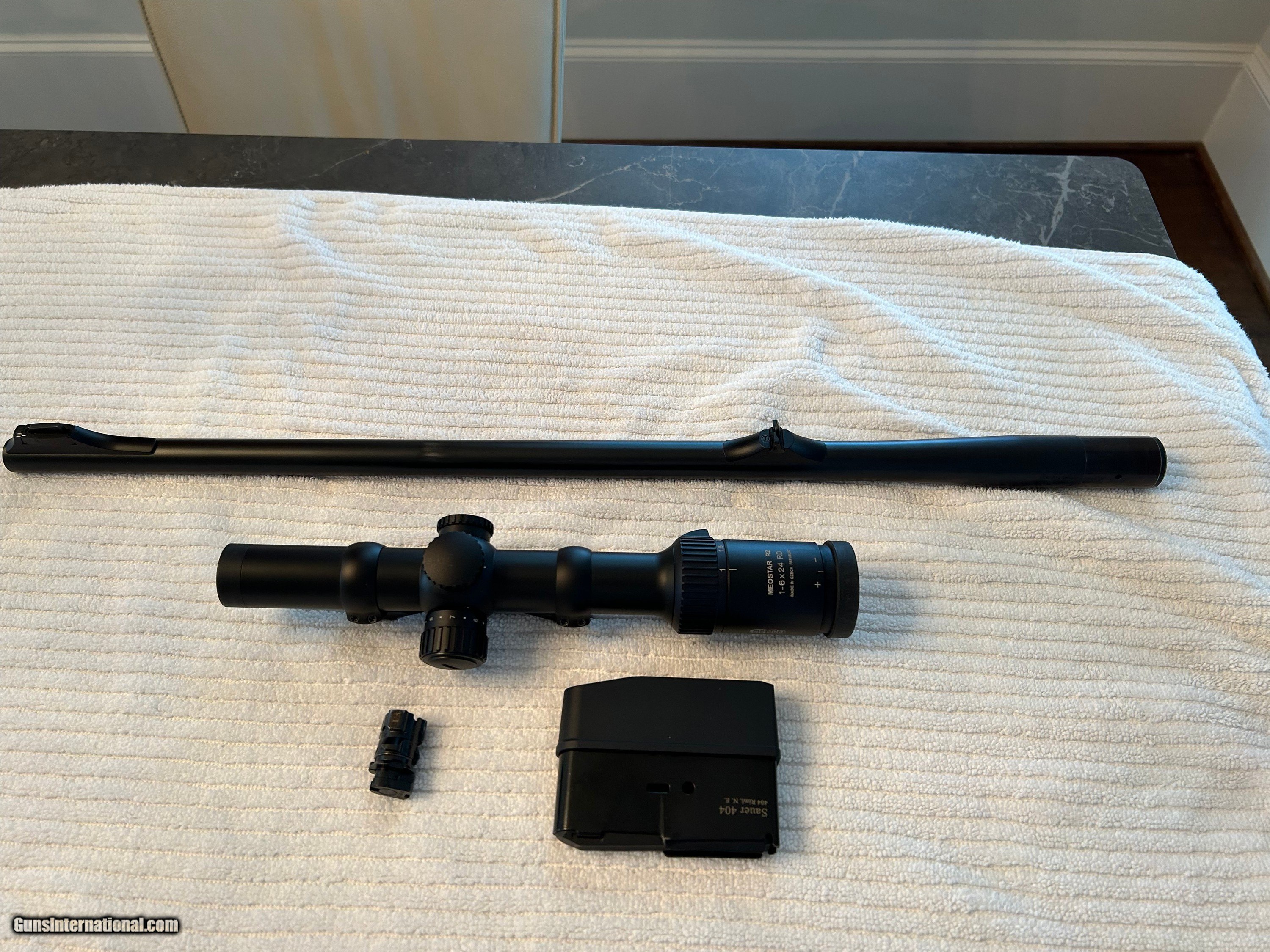 Description: Sauer 404 Barrel in a 404 Jefrey Barrel with Front and Rear Sights $1,800.00 Sauer 404 Magazine 5 shot in 404 Jeffrey $275.00 Sauer Left Handed Bolt Head for 404 Jeffrey $300.00 MeOpta Meostar R2 1-6x24 RD 4C Reticle Iluminated Scope $925.00 WILL SELL ALL ITEMS AS A PACKAGE FOR $3,300.00 I REALIZE NOT EVERYONE IS LEFT HANDED BUT WILL DEDUCT $300.00 FROM THE BOLT HEAD IF NOT NEEDED and will deduct the Meopta Meostar Rifle Scope if not needed. I WILL NOT AT THIS TIME SELL THE BARREL, AND MAGAZINE SEPARATELY . I am not looking to do trades but will entertain any resonable offers Buyer will pay shipping from Houston,Tx SOLD Rifle Caliber: .404 Jeffery |