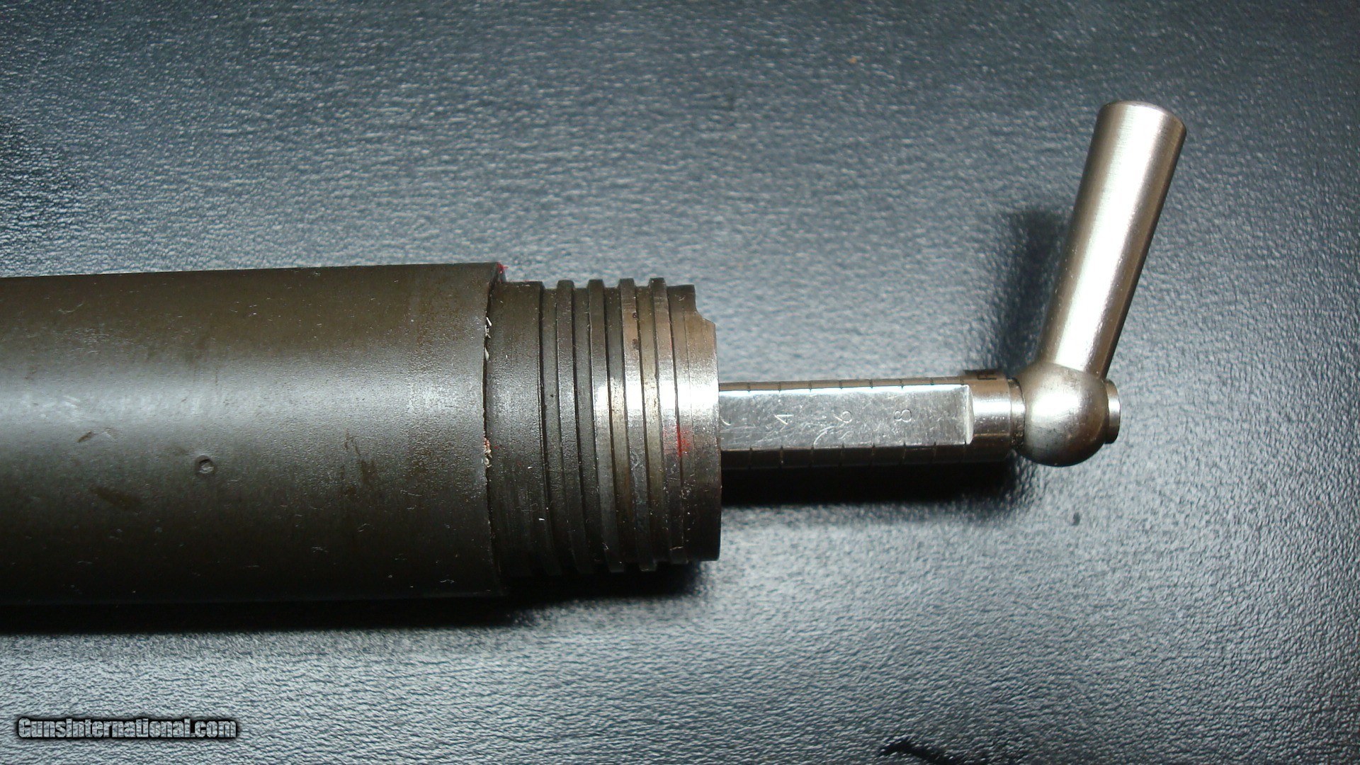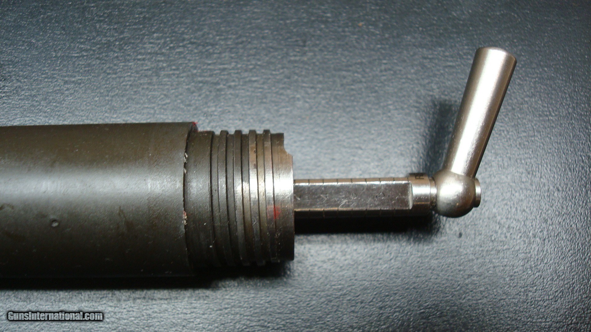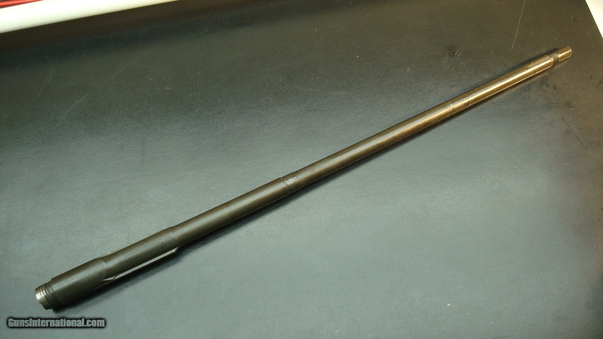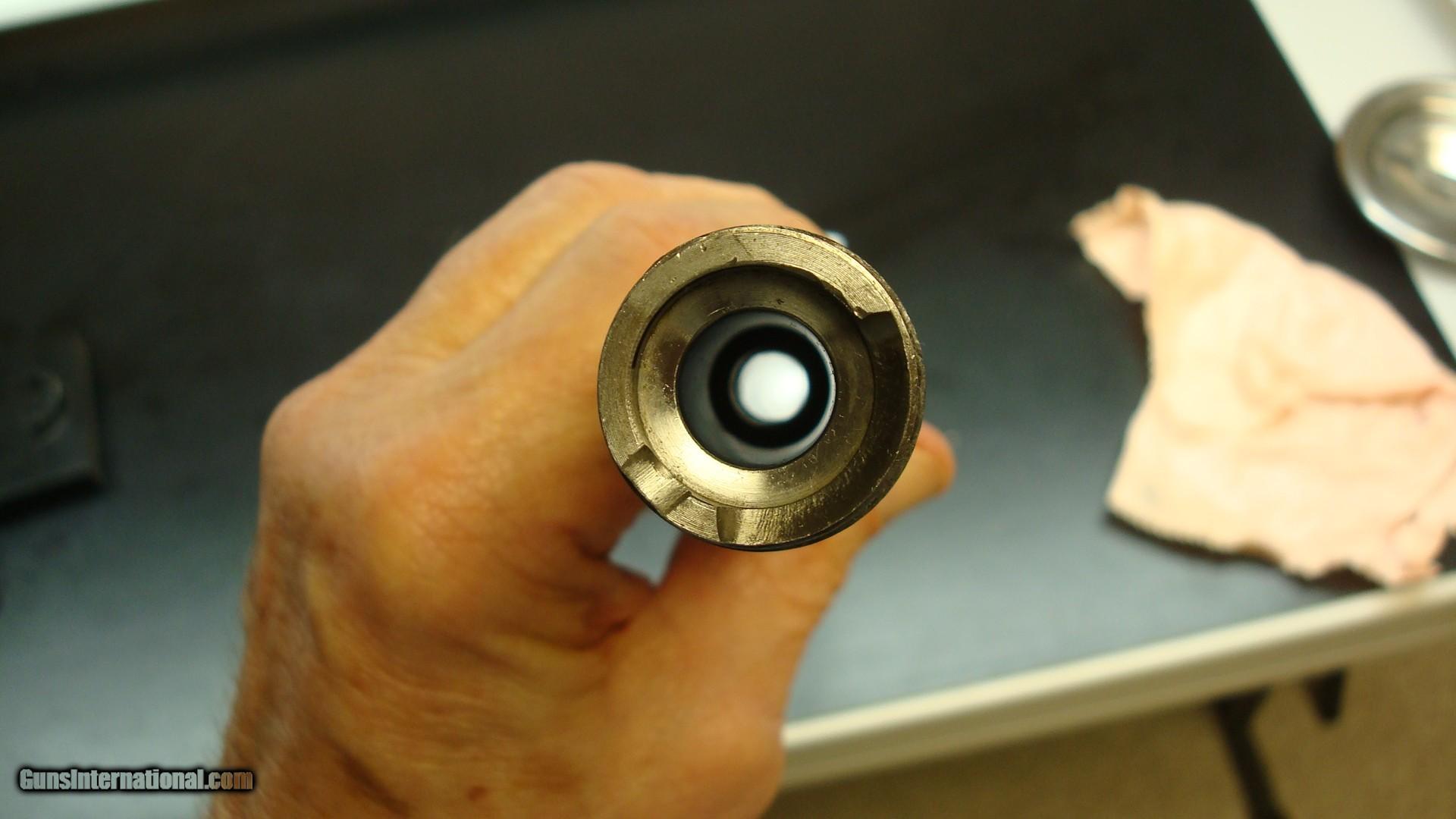 Description: M-1 Garand barrel. 3-S-A-5-44. Excellent condition. Bright bore, bright breech, no pitting, no vice marks, no import marks, good threads ME is just over 0. TE is just under 2. Dark blackish grey Parkerizing. Top of barrel marked D58448-32-A-77-B-3 along with a partial ordnance stamp, an A and a P. Gas port is not chromed. Some light scuffing in Parkerizing but estimated over all Parkerizing at about 95% or better. Others to follow. Priority mail shipping charges to buyer zip code. Payment by Postal MO, Bank check or MO, personal check with shipping pending bank clearance. SOLD |