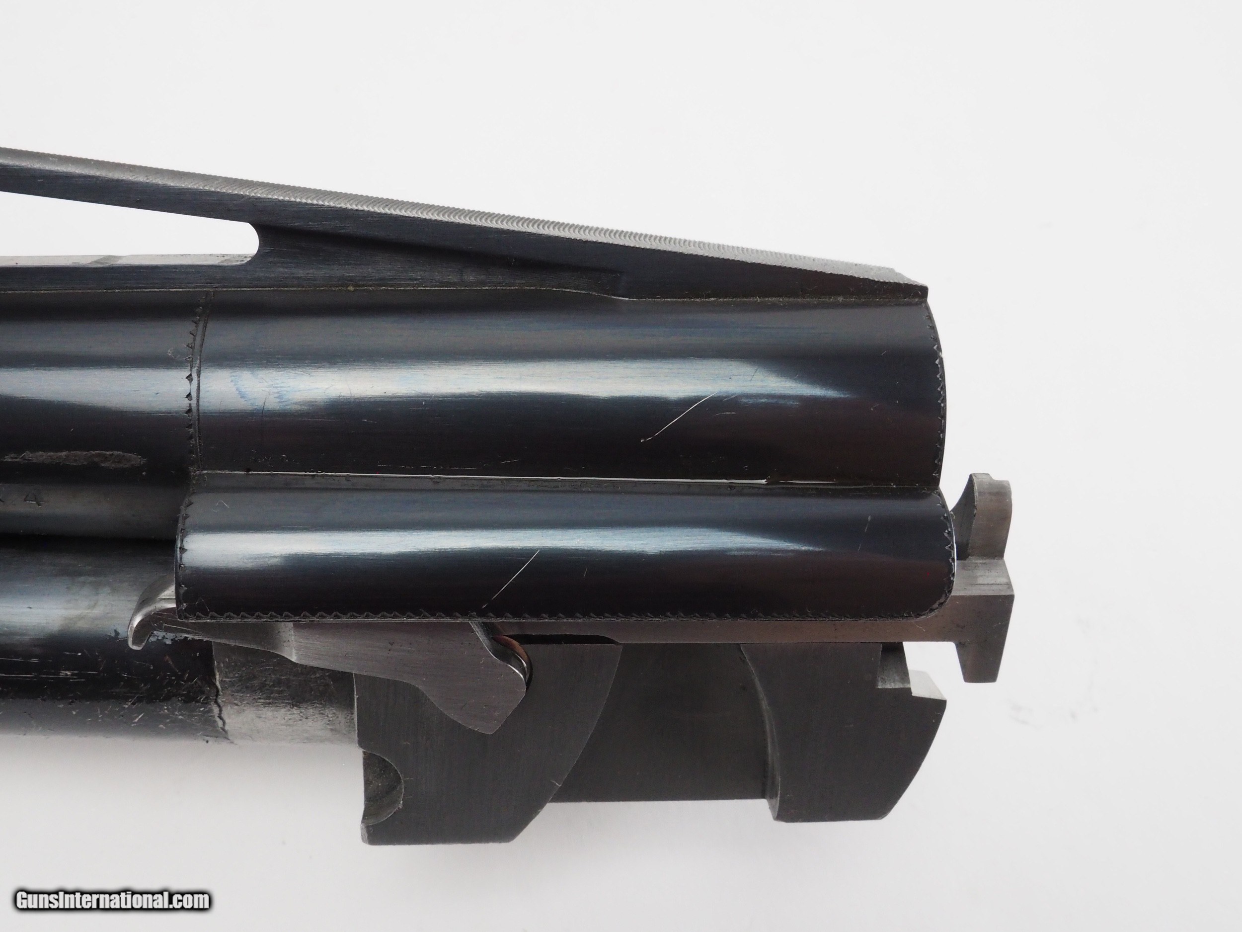 Description: Matching DB81 barrel set is very good condition. O/U barrels appear to have been reblued at one point, and very well done. Both barrels have the correct Type 4 post/hook. The top single barrel shows a couple of scratches on the bluing, but nothing signficant. Top single barrel features factory screw-in chokes, of which four are provided. The O/U barrels have fixed chokes. The bottom barrel of the O/U has been ported. Serial numbers are matching, and are not restamped. All three ejector springs ae strong and fresh. Locking surfaces and pivots of both barrels are in good condition. O/U SPECS: Length: 31.5" Top: .729"/.034" constriction Bottom: .726"/.014" constriction (ported) TOP SINGLE SPECS: Length: 33.5" Bore: .729" Choke: factory screw-in, four included (#7, #8, #9, #10) SOLD Shotgun Gauge: 12 Gauge |