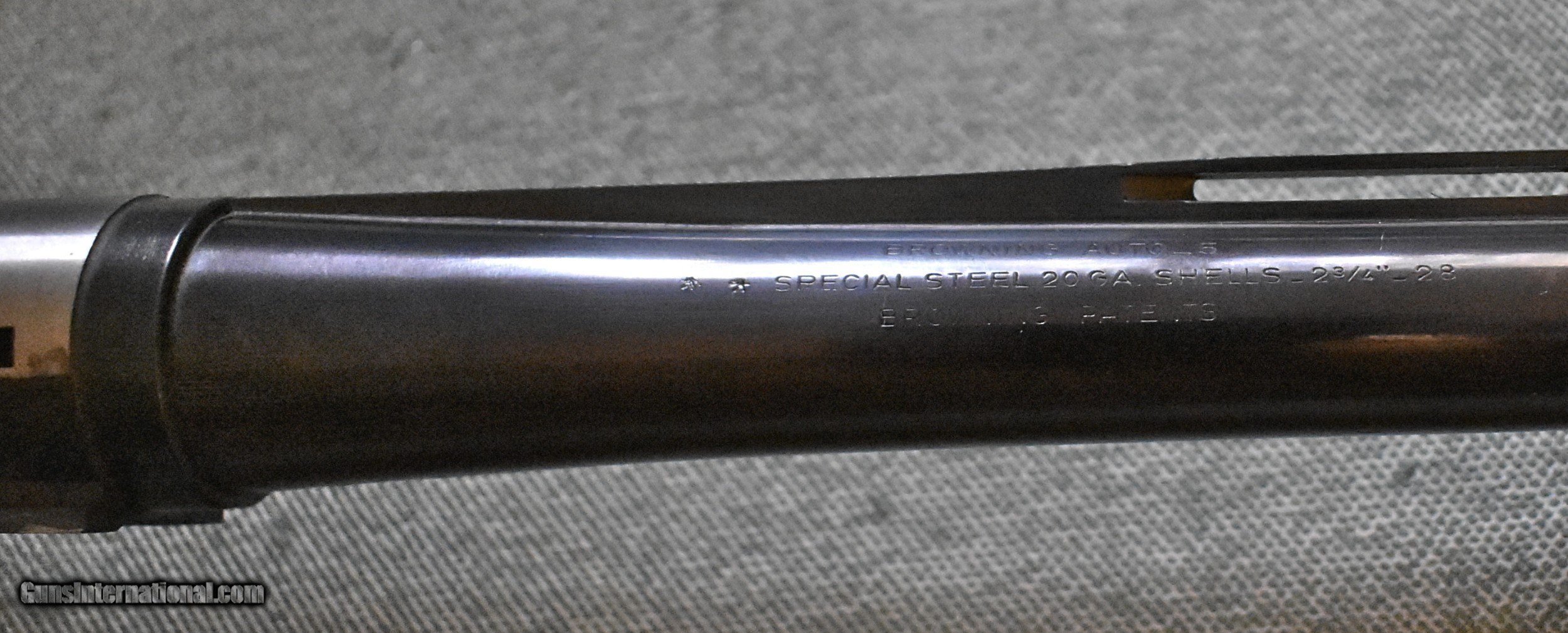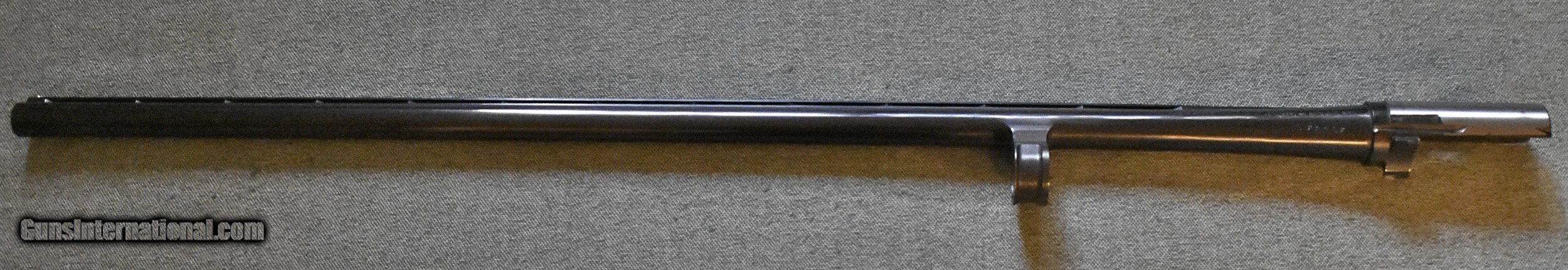 Description: Belgian Browning 20 gauge 23/4" vent rib barrel. The 28" barrel is in excellent condition retaining 98% of the original blue. It is choked modified. e bore is mint There is a very light slide mark on the left side that is not visible when the barrel is on a gun. The bore is mint and shiny. Very hard to find in good condiiton with a vent rib. SOLD |