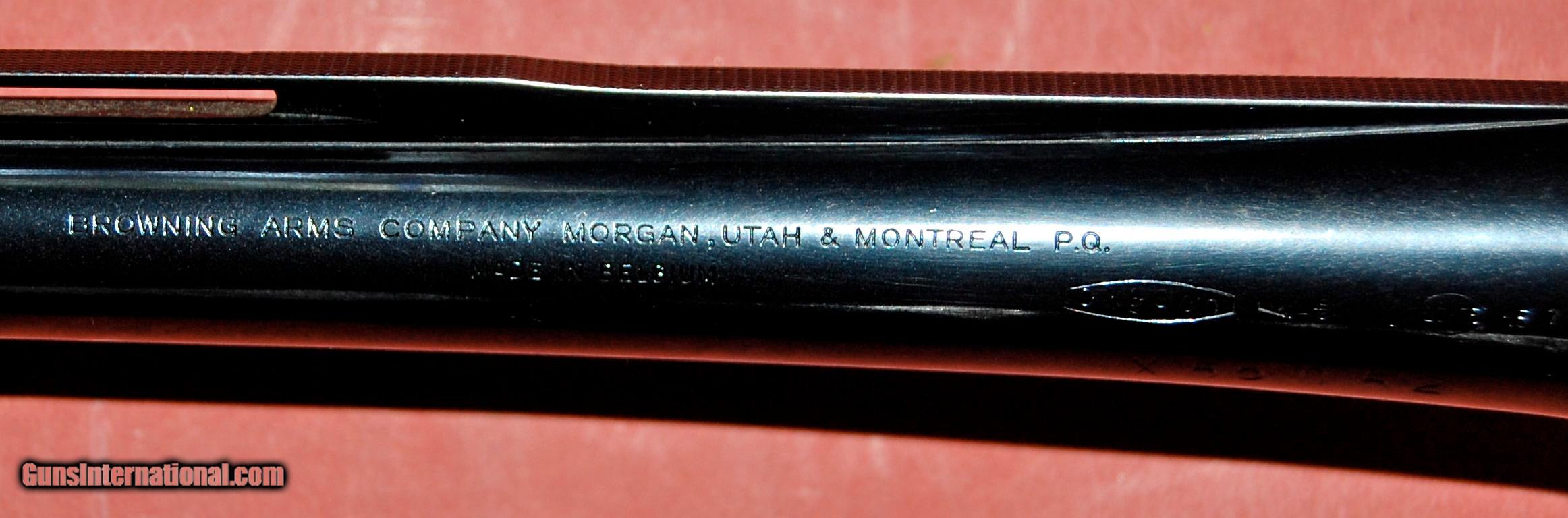 Description: Belgian Browning A5 20 gauge magnum vent rib barrel.This barrel is 28" long and choked full.It retains 98% of its original blue.The bore is mint and free of any rust or pits. There are slight slide marks on the barrel that will not show when the barrel is on a gun.Montral and Morgan Utah address. SOLD |