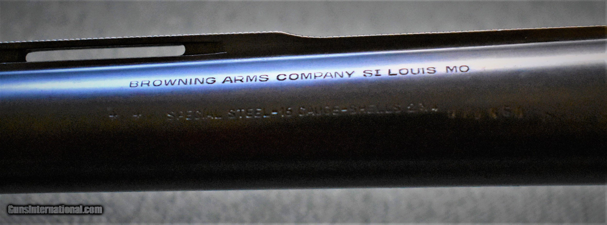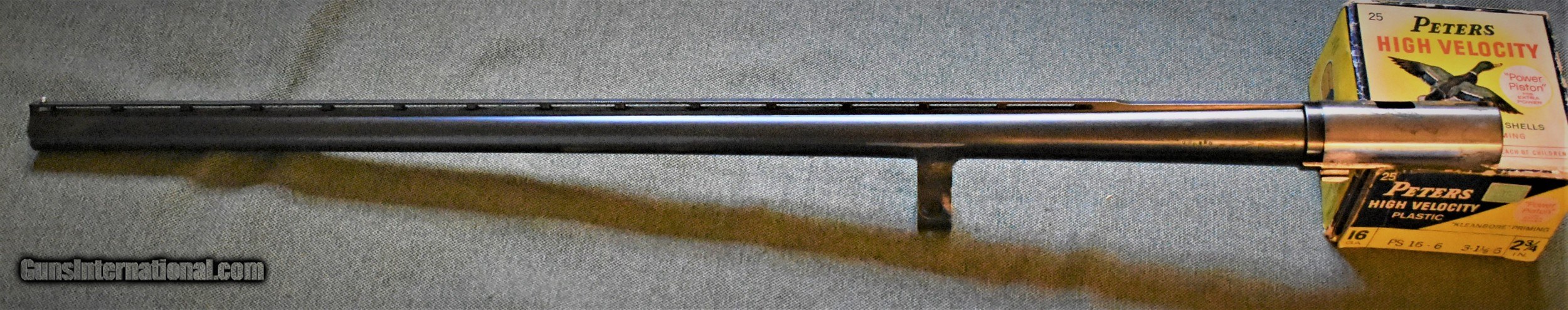 Description: Bekguan Browning Sweet 16 vent rib barrel. 241/2" cylinder bore. This was probably a barrel with a polychoke that was cut off. The muzzle is properly dressed down and looks good. (see photo). This would make a great barrel for grouse or quail hunting. Not a collector piece but a usefull barrel for close in shots. Also should work good with slugs. SOLD |