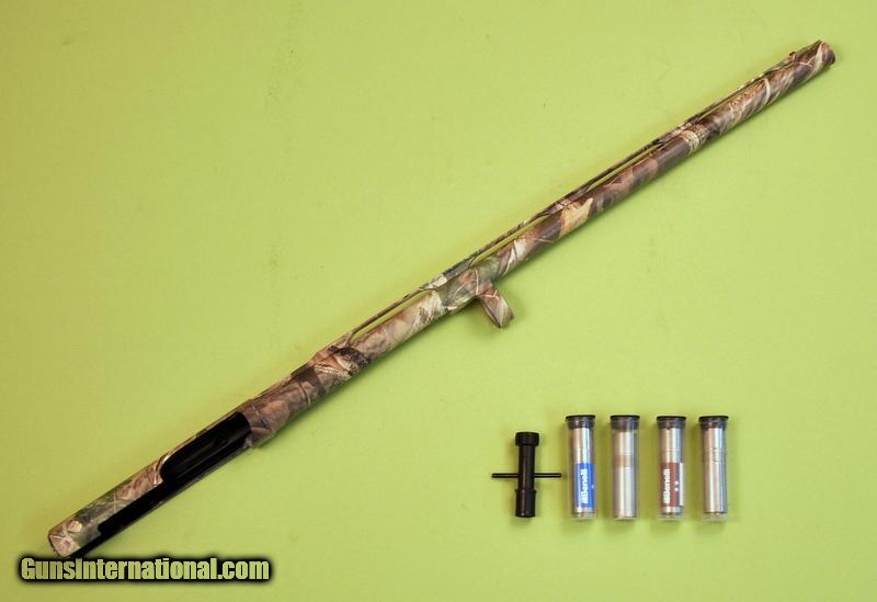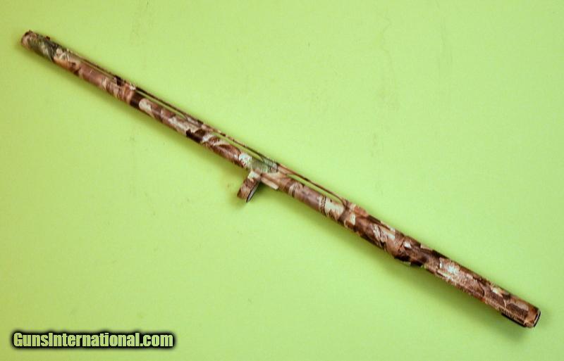 Description: 12 gauge 3-1/2". 24" Advantage Timber Camo vent rib Crio barrel. Red fiber optic front sight with steel mid bead. Includes set of 5 stainless steel Crio chokes (F,IM,M,IC,CYL) and wrench. Camo shows small finish chips & wear spots. Very good bright bore. Priority mail $15.00. SOLD |