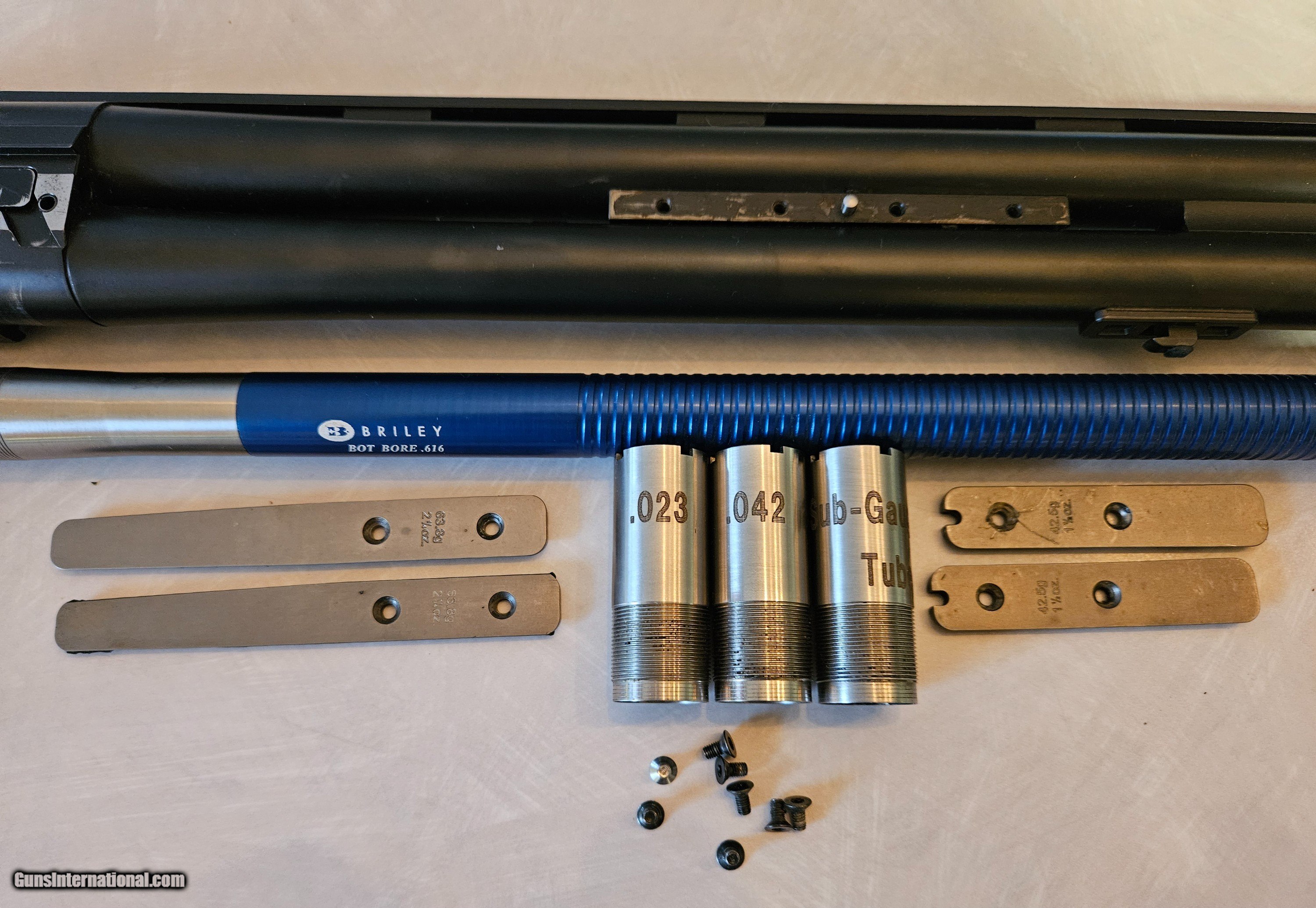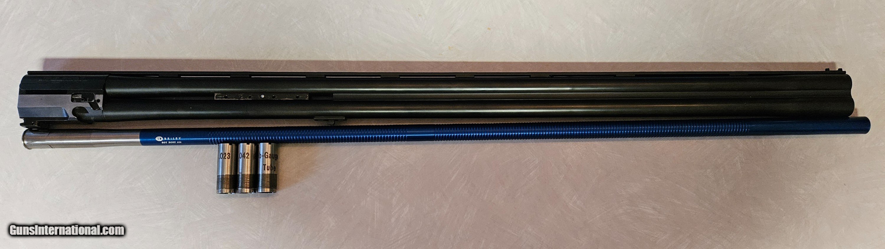 Description: Blaser F3 O/U barrel 34in. with one 34in. Ultimate Ultra Light (straight rifling) 20 ga. Briley sub-gauge fitted tube. 34.5" *** note the top barrel has slight bulge and should not be used.*** Bottom barrel is fine condition. Perfect for singles trap in both 12 & 20 gauge. Chokes included are. 12ga. Flush. 023 & .042 also choke for sub-gauge tube 20 ga. .015 Factory barrel weights & screws Call or email if you have any questions SOLD Shotgun Gauge: 12 Gauge |