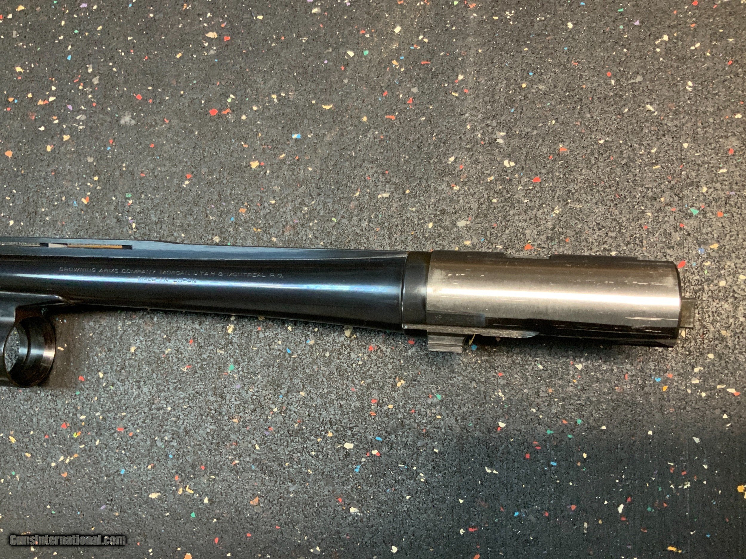 Description: (Sale Pending)Barrel only for a Browning A-5 20 gauge shotgun. This is a Japan made 26 inch vented rib barrel with the invector choke system. Appears new with the improved cylinder insert installed. One small handling ding on the bottom near the muzzle keeps it from being mint. Too small to photograph well. Pictures tell the story. Please add $25 for shipping and insurance. SOLD Shotgun Gauge: 20 Gauge |