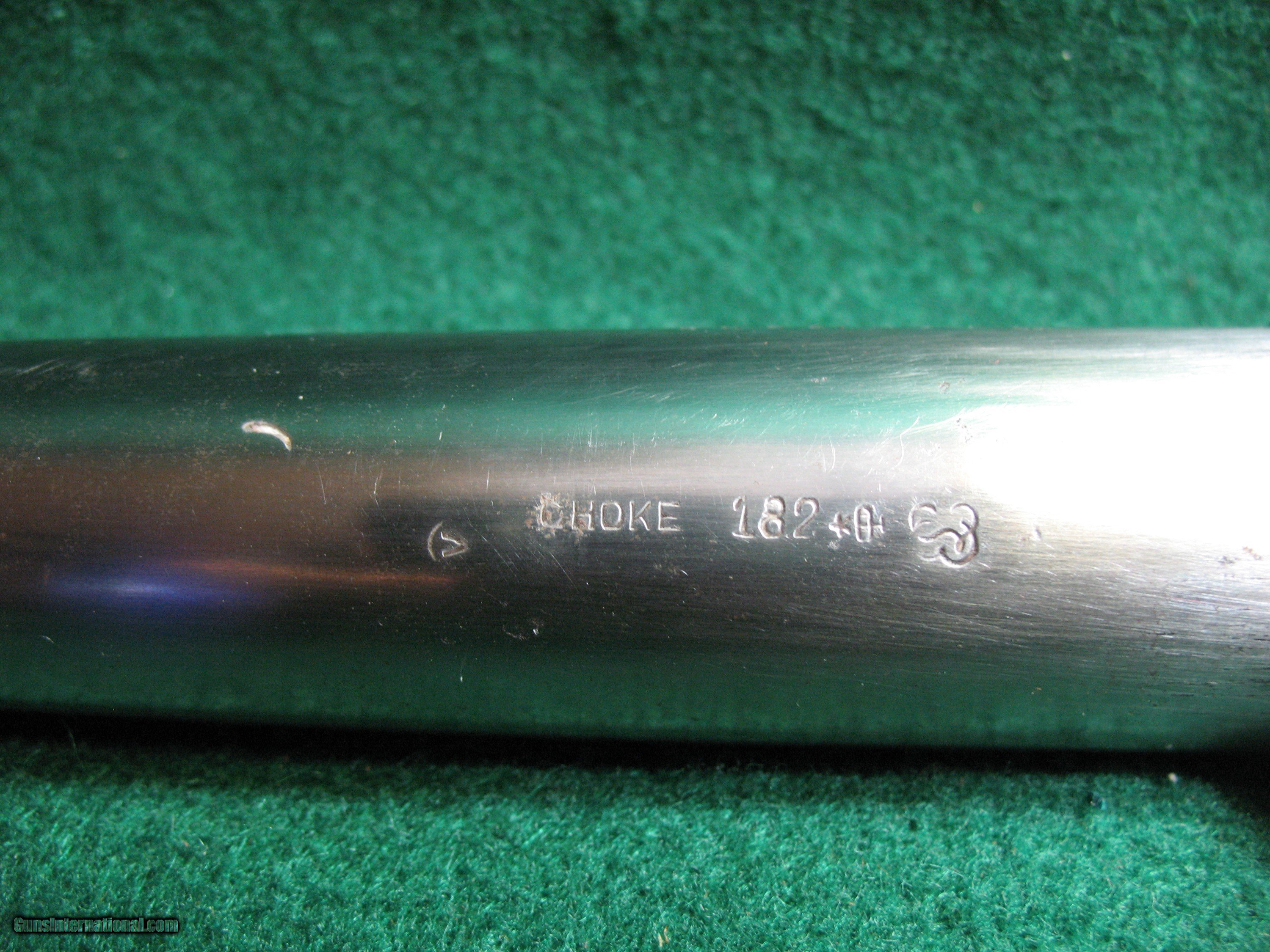 Description: Browning A5 12ga Barrel Ogden, Utah Special Steel Made in Belgium Solid Rib The choke is written on the barrel but I do not know how to interpret it. 27 1/2" long, polished steel. Some pitting on the outside on the top of the receiver end. Bore is like new with no defects. Shipping $15 SOLD |