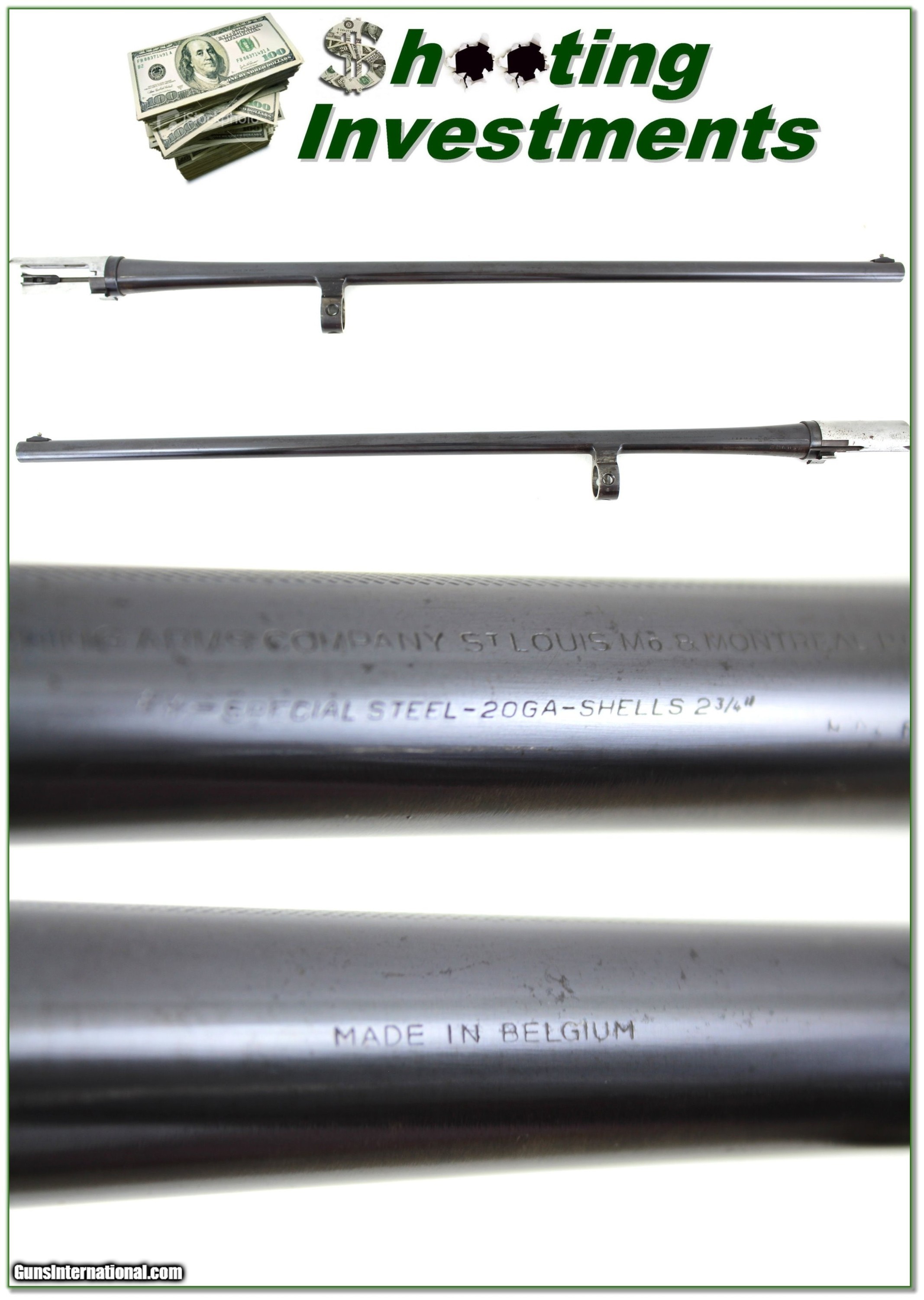 Description: This is a lightly used Belgium Browning A5 barrel with mirror bore. It fits 2 3/4in 20 gauge A5’s and is the most desired 26in IC. It will make a nice gun to use in the field or to collect. Shipping is $19.95. Please email me with any questions or larger pictures. (Consign your quality firearms with Shooting Investments for only 12%! Let me know if you have any you would like to sell!) 20-b004 Payment: Payment is by Money Order, Cashiers Check or Personal Check. I can now also accept Credit Cards (MasterCard, Visa, Discover & American Express) with a 3% convenience fee. Shipping: The shipping charge will be listed in each description. It is $39 for most firearms. Some heavy guns or those insured for over $2000 will be higher. Shipments to Alaska and Hawaii are higher because air shipment is required. Most firearms are shipped on Tuesday and Thursday and usually in 5 days of receipt of payment. We package all shipments carefully and insure them. Optics are shipped Priority Mail and most other non-firearm shipments are shipped First Class. Returns: Our return policy is simple. If for any reason you are not pleased with your purchase, you may return your item for a full refund of purchase price. Ammunition cannot be returned. It is important to us that you are happy. Guns cannot be fired or dissembled before returning them and they must be returned in the same condition as received. Notification of a return must occur with-in 3 days of receipt at your dealer. Shipping, convenience and dealer fees are not refundable and are the responsibility of the buyer. Lay-a-way: If needed, we offer a 60 day lay-a-way option on most firearms. It is 1/3 now, 1/3 in 30 days and 1/3 in 60 days. Lay-a-way firearm sales are final and if not completed the first payment cannot be returned. Consigning your firearms with Shooting Investments: We will help you get top dollar for your firearms. While most local guns shops charge 20% or more, our fee is only 12% with a minimum of $75. At your local gun shop it might take months to sell. Selling on-line provides instant access to thousands of interested buyers. You won’t find any other on-line dealer willing to sell your firearms for only 12% or listing every gun on 3 separate s. Selling through an House typically costs the seller 15% and the buyer an addition 15% (so 30%) and you have to wait several months to sell and longer to receive funds. If properly priced, we will sell your firearms in a few weeks. Send us an email or give us a call and we’ll explain how easy it is for you to get top dollar. Trading: Trading for use is really just buying your gun to re-sell. If you have a gun you want to trade, please email a picture and we will let you know what we can give or it. You will always get more if we sell it for you on consignment. Help for California Buyers: We are happy to ship to California. It is the buyer’s responsibility to make sure any item you buy is legal in your state. We are also happy to help with your purchase of a firearm from someone other than us. If you see a gun you would like to buy but the seller can’t or won’t ship to California they can ship to use and we’ll then ship it to your California dealer. The cost for this service is only $30 + shipping. Let us know if we can help! SOLD |