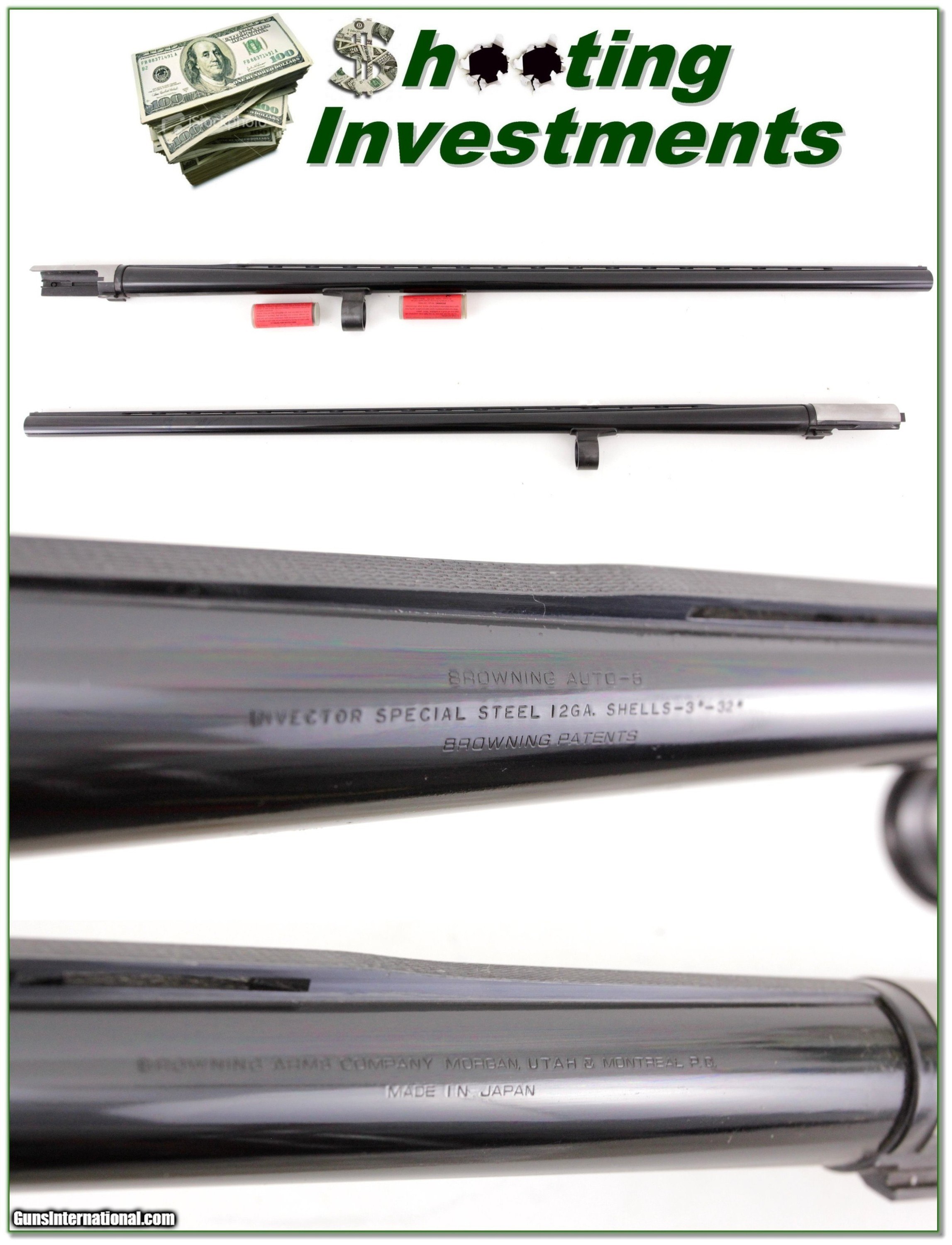 Description: Collectors and hunters, this is a VERY hard to find Browning A5 barrel. It is a Magnum 12 Gauge 32in Invector. These have become sought after barrels and you can use them on your vintage Browning guns and shoot steel or any modern shoot. This one comes with all 3 invector chokes tubes! Shipping is $19.95. Please email me with any questions or larger pictures. (Consign your quality firearms with Shooting Investments for only 12%! Let me know if you have any you would like to sell!) 18-1050b Payment: Payment is by Money Order, Cashiers Check or Personal Check. I can now also accept Credit Cards (MasterCard, Visa, Discover & American Express) with a 3% convenience fee. PayPal can be used for some items but never for firearms. Shipping: The shipping charge will be listed in each description. It is $39 for most firearms. Some heavy guns or those insured for over $2000 will be higher. Shipments to Alaska and Hawaii are higher because air shipment is required. Most firearms are shipped on Tuesday and Thursday and usually in 5 days of receipt of payment. We package all shipments carefully and insure them. Optics are shipped Priority Mail and most other non-firearm shipments are shipped First Class. Returns: Our return policy is simple. If for any reason you are not pleased with your purchase, you may return your item for a full refund of purchase price. Ammunition cannot be returned. It is important to us that you are happy. Guns cannot be fired or dissembled before returning them and they must be returned in the same condition as received. Notification of a return must occur with-in 3 days of receipt at your dealer. Shipping, convenience and dealer fees are not refundable and are the responsibility of the buyer. Lay-a-way: If needed, we offer a 60 day lay-a-way option on most firearms. It is 1/3 now, 1/3 in 30 days and 1/3 in 60 days. Lay-a-way firearm sales are final and if not completed the first payment cannot be returned. Consigning your firearms with Shooting Investments: We will help you get top dollar for your firearms. While most local guns shops charge 20% or more, our fee is only 12% with a minimum of $75. At your local gun shop it might take months to sell. Selling on-line provides instant access to thousands of interested buyers. You won’t find any other on-line dealer willing to sell your firearms for only 12% or listing every gun on 3 separate s. Selling through an House typically costs the seller 15% and the buyer an addition 15% (so 30%) and you have to wait several months to sell and longer to receive funds. If properly priced, we will sell your firearms in a few weeks. Send us an email or give us a call and we’ll explain how easy it is for you to get top dollar. Trading: Trading for use is really just buying your gun to re-sell. If you have a gun you want to trade, please email a picture and we will let you know what we can give or it. You will always get more if we sell it for you on consignment. Help for California Buyers: We are happy to ship to California. It is the buyer’s responsibility to make sure any item you buy is legal in your state. We are also happy to help with your purchase of a firearm from someone other than us. If you see a gun you would like to buy but the seller can’t or won’t ship to California they can ship to use and we’ll then ship it to your California dealer. The cost for this service is only $30 + shipping. Let us know if we can help! SOLD |
