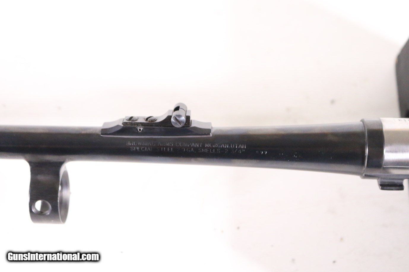 Description: MADE IN BELGIUM. 24 INCHES WITH RIFLE SIGHTS. REBLUED BY ARTS GUN SHOP. PLEASE ADD $20 FOR SHIPPING. SOLD |