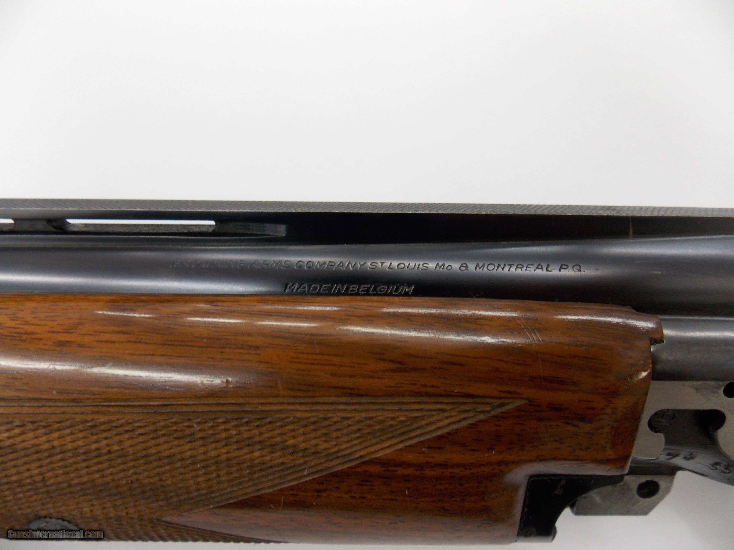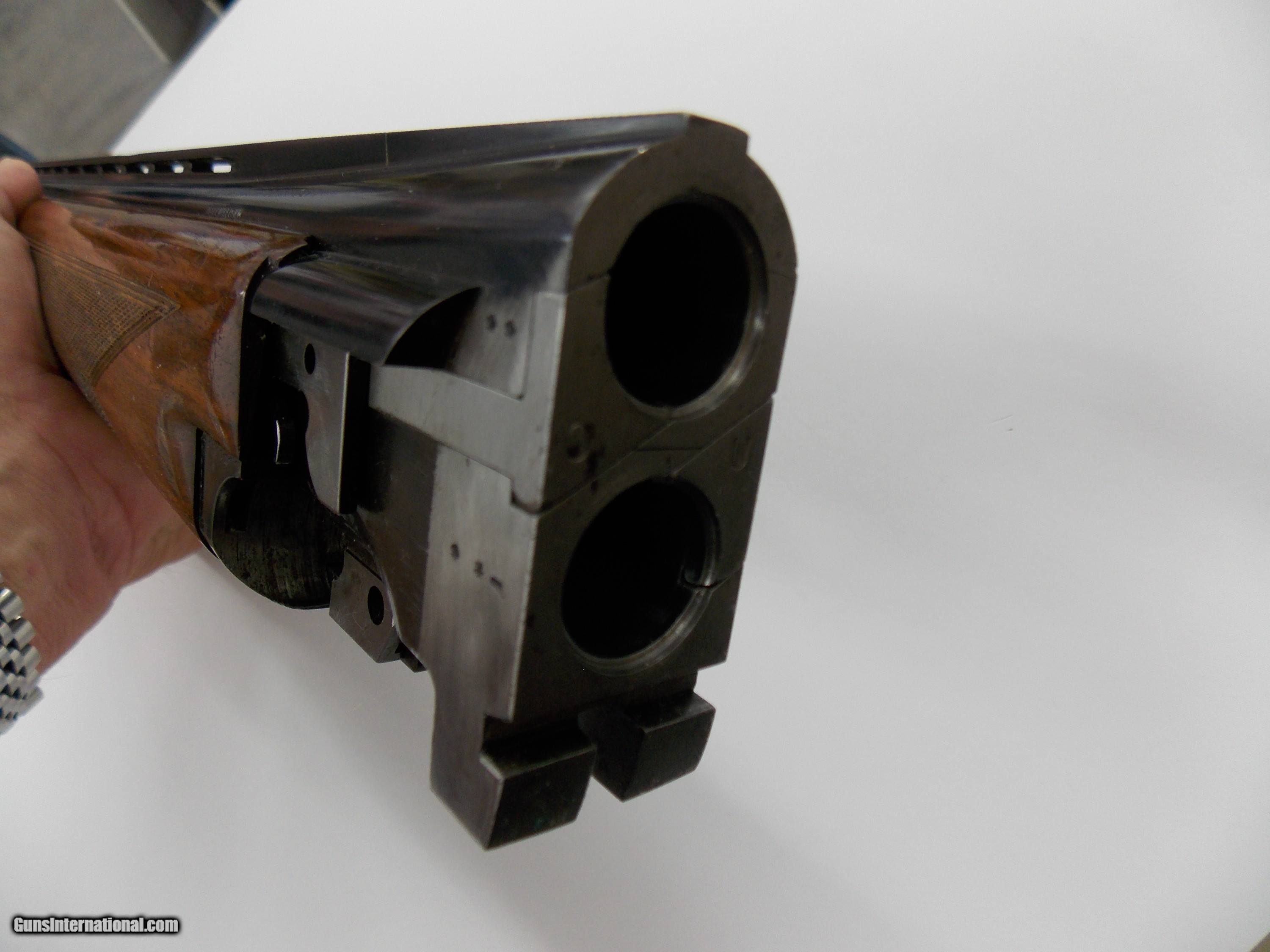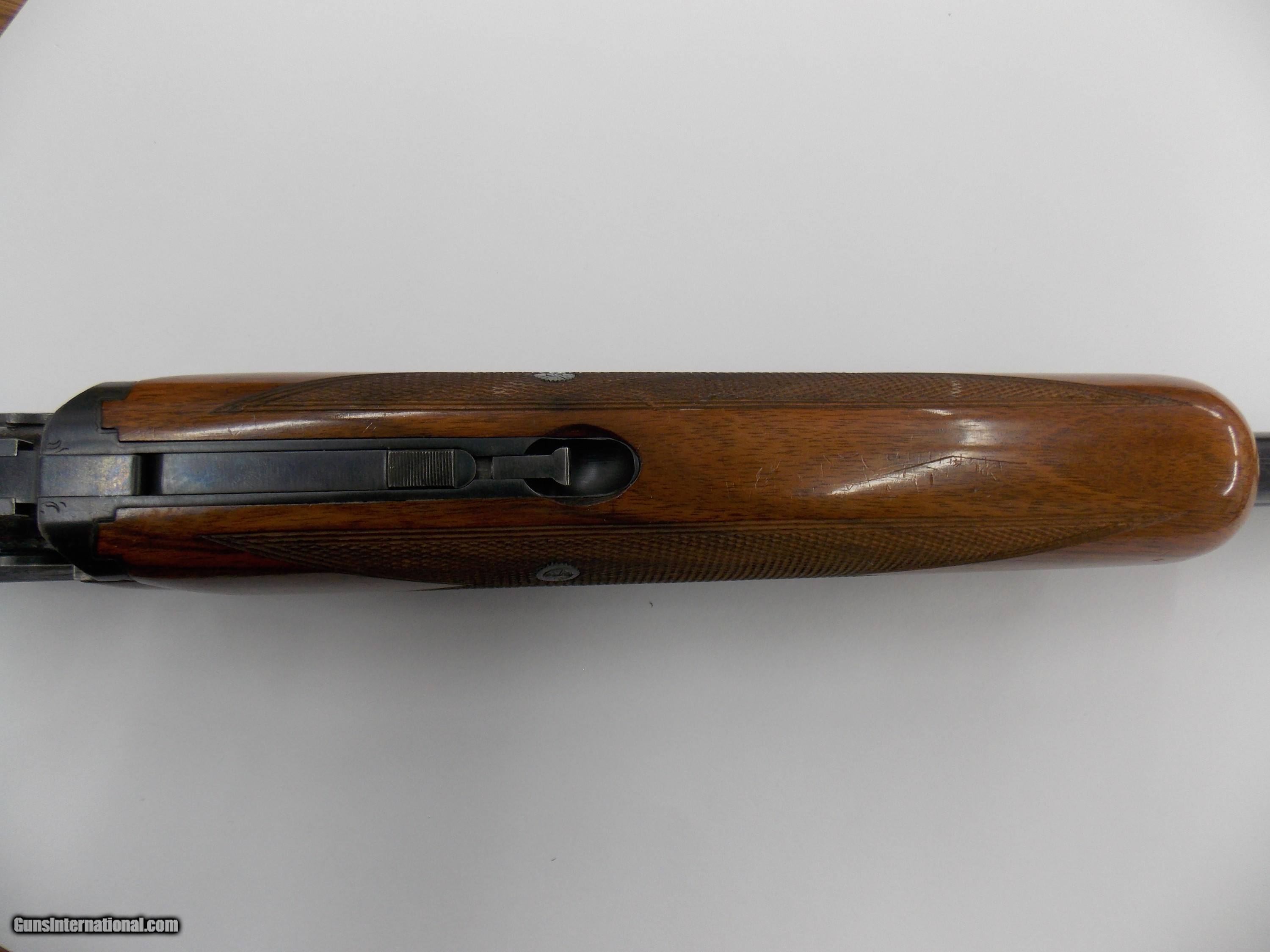 Description: These barrels were part of a Browning Superposed two barrel set shotgun. The barrels are 20 ga. , 28" with factory forend. These are 20ga. barrels for a 12ga. receiver. The factory blue finish is 90-95% with one minor flaw pictured. The bores are excellent. Fixed choked Mod over Imp. Cyl. Wood is very good with the usual light handling, hunting dings. TX DL # engraved on the right underside. Sales letter dated 1966 from Houston, Texas with customs duty fees listed. Email or call with any questions. $15.00 ships to the lower 48 states. No international sales. SOLD |