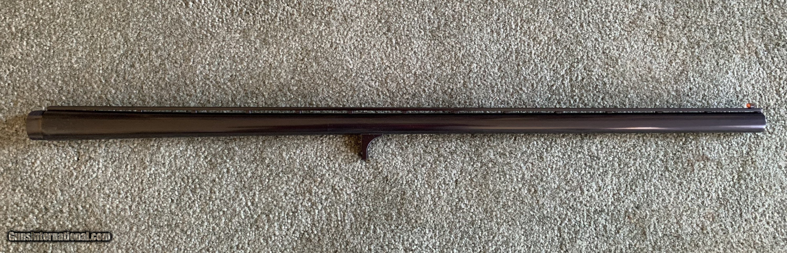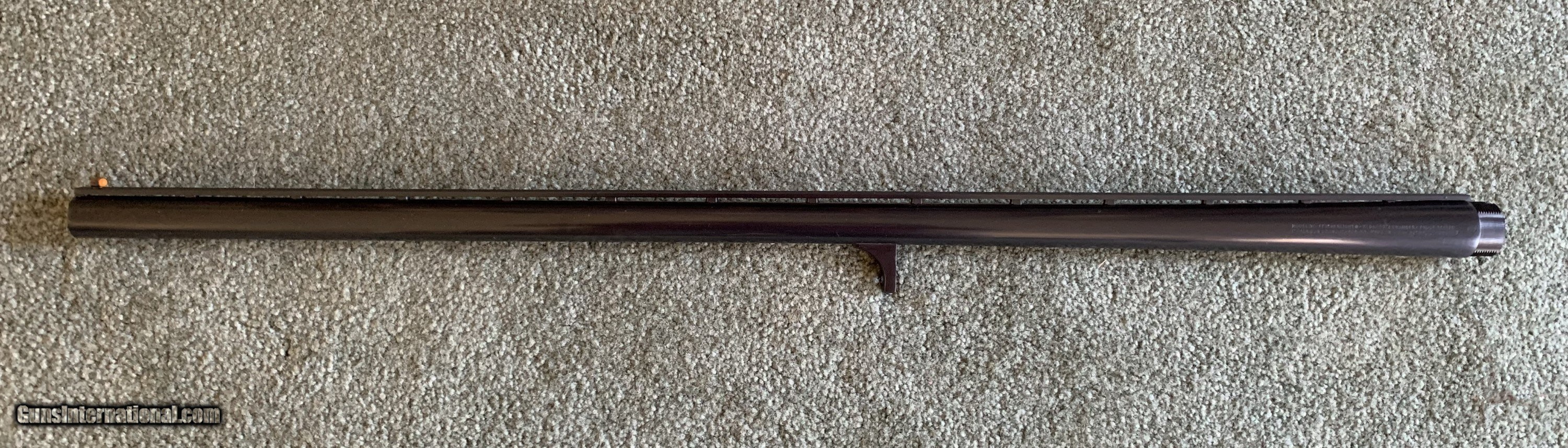 Description: This is a Ithaca Model 37 Vent Rib barrel. 12Ga., 2-3/4 Chamber, 28", Fixed Mod Choke The Blue is 99% with some very light fading behind the lug and a small mark on the edge of the muzzle. The close up pictures show both. Unfortunately the front section of the Ray-Bar bead is broken off.You can see that in the picture also. I have taken that into consideration when pricing. This barrel is interchangable with any Model 37 12 Ga. with a serial number higher than 855,000 $250.00 The price is plus shipping. 3 day non firing inspection. If returned for any reason the buyer pays return shipping. Feel free to contact me with questions or more pictures. SOLD Shotgun Gauge: 12 Gauge |