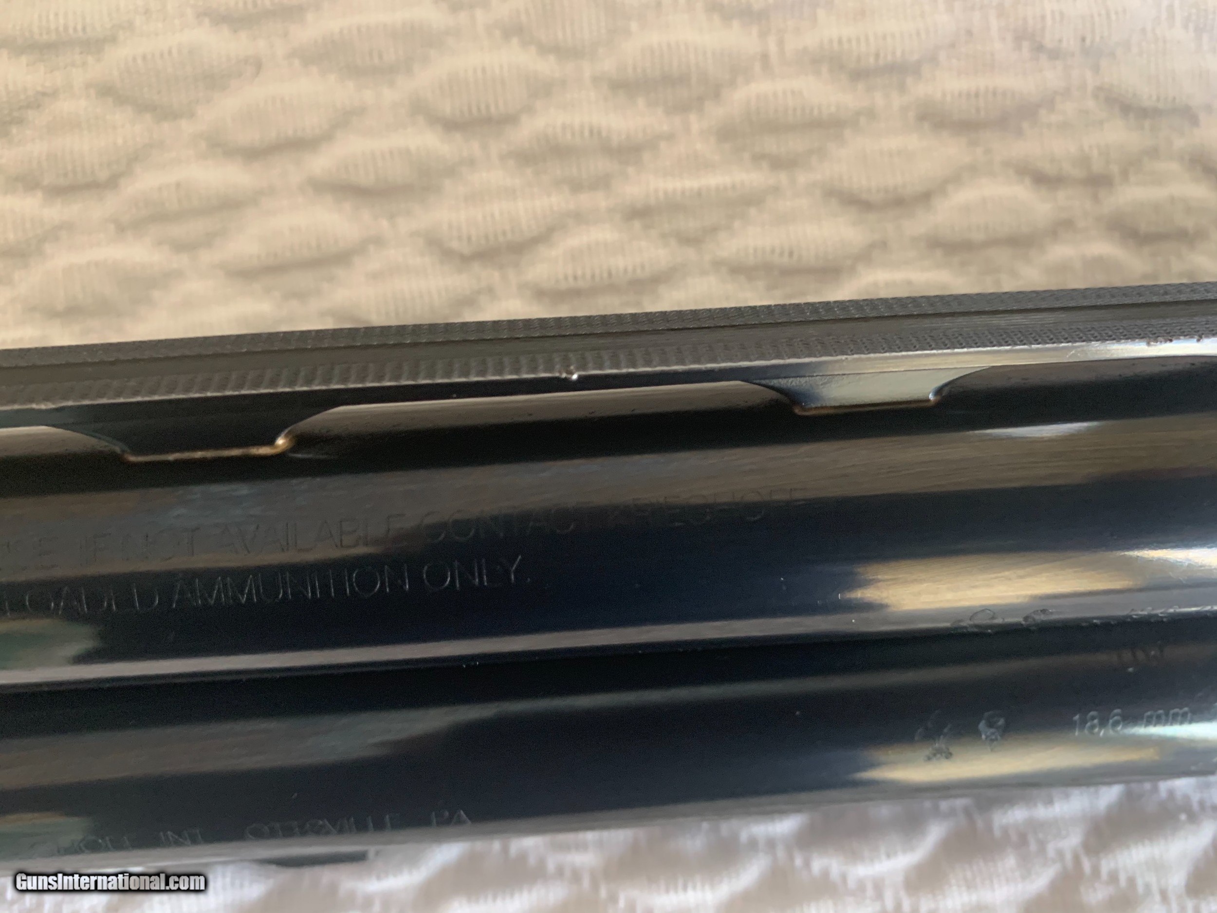 Description: Good but not perfect shape. Slight dent in rib just behind white bead. Bluing very good. 8 factory Ti chokes included. Newer 10x6 rib. SOLD Shotgun Gauge: 12 Gauge |