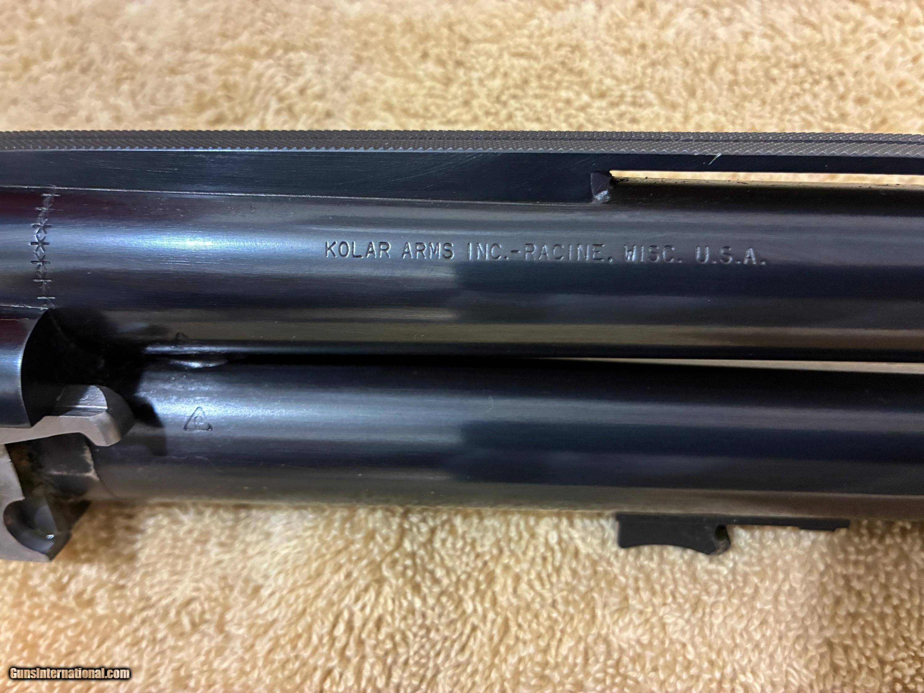 Lightly used Kolar.12 gauge 740 bore 28" with flat rib and tampline, polished blue finish. Bluing is original from Kolar and has only minor wear where the forewarm meets the barrel. Can not be seen assembled. Includes two Kolar titanium skeet chokes. No tax.