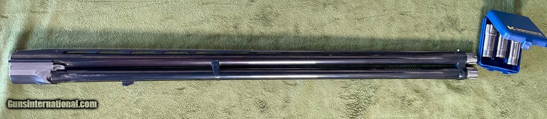 Description: This is a Krieghoff K80 30" 12ga barrel, tapered flat (12-8mm), and is factory ported. This barrel has five Krieghoff titanium choke tubes: IC, SK, M, LM, and IM. This barrel is in very good condition, with some wear and handling marks. Buyer pays shipping and insurance. SOLD Shotgun Gauge: 12 Gauge |