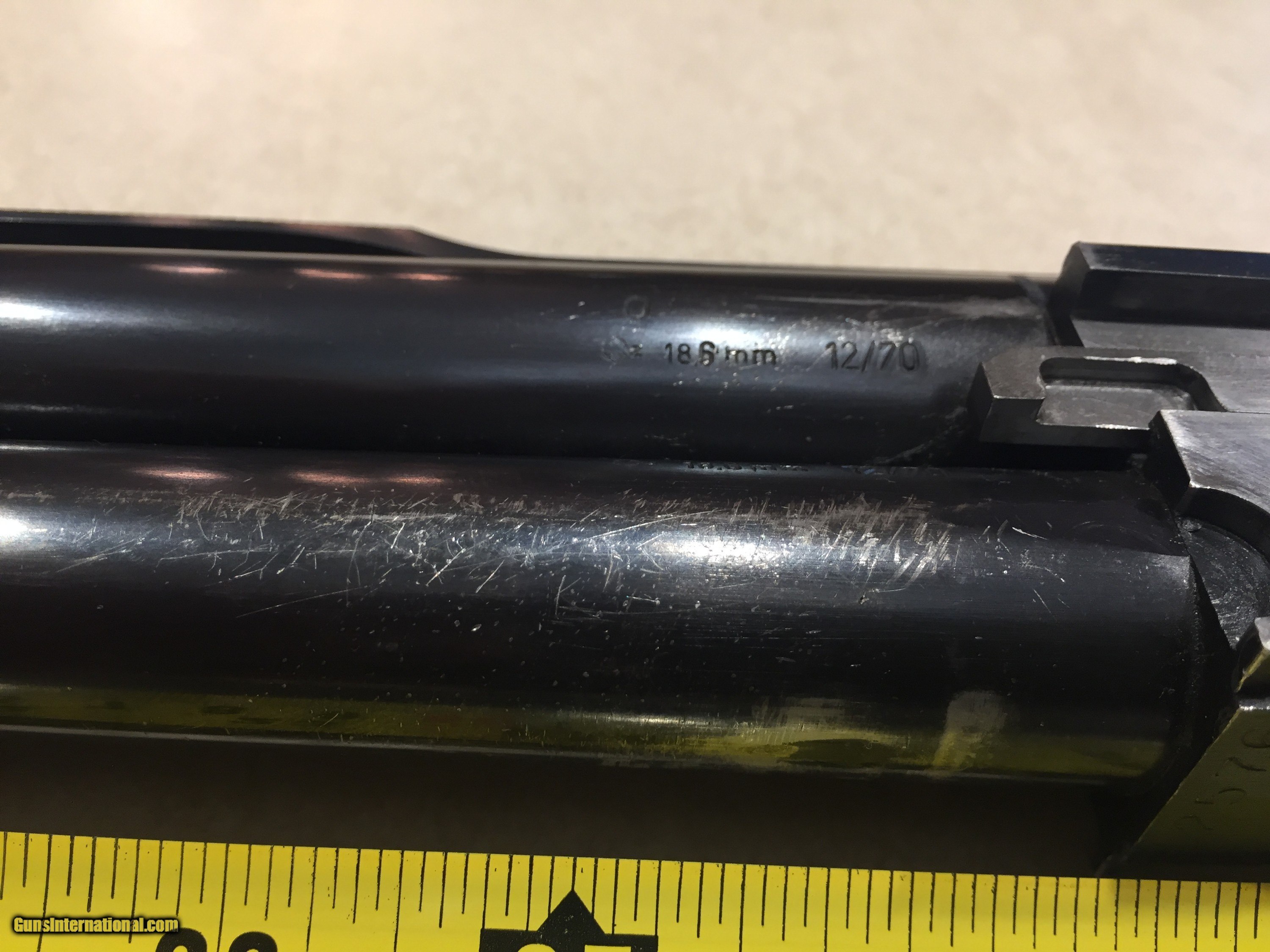 Description: S.N.= 12576 2-3/4 chambers, skeet rib, ported. Original blue, Good condition....shows use some blue loss, scratches from for-end being put on and off. Bright bores no dings or dents. 25.00 UPS plus insure if wanted thanks Kenny SOLD |