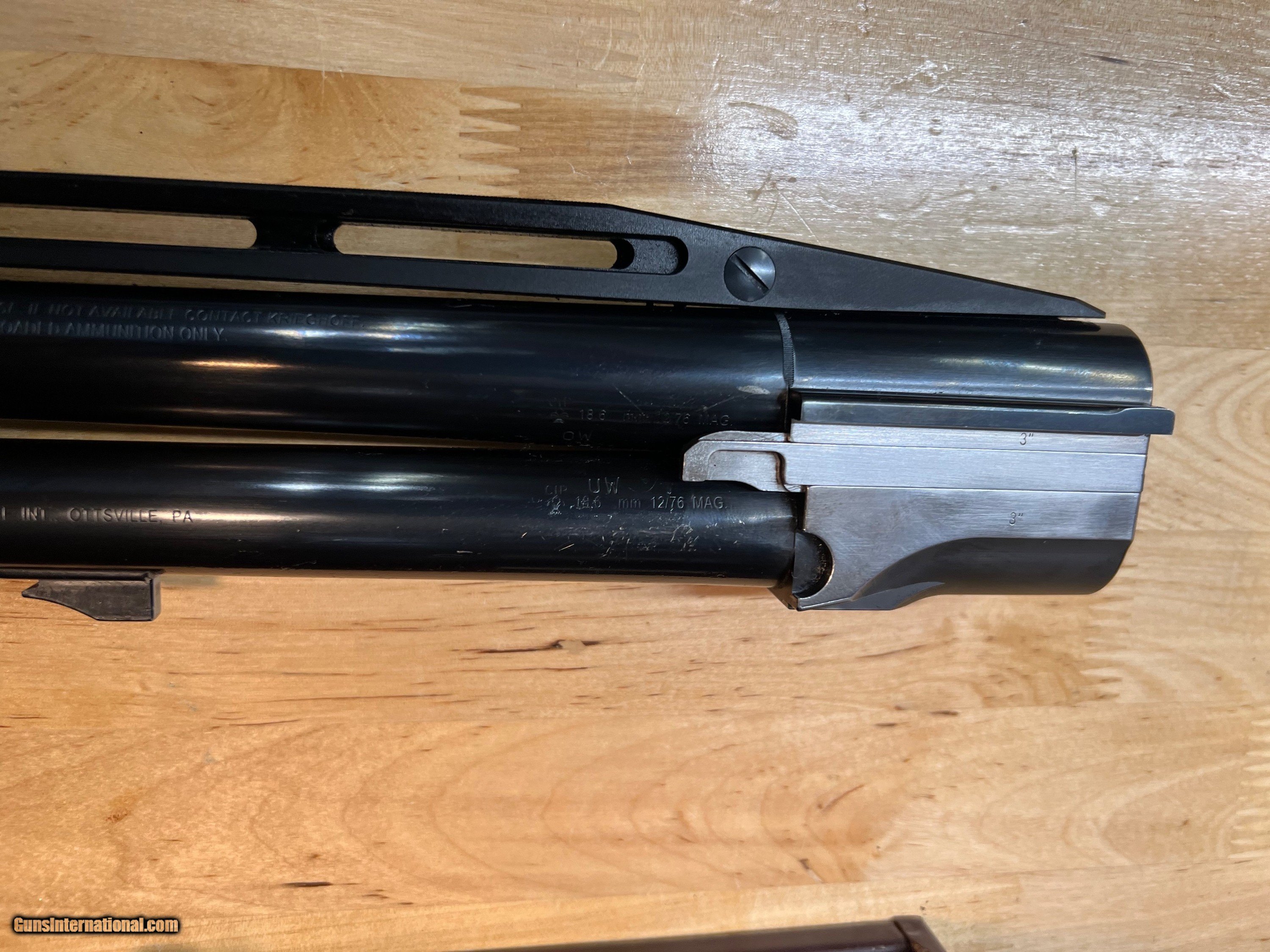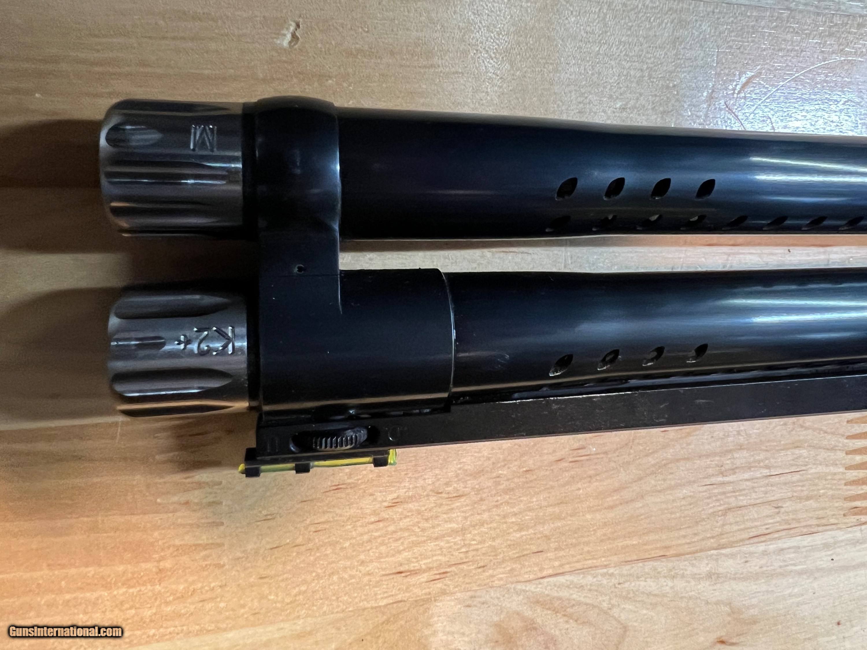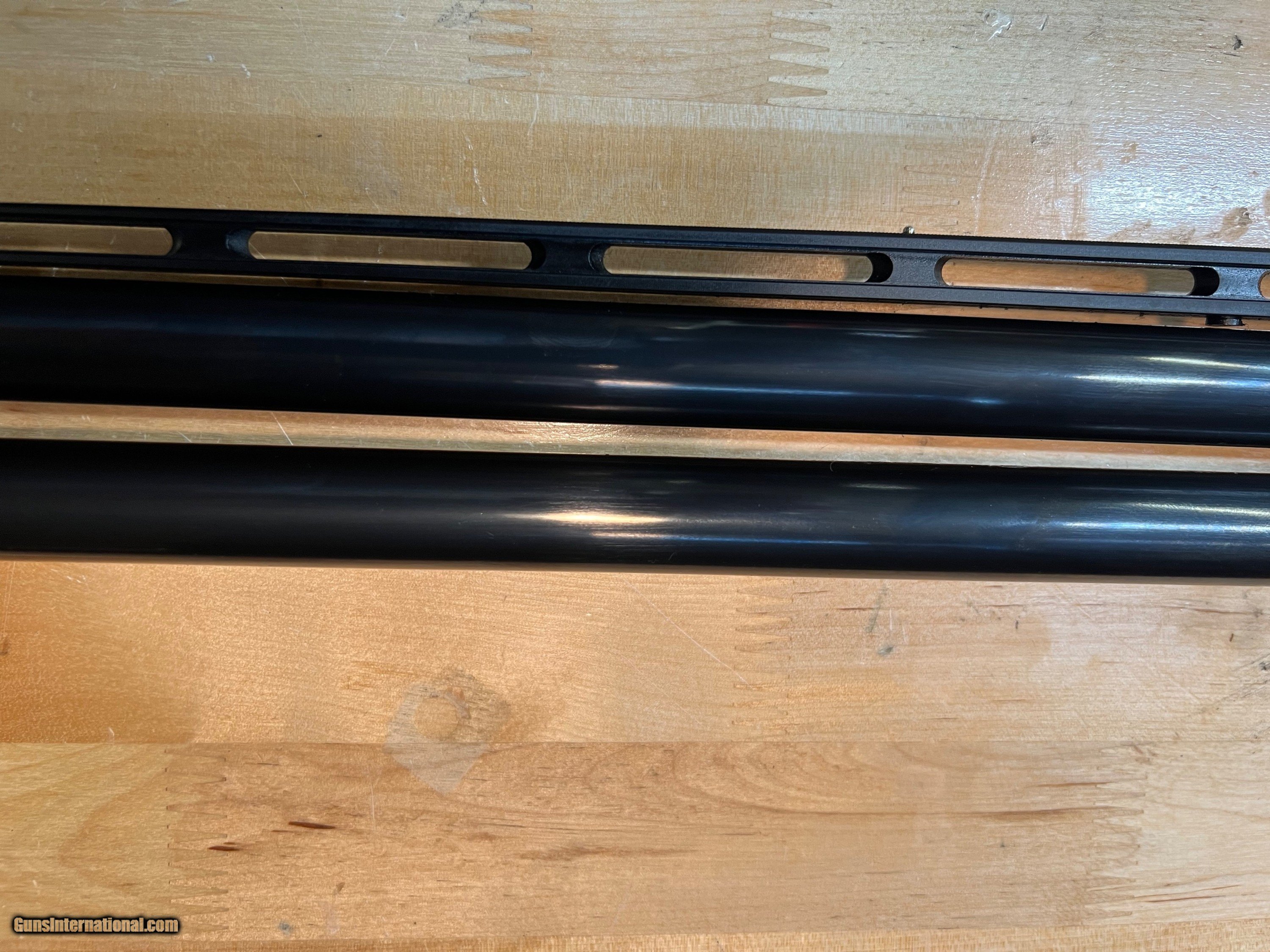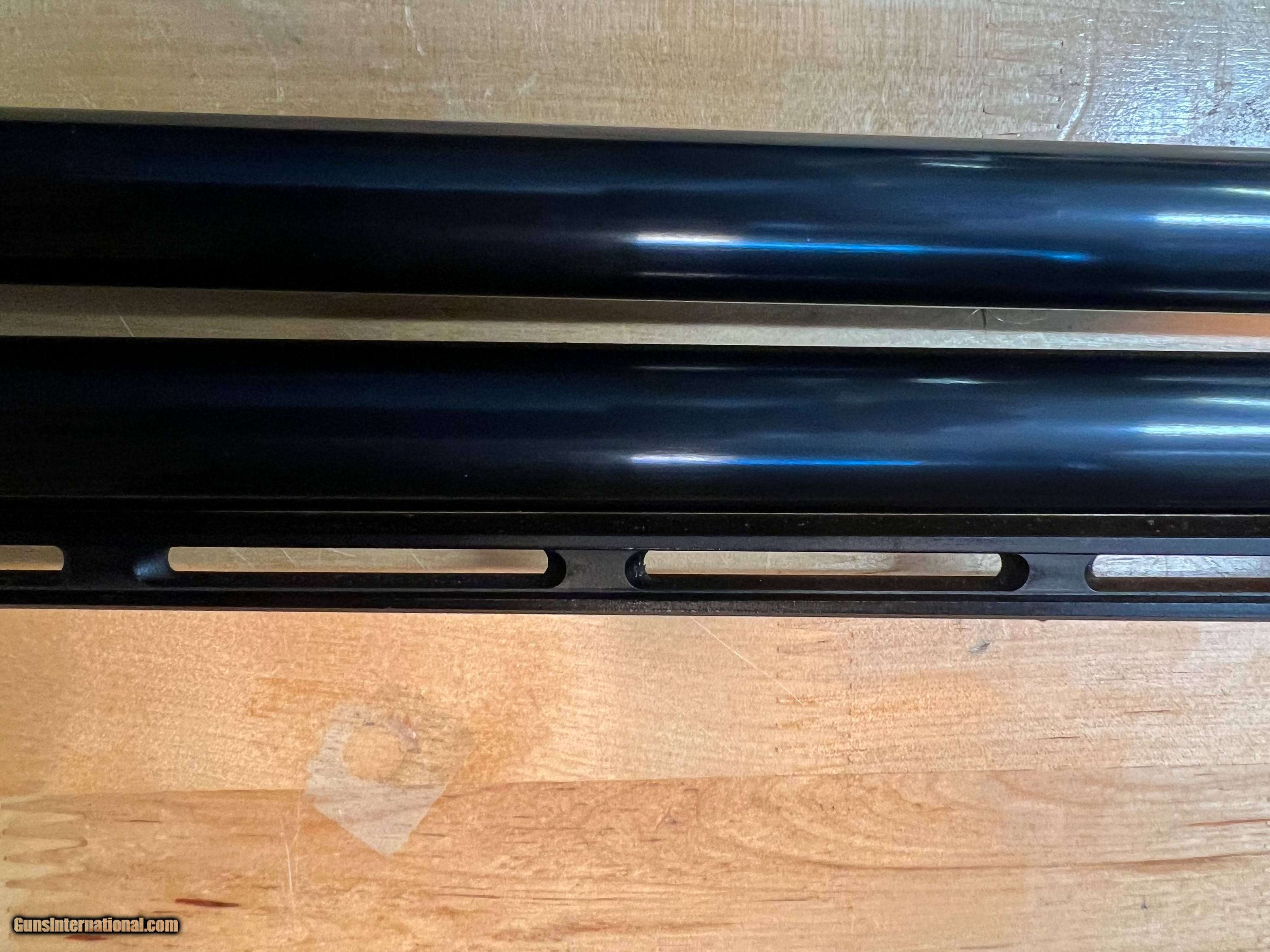 Description: Barrel in very good condition with two titanium choke tubes included. (M/K2 and LIM/K2+)The barrels were professionally ported by Rhino Chokes. There are a couple of tiny marks on the blueing here and there from assembly but nothing that can be seen without looking very closely. SOLD Shotgun Gauge: 12 Gauge |