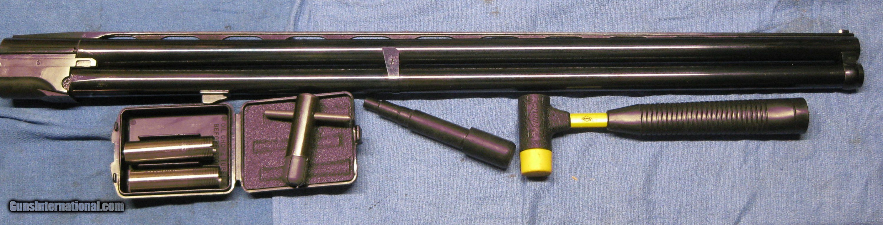 Description: Up for sale is this earlier 28” K80 barrel with a full set of Briley standard subgauge tubes. Will fit a Model 32 as well. The blueing on the barrels is in the 85% range. Bores are perfect. No porting. I had it on my K80 and it fit and shot very well with the top lever to the right. The barrel and tubes were sent back to Briley where they inspected the tubes and retightened them back to the barrels and then installed their thin wall S2VX choke tubes into the 12ga barrels. So you have 2 skeet, an IC and Lt. Mod. The subgauge tubes themselves are fixed choke skeet. Everything is in great shape and is now as it should be. This will make someone a very nice reasonably priced set. SOLD Shotgun Gauge: 12 Gauge |