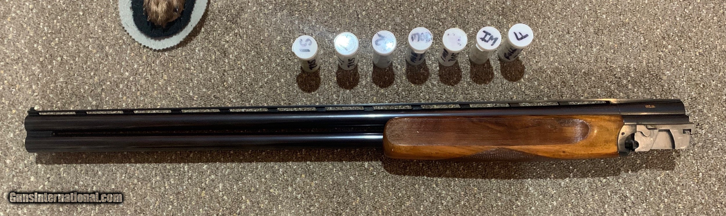 Description: Perazzi MT6 12Ga. O/U Barrels with screw in chokes, original forearm and Perazzi barrel hard case. Barrels measure 28.5" and have 7 screw in Tru-chokes...included. All chokes were fitted by Perazzi. Chokes are as follows..S1,S1,S2,Mod.,Imp Mod.,Full, Xtra Full. Constrictions are labeled on chokes and holders. Only chokes fired in barrels were S1, S2. All other have never even been in barrels. Barrels have only seen club shooting, never registered. I have owned the barrels a long time, and am the original owner. I sold MT6, older style, with another setup, so I no longer need. There are absolutely no issues with this setup. You get everything listed, along with choke tool, which was provided by Perazzi, not over the counter. I am not a dealer, this is from my personal stash. All questions welcomed, and thanks for looking. SOLD |