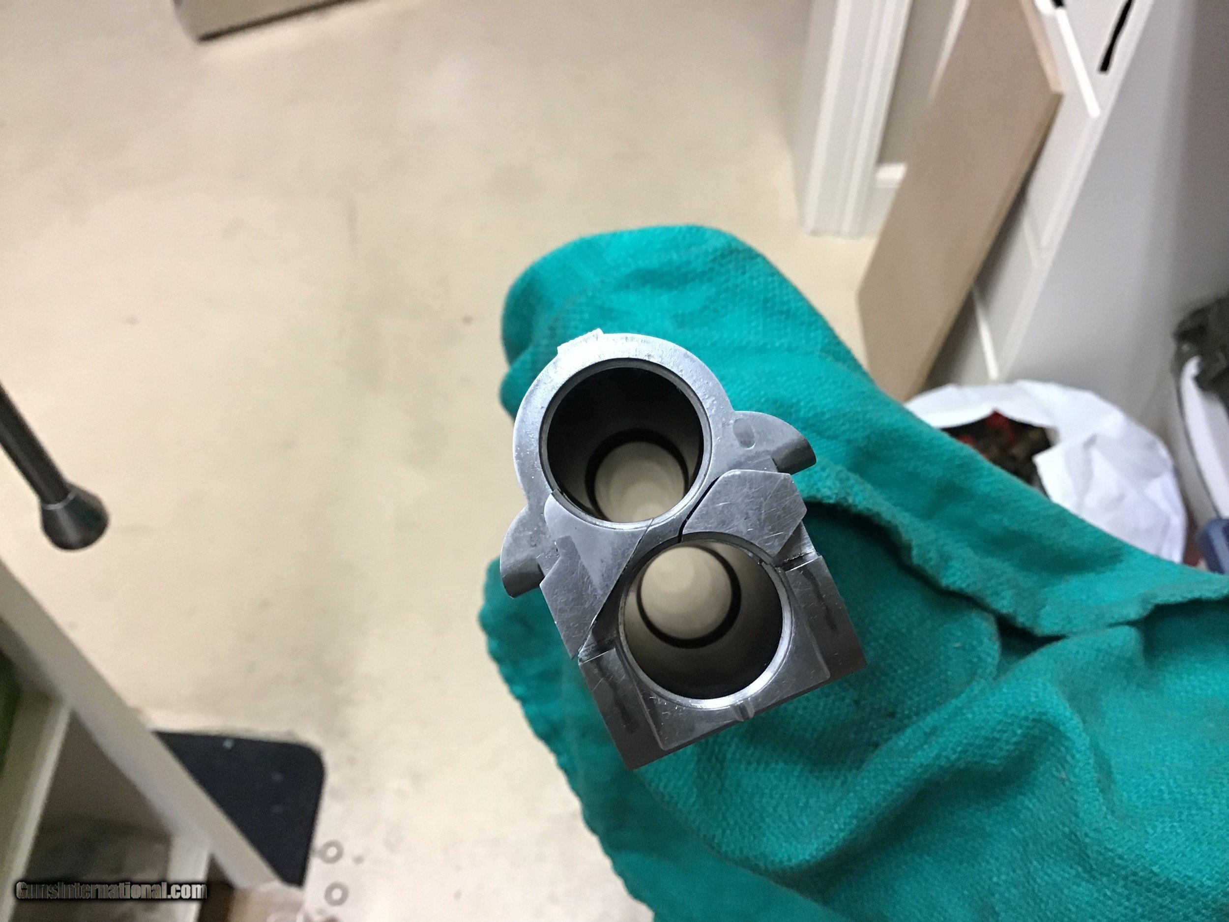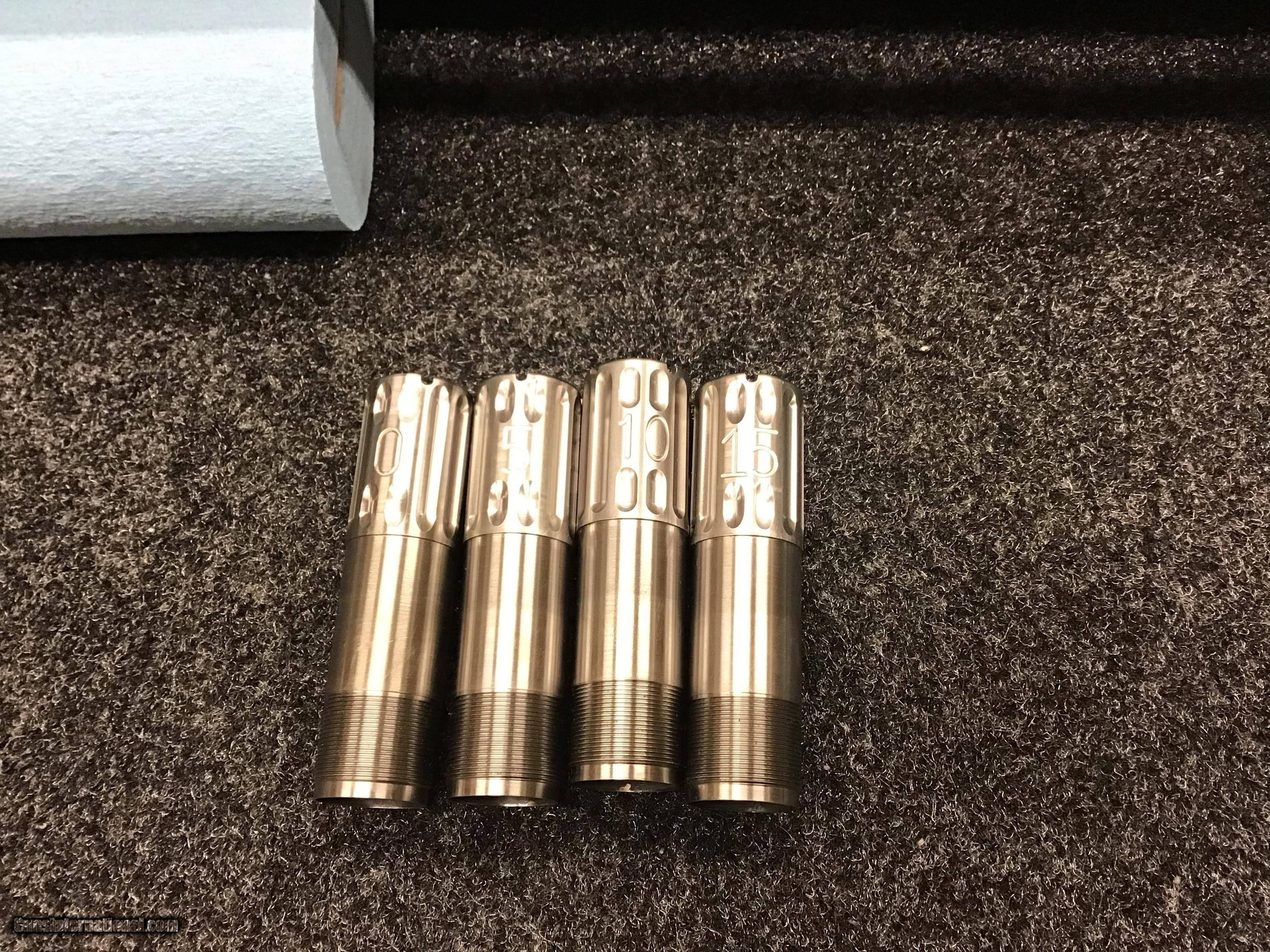Description: These barrels came on a new Perazzi MX12 that I purchased a couple of years ago but I have replaced them with fixed choke barrels. These barrels have been overbored/backbored by Tom Wilkinson to .740 diameter and were .736 diameter from the factory (18.7mm). Stamped weight is 1.66 KG and actual weight is 1.58 KG on my gun scale. Barrel length is 30 3/4" without the chokes installed, 32 1/4" with the chokes installed. The Xtreme Titanium chokes included are 0, 5, 10, 15, 20, and 25 thousanths constriction (cylinder, skeet, imp cyl, light mod, mod, imp mod). These constrictions will be approximately 5 thousanths greater due to the slightly larger bore size from overboring. Barrels came as factory on an MX12 receiver but can easily be fit to an MX8/2000 receiver by a Perazzi gunsmith. Approximately 15K rounds have been fired through the barrels. No scratches and no blue wear anywhere on the barrels. No rust what so ever. The rib is a parallel 7mm wide from receiver to muzzle and design is a 4mm ramp. So it is just slightly higher than a standard flat 2mm Perazzi rib. Price includes insured shipping to buyer. SOLD |