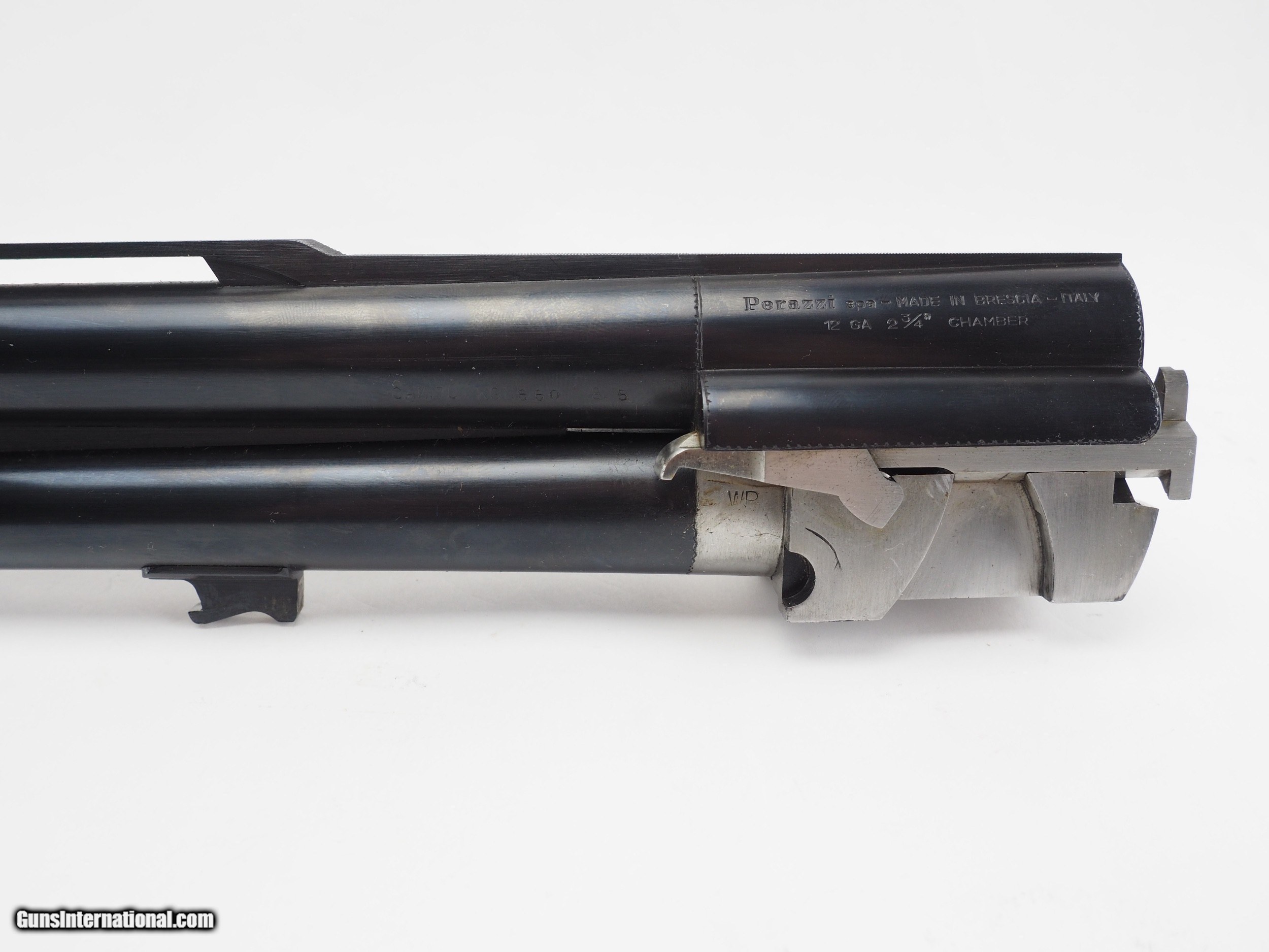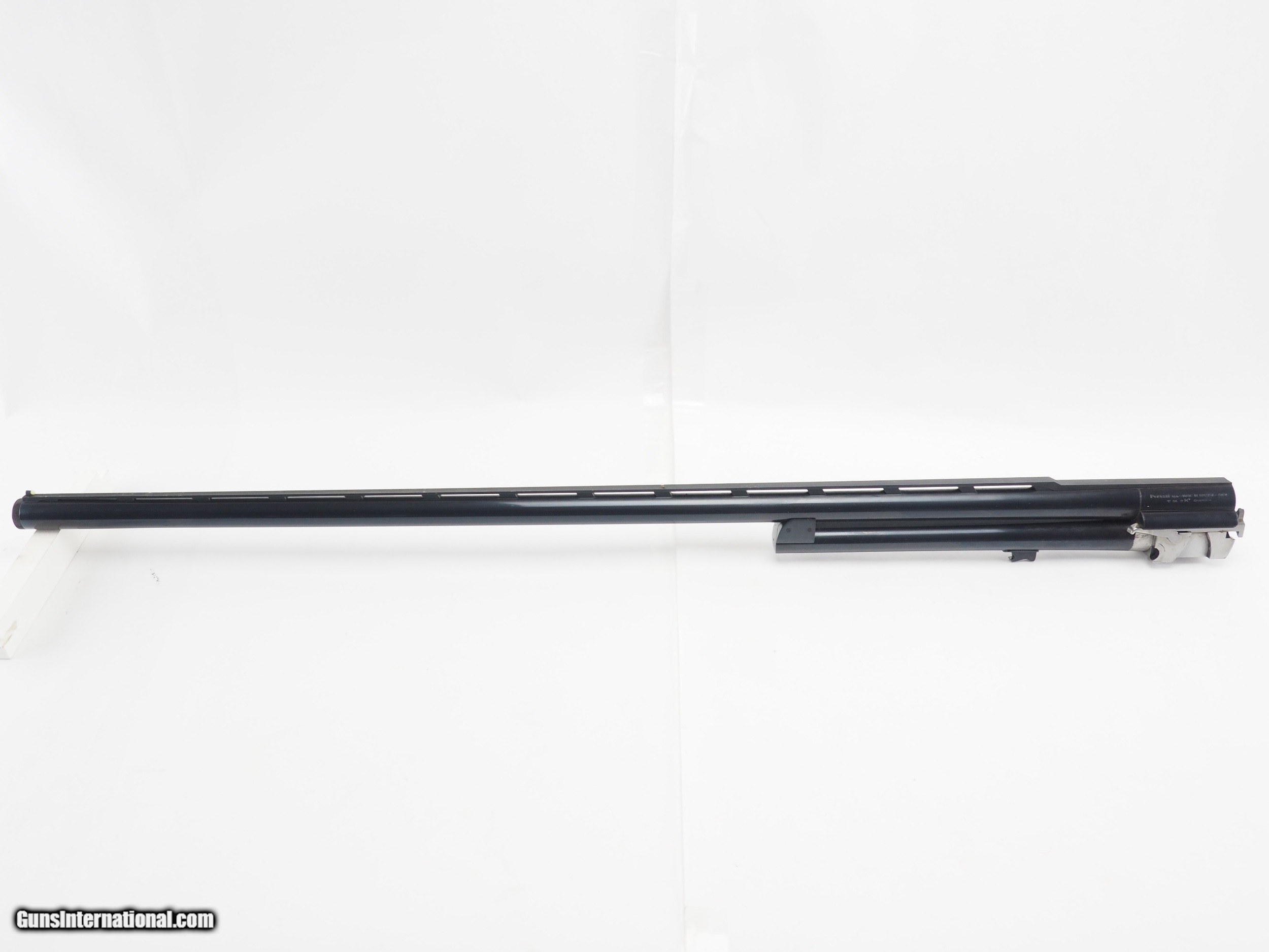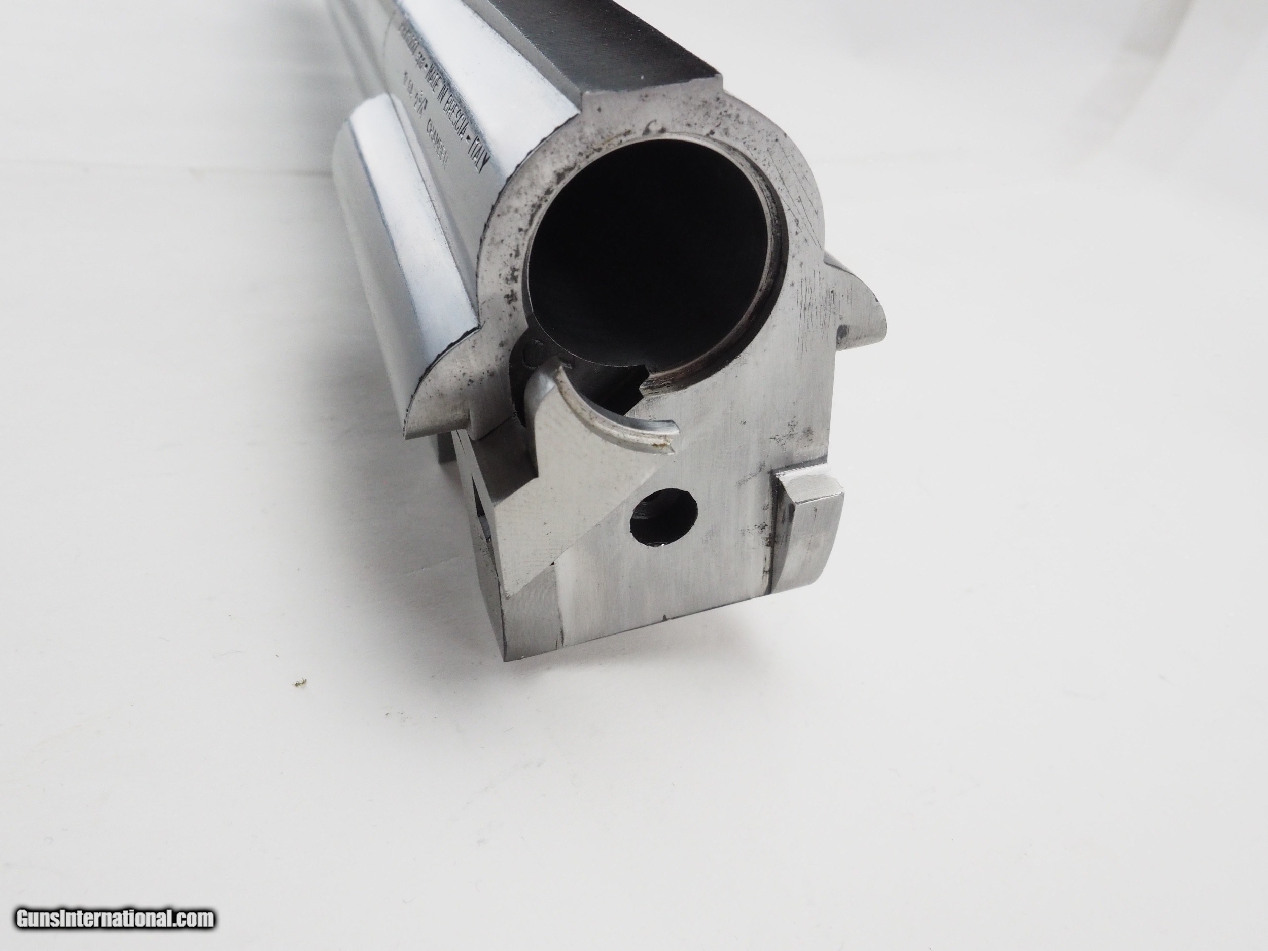 Description: Clean, excellent condition top single barrel for Perazzi MX8 featuring factory screw-in choke (1st generation) and Type 4 barrel hanger. Bluing is in excellent condition, showing only minor (unnoticeable) discoloration in the top rib anti-glare texturing. Locking surfaces are in excellent condition. Ejector spring is strong and fresh. Breech shows minor discoloration which is aesthetic in nature only. Length: 33.5" Bore: .731" Choke: factory threaded, one included (.036" constriction) SOLD |