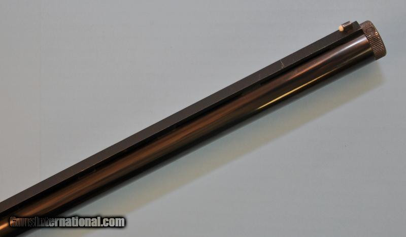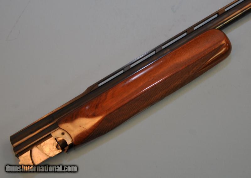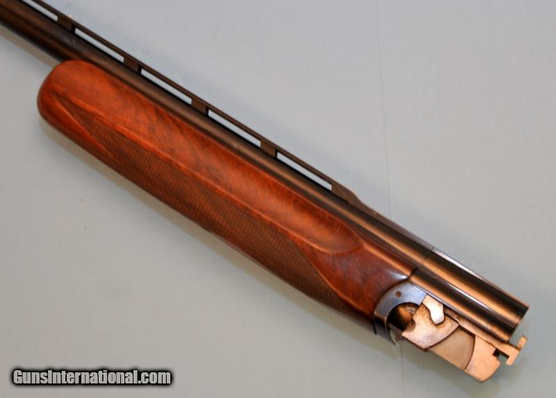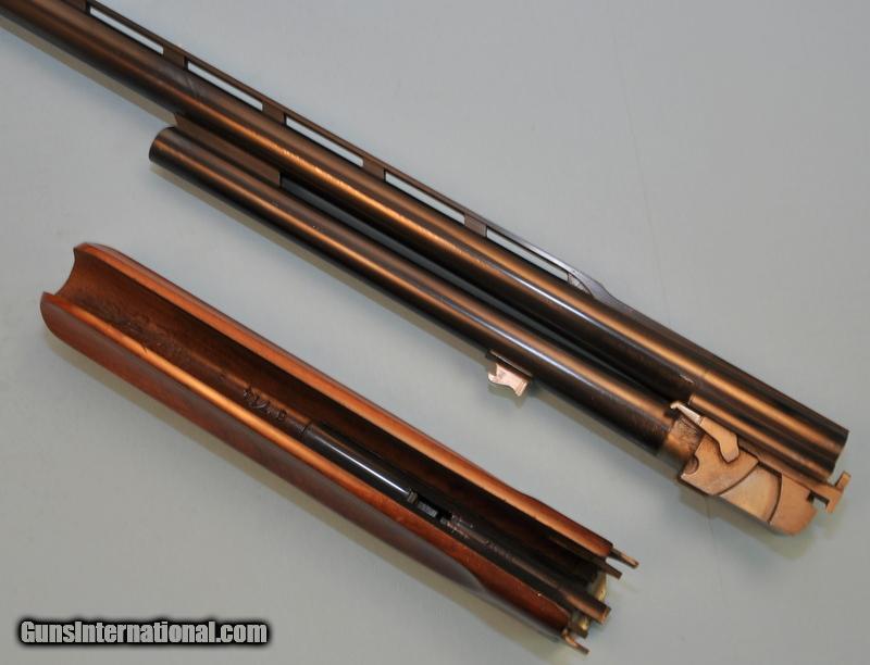 Description: 12 gauge. 2-3/4"chamber. 34" with high vent rib. Interchangable chokes, Full tube included. White target front sight with white mid bead. Includes checkered walnut target forend. SN on forend wood & iron is 6714S. Over 90% original blue showing small scratches. Stock shows small handling marks. Very good bore. Pripority mail $15.00 SOLD |