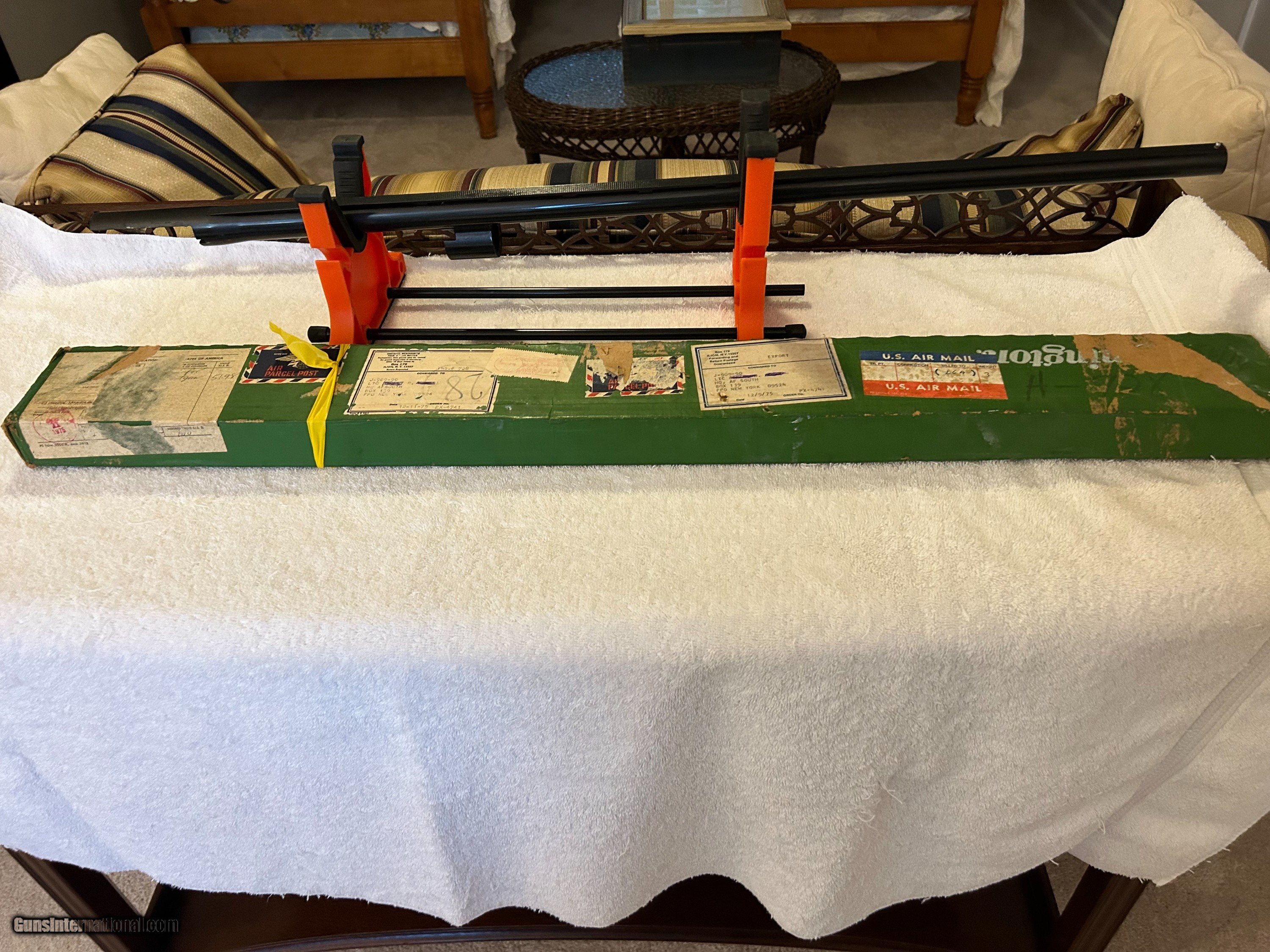 Description: I bought this barrel from an old friend that ordered it direct from Remington in Dec 1975. He was stationed in Europe at the time. The post marks on the box tells the history. He had a 1100 with 26" barrel that he shot skeet with and ordered this 30" to shoot trap. He was primarily a skeet shooter but would on occasion shoot trap. It is in excellent condition. $250 shipped to lower 48 states. SOLD Shotgun Gauge: 12 Gauge |
