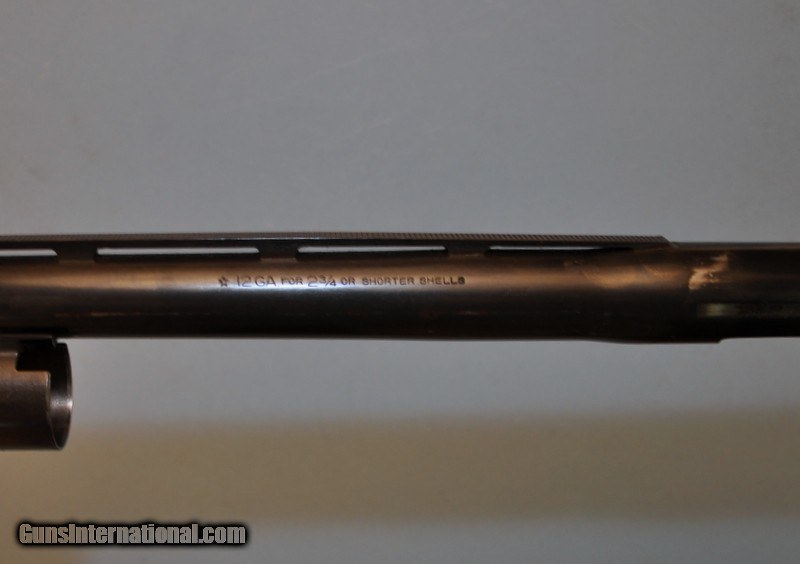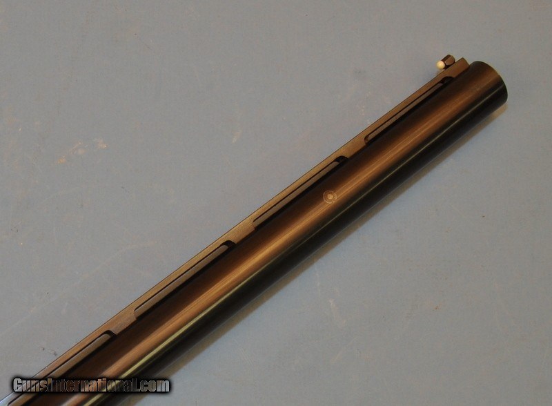 Description: 12 gauge, 2 3/4". 25 1/2" with vent rib. Fixed "SKEET" choke. White target front sight with steel mid bead. 90% original blue showing wear along forend channel with a spot of loss on right side 3 1/2" from muzzle. Very good bright bore. Priority mail $15.00 SOLD |