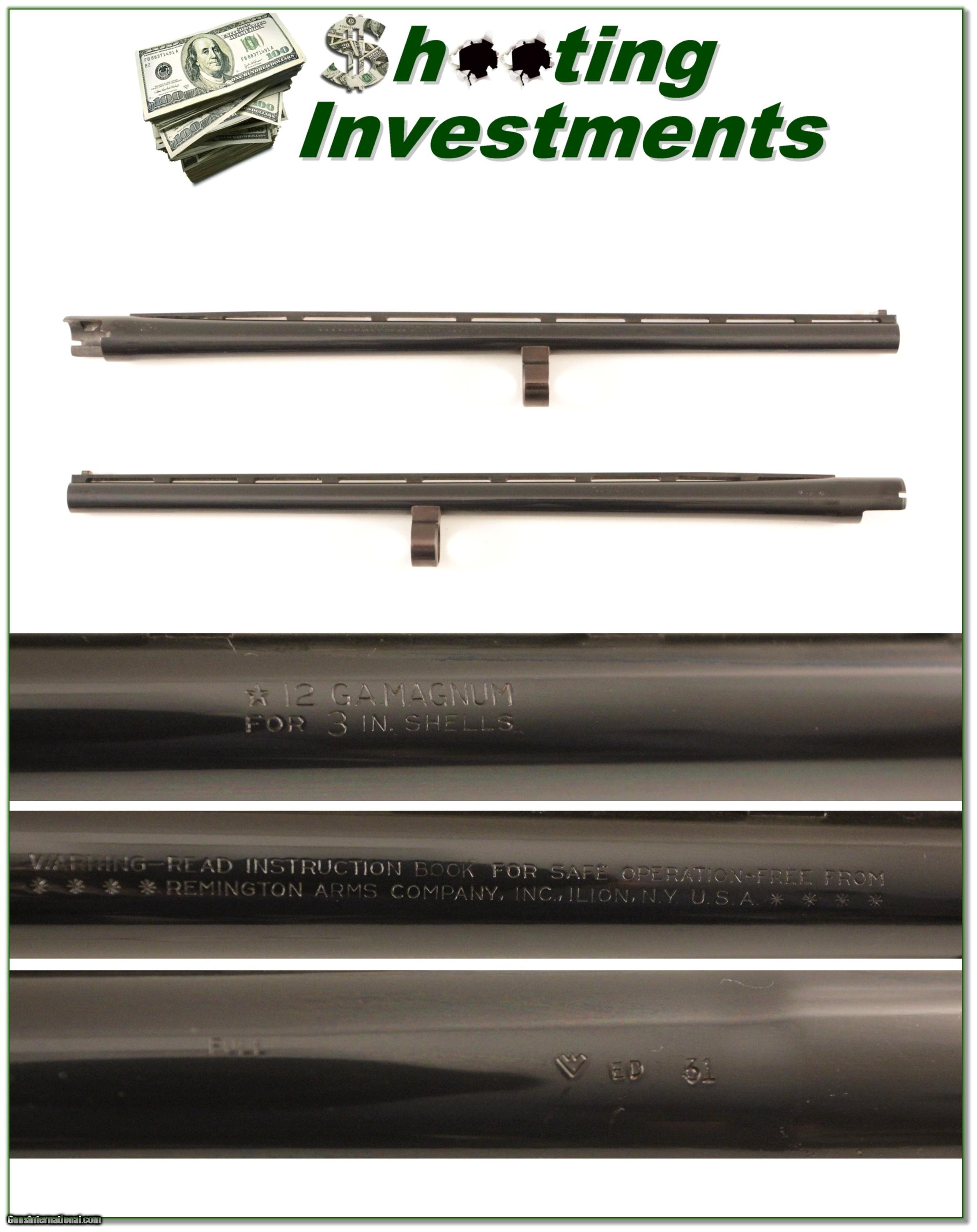 Description: This is a Remington 870 12-gauge barrel. It was shortened to 21in and was fitted for choke tubes. It has a Modified tube installed (I don’t know the brand of tubes). It will make a nice light weigh hunting barrel for your 870. Shipping is $14.95 and please email me with any questions or larger pictures. (I now consign quality firearms only 10%! Let me know if you have any you would like to sell!) [16-0168b] Payment: Payment is by Money Order, Cashiers Check or Personal Check. I can now also accept MasterCard and Visa with a 3% convenience fee. PayPal can be used for some items but never firearms. Please let us know if you would like to pay via PayPal. Shipping: The shipping charge will be listed in each description. It is $35 for most guns. Some heavy guns or those insured for over $2000 will be higher. Shipments to Alaska and Hawaii are higher because air shipment is required. Most firearms are shipped within 5 days of receipt of payment. We prefer shipping at the beginning of the week to avoid firearms in transit over weekends. We package all shipments carefully and insure them for the full purchase price, rounded up to the next $100. In the unlikely event that damage occurs, it is important that you save all packaging material for the claims process. Optics are shipped Priority Mail and most other non-firearm shipments are shipped First Class. Returns: Our return policy is simple. If for any reason you are not pleased with your purchase, you may return your item for a refund. The only exception is ammunition, it cannot be returned. It is important to us that you are happy. Guns cannot be fired or dissembled before returning them and must be returned in the same condition as received. Notification of a return must occur with-in 3 days of receipt at your dealer. Shipping, convenience and dealer fees are not refundable and are the responsibility of the buyer. Lay-a-way: If needed, we offer a 60 day lay-a-way option on most firearms. It is 1/3 now, 1/3 in 30 days and 1/3 in 60 days. Lay-a-way firearm sales are final. Consigning your firearms with Shooting Investments: We will help you get top dollar for your firearms. While most local guns shops charge 20% or more, our fee is only 10% with a minimum of $50. At your local gun shop it might take months to sell. Selling on-line provides instant access to thousands of interested buyers. You won’t find any other on-line dealer willing to sell your firearms for only 10% or listing every gun on 4 separate s. Selling through an House typically costs the seller 15% and the buyer an addition 15% (so 30%) and you have to wait several months to sell and longer to receive funds. If properly priced, we will sell your firearms in a week or two. Send us an email or give us a call and we’ll explain how easy it is for you to get top dollar. Trading: We collect guns and usually just trade for guns we want to add to our collections. We often sell guns for others wanting to purchase one of ours. We find this the most fair to both of us. Our Commission is only 10% and we hold the gun you want until yours sells. Please contact us if you want to sell one of yours to buy one of ours. Help for California Buyers: We are happy to ship to California. It is the buyer’s responsibility to make sure any item you buy is legal in your state. We are also happy to help with your purchase of a firearm from someone other than us. If you see a gun you would like to buy but the seller can’t or won’t ship to California we can help. You buy the gun and have it shipped to us. We’ll then ship it to your California dealer. The cost for this service is only $30 + shipping. Let me know if we can help! SOLD |