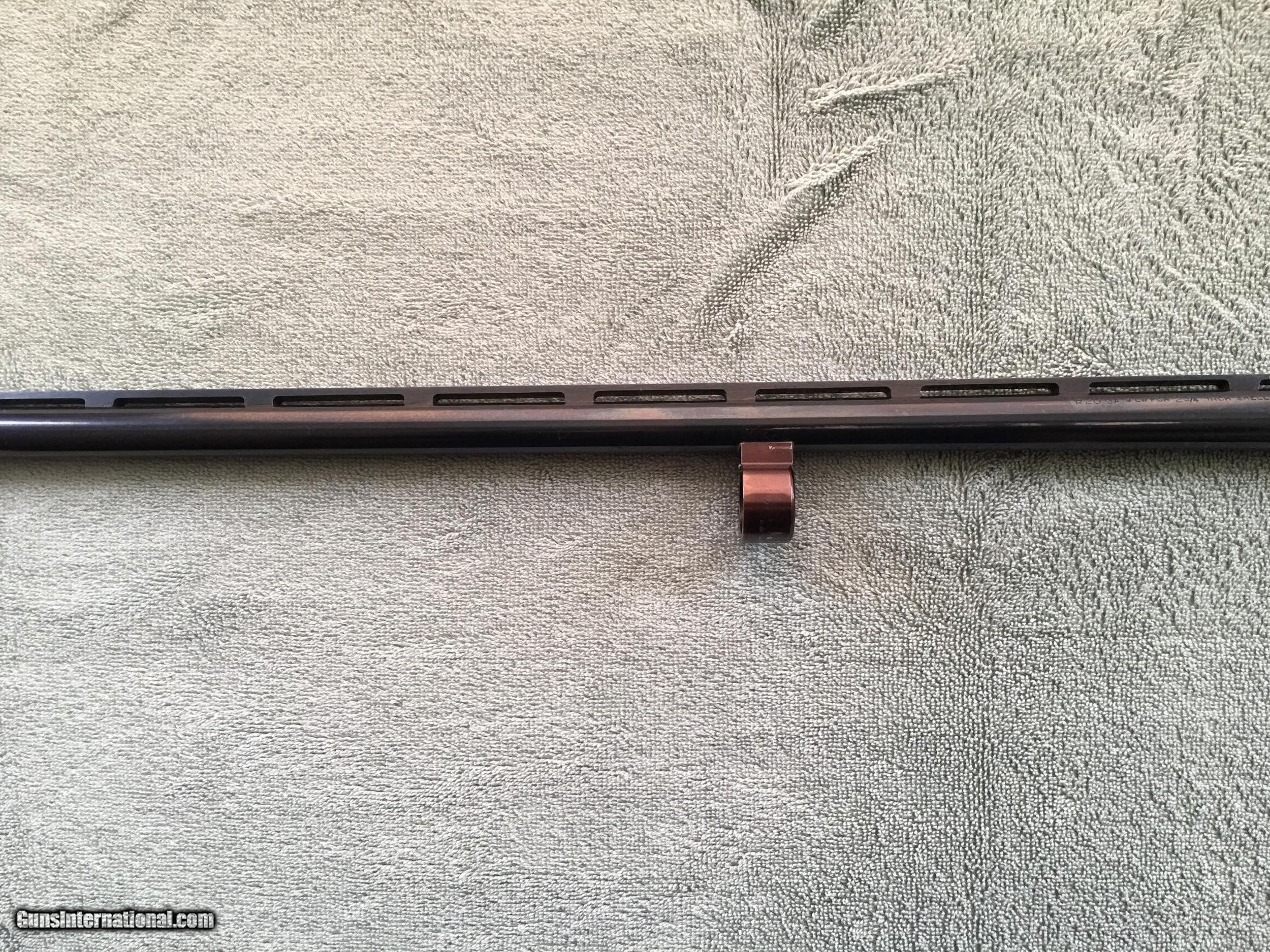 Description: SOLD: A Remington Wingmaster barrel for an 870 LW 20 Gauge. This barrel is in very good condition. Great for upland bird hunting and provides better balance & handling than the newer RemChoke barrels. This vent rib barrel is 26" with a fixed Improved Cylinder choke and 2 3/4" Chamber. The item shows a thin line on one side from contact with the forearm and light thinning of the bluing on the very tip of the barrel probably from sliding it in and out of a gun case. ( Please see Photos) Otherwise, there are no areas of rust, scratches, dents, nicks, or dings. The bore is clean, bright, and shiny. Much easier to clean than a choke tube barrel. Please feel free to contact me with any questions. Payment: Payment can be made either by Cashiers Check or Personal Check. Please note: Items cannot be shipped until the check is posted and clears the bank. Shipping Process: The shipping charge is $25 for packaging and insurance. Shipments to Alaska and Hawaii will be quoted at the time of sale. Items will be packed carefully and insured at the time of shipment. Tracking information will be supplied via email after the shipment has occurred. No shipments will be made outside the United States. Return Policy: If for some reason you are not satisfied with your purchase, you may return your item for a full refund of the purchase price. Returned items must be received in the same condition they were in when shipped to you. They cannot be modified, test fired, or dissembled before returning them. We must be notified of a return within 3 days of receipt at your location. Please Note: The cost of return shipping and insurance are the responsibility of the buyer. SOLD Shotgun Gauge: 20 Gauge |