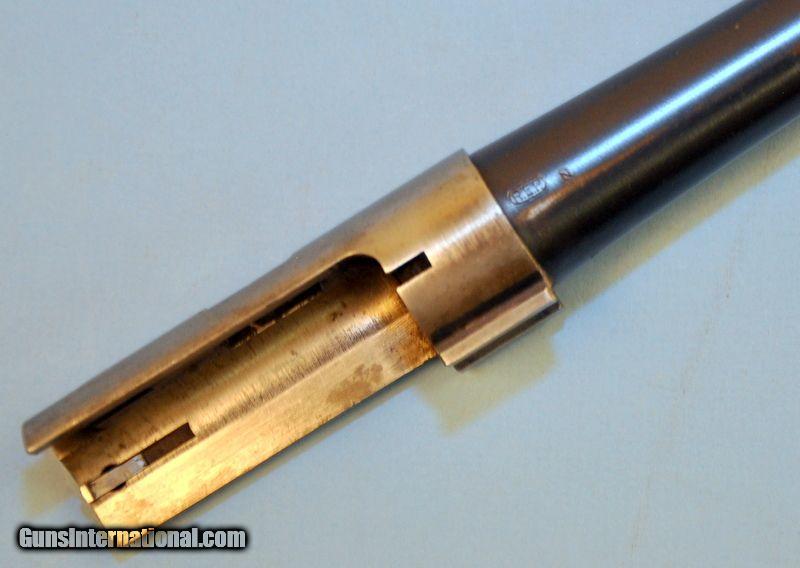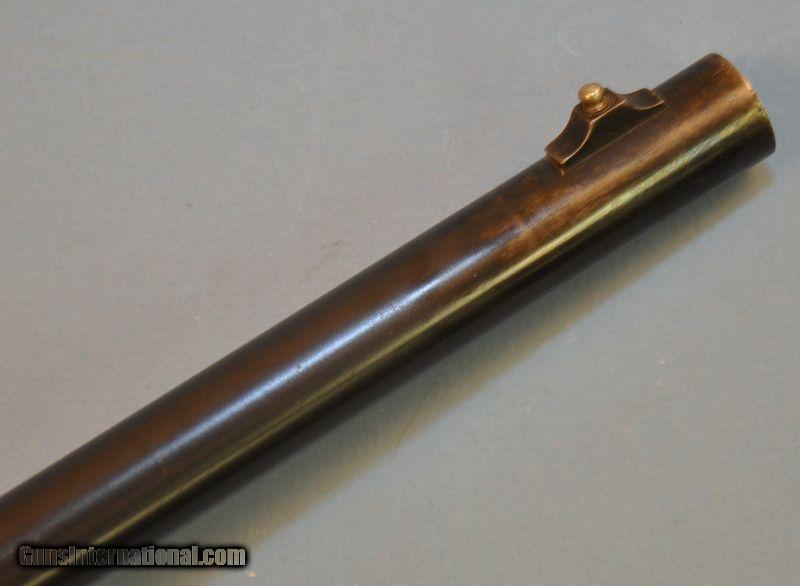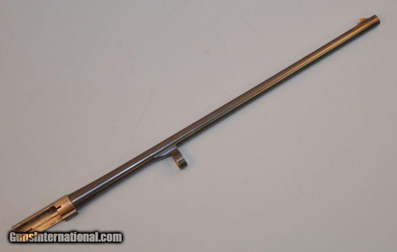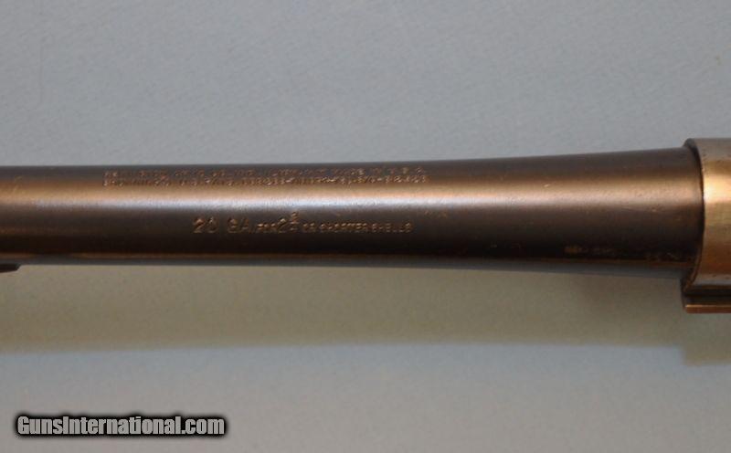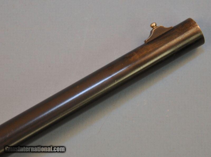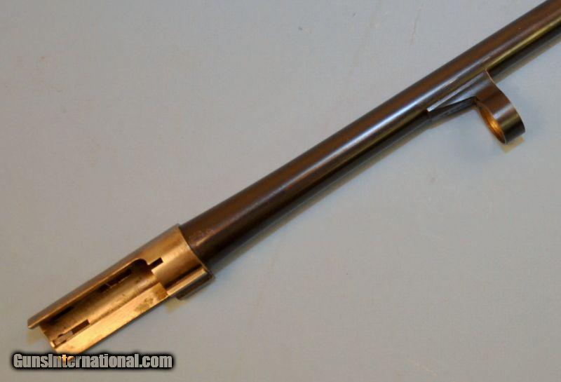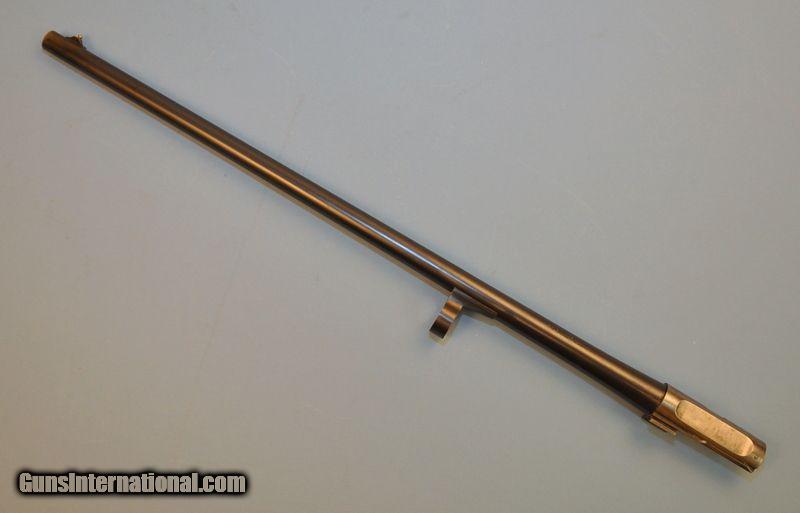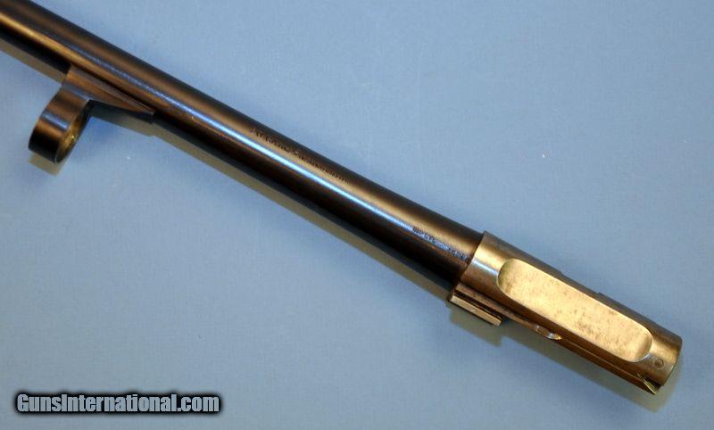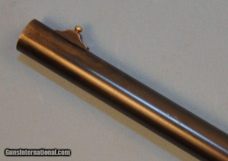 Description: 2-3/4" chamber. Plain barrel shortened to 23-7/8" with CYL. bore. Original choke marking is "Imp-Cyl". 90% blue with area of touch up near muzzle around re-attched front sight. Smooth bright bore. Priority mail $15.00 SOLD |