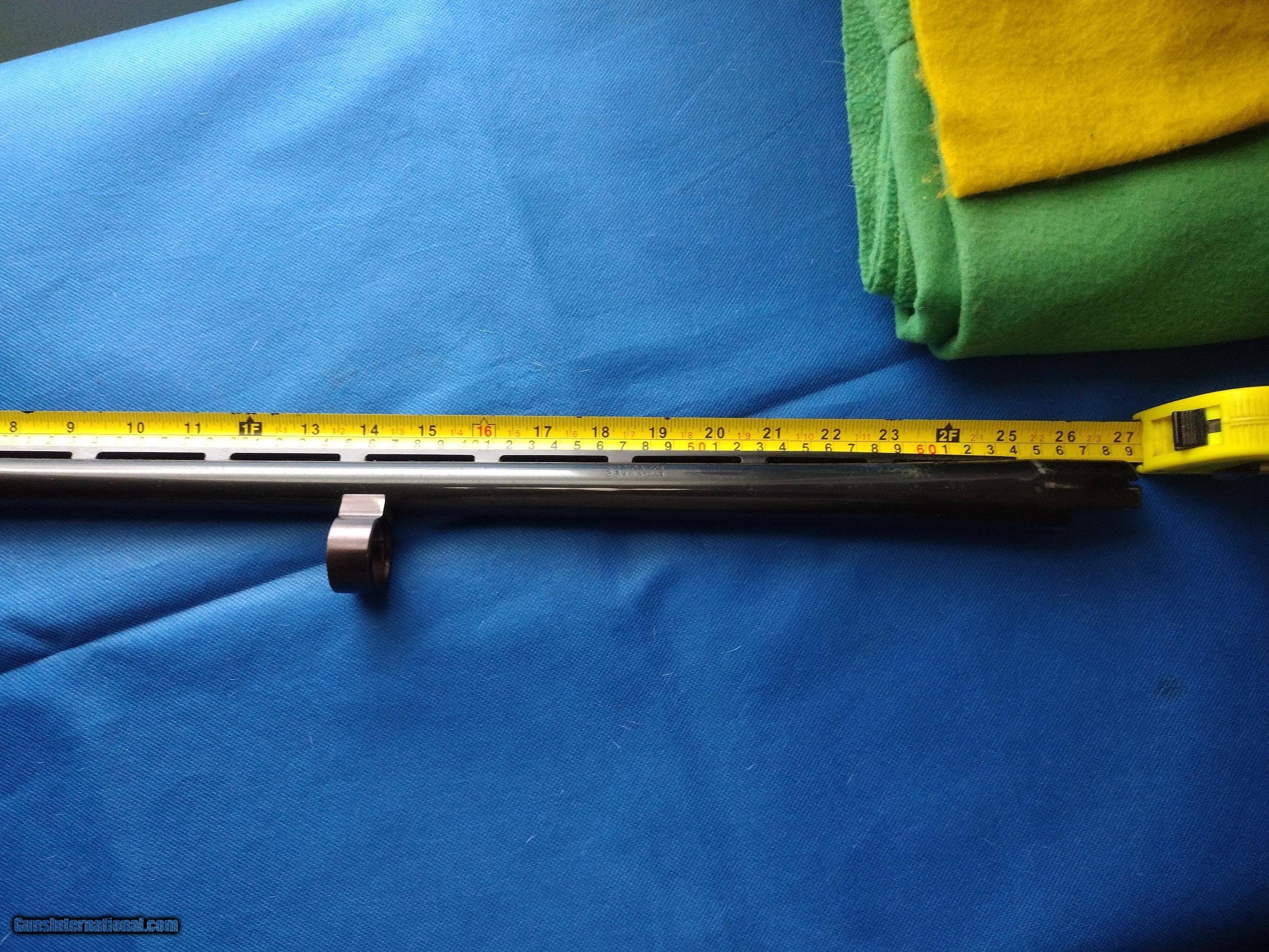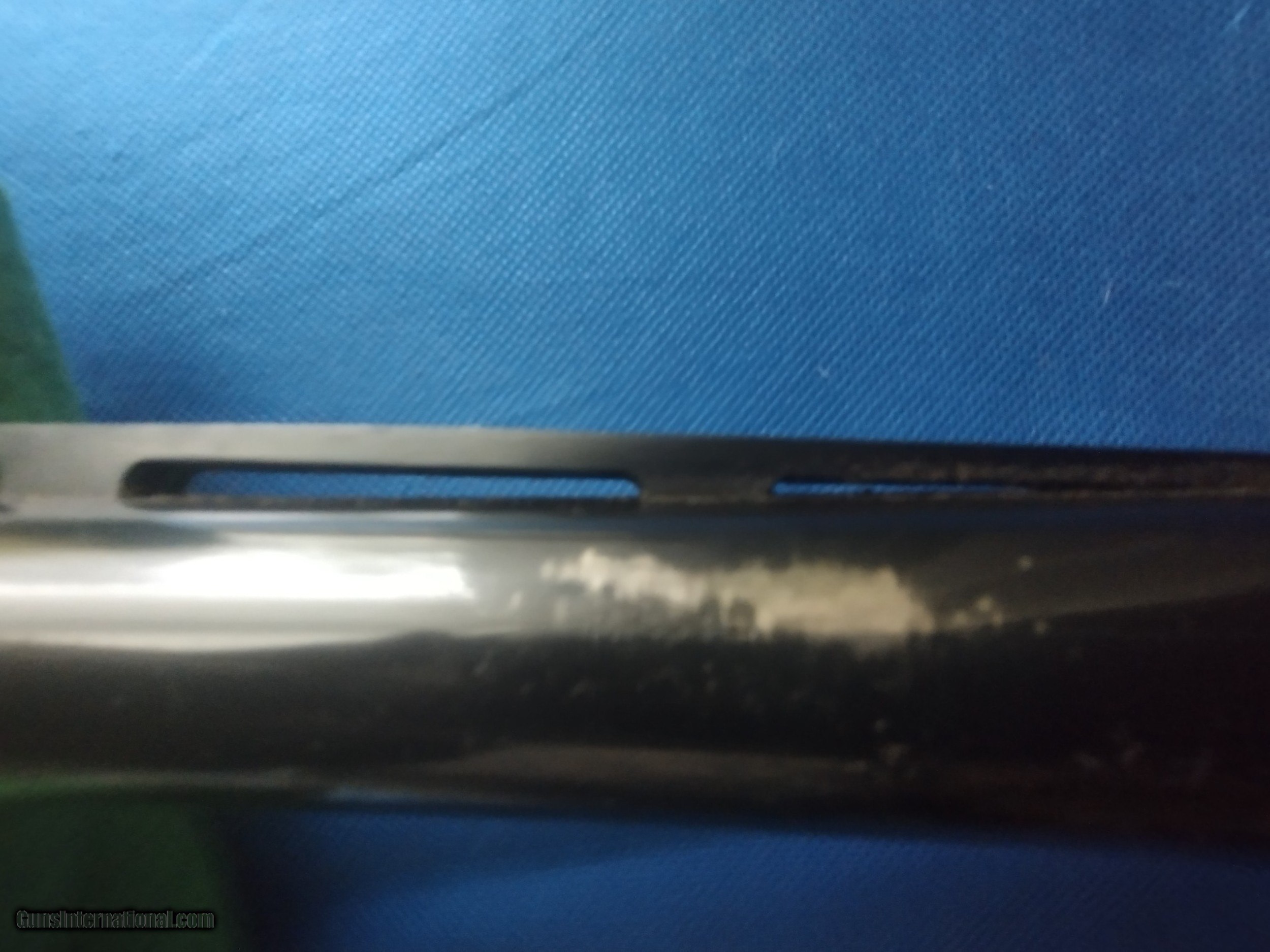 Description: SOLD To ( Jay in kittery , Maine ) I have a nice original finish, gloss blue, 12 gauge Remington model 870 wingmaster barrel with a vent rib, chamber is 2 3/4 inch, in the very hard to get 26 inch Improved cylinder, mirror bore, with slight amount of blue loss, overall a very nice original barrel, questions or to purchase please contact me by phone 573 820 4015 thanks Steve SOLD |