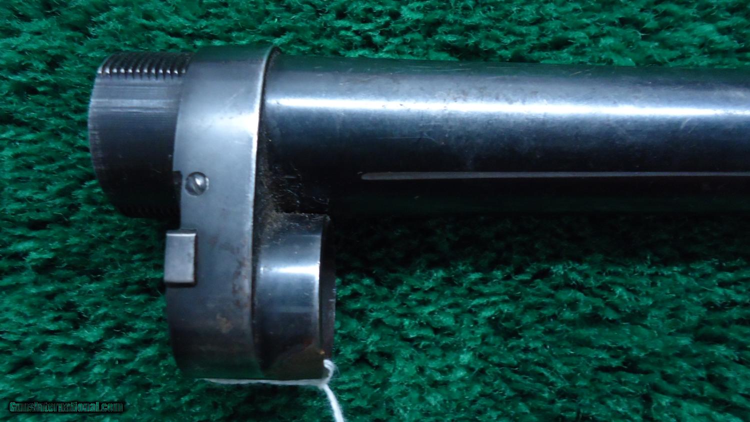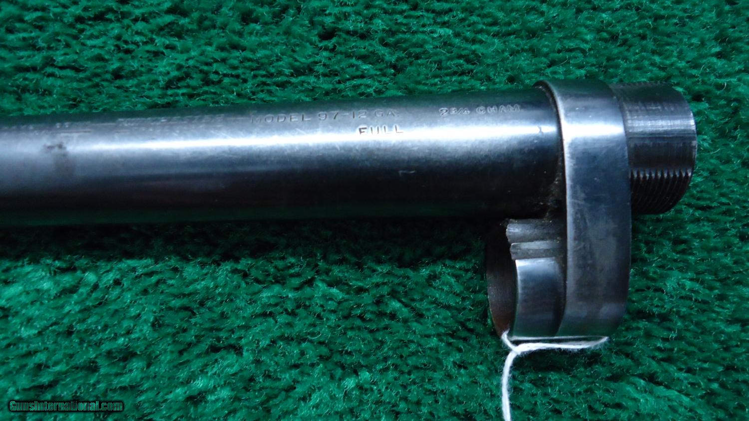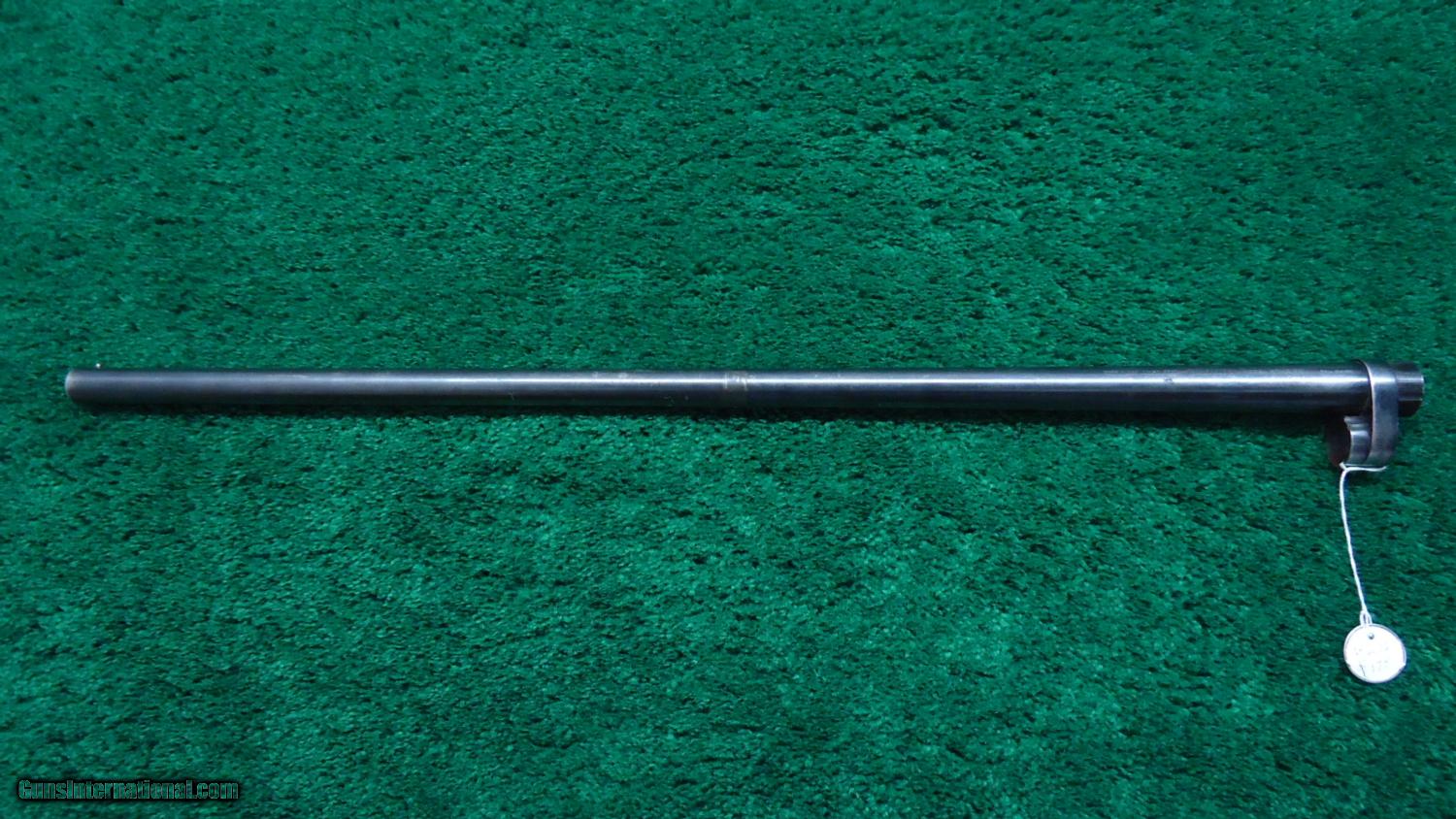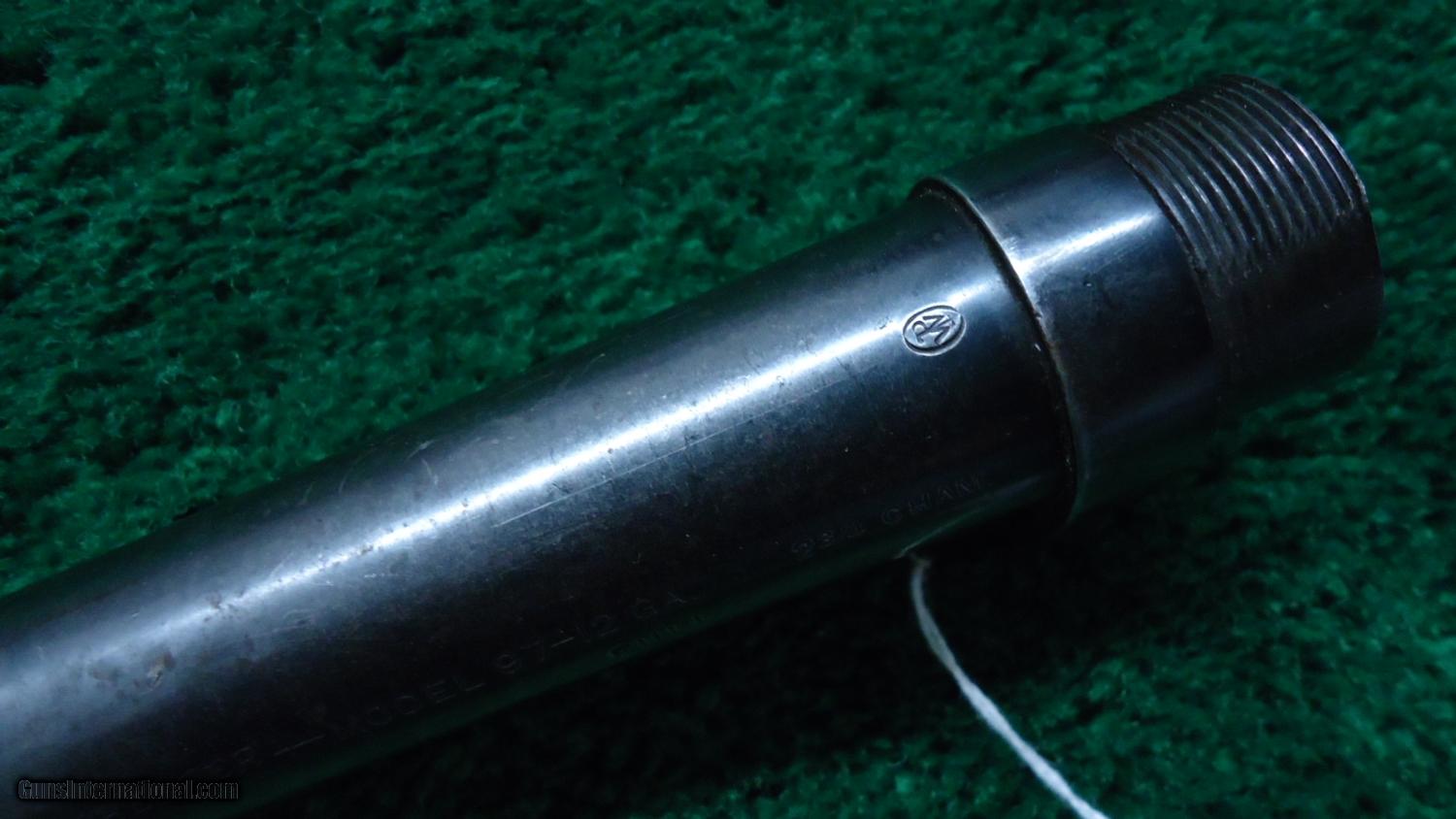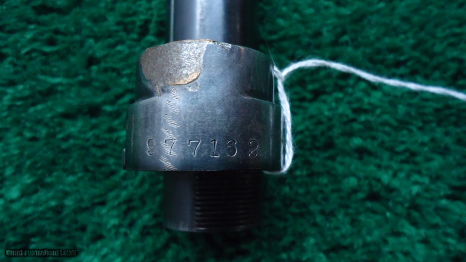 Description: Bbl only for a Winchester model 97. 30" 12 ga full choke. In relatively good cond with some blue. A lot of scratches and wear marks. Good markings and the threads are good. Looks like there was some sort of repair on the ring where the mag tube would go. Inside the bbl looks good but has a lot of leading and needs a good cleaning. If you have a 97 with a burst bbl this could work out for you. Leroy Merz Antique Firearms specializes in antique and vintage Winchesters and other fine American firearms. Since 1965 Mr. Merz has taken part in the world of firearms and has been a contributor to many well known reference books. Just recently we mailed the 126th edition of our privately-published catalog. We have hundreds of additional guns in every price range at our home online. Search for Merz Antiques in google. SOLD |
