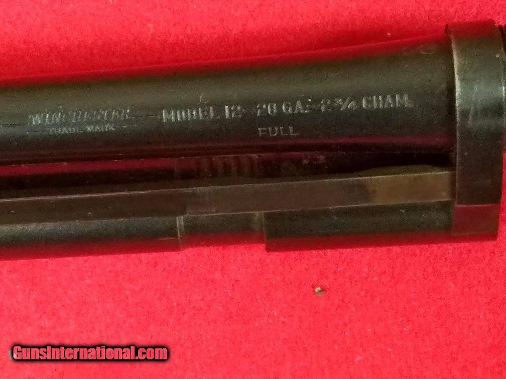 Description: Winchester Model 12 20 ga. Barrels. Full choke, 25 1/2 " length, bright bore, excellent condition. Serial number 209XX. SOLD |