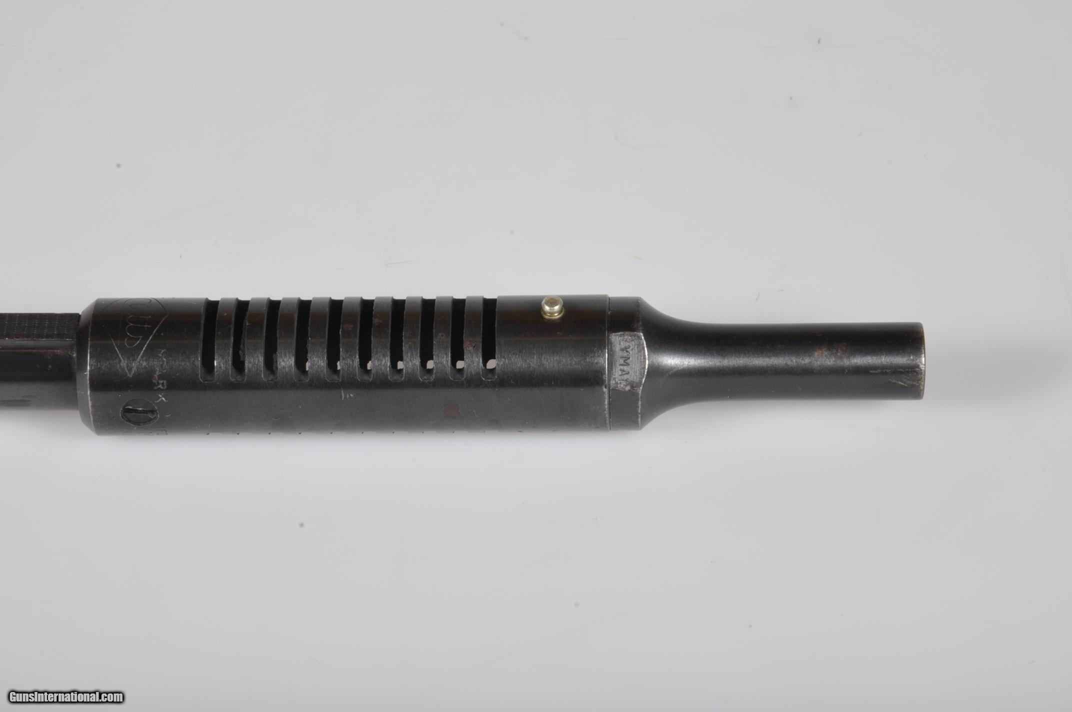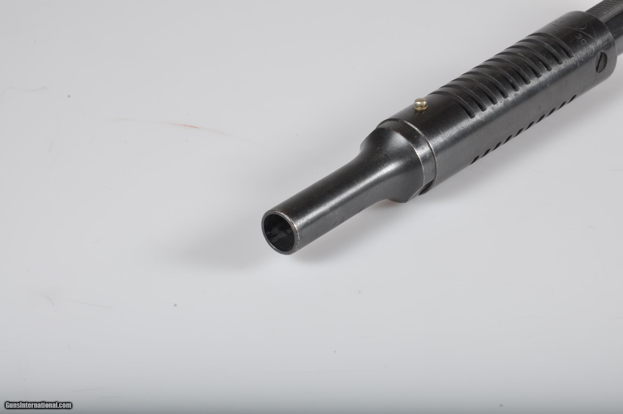 Description: This barrel has a 3” chamber, solid rib and a Cutts compensator installed on it. The barrel retains 90% bluing with wear marks from the pump arm and magazine tube. There is some light surface rust in areas on the rib. The compensator retains 99% bluing with a few spots of freckling. The choke in the compensator is MOD. The barrel threads are in good condition. The bore is bright and shiny. My office hours are 7am-4pm CST Monday through Thursday. Emails or phone calls received after hours and on the weekend will be answered on the following business day. SOLD |