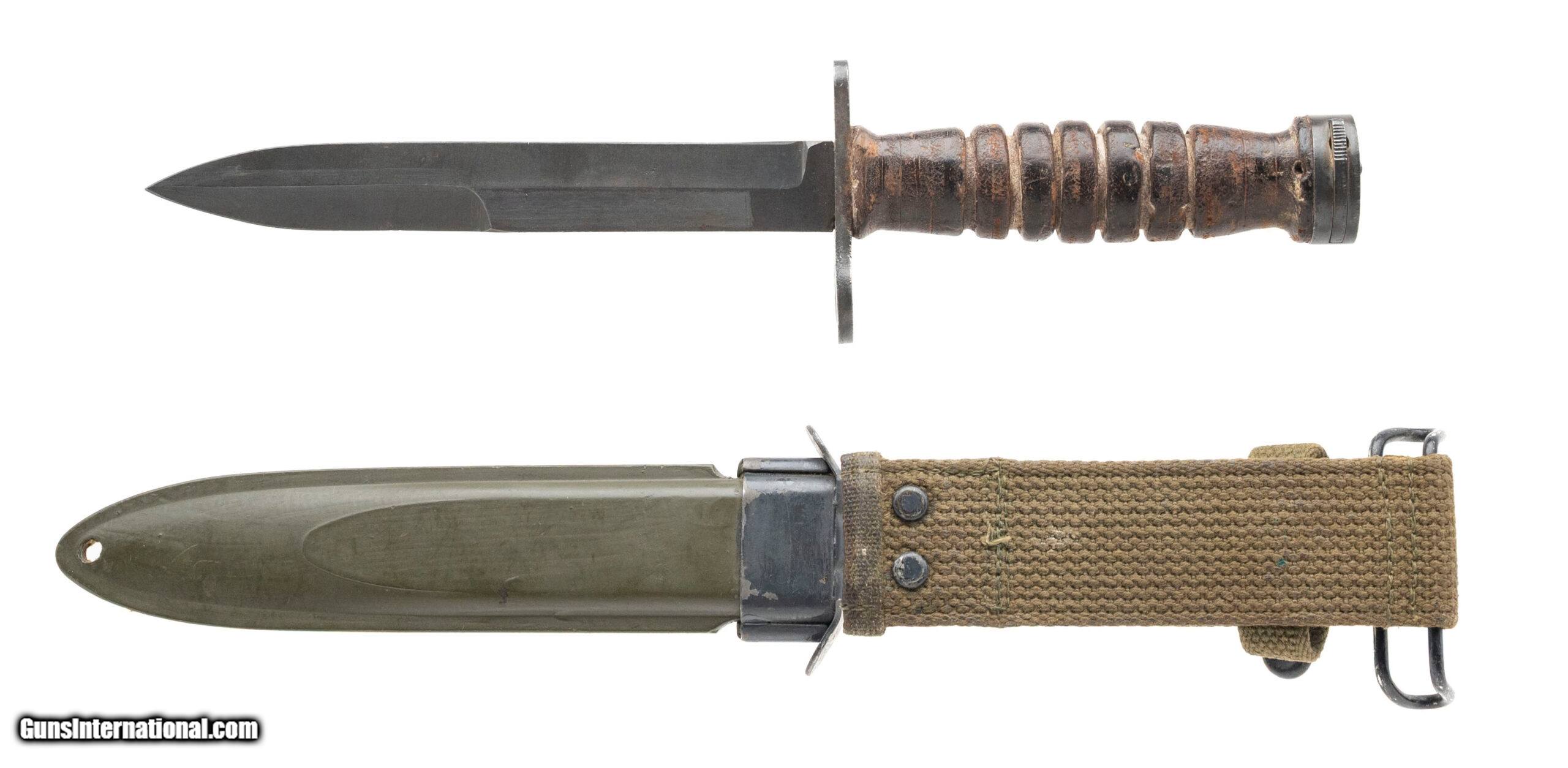 Description: "USGI Aerial 6.5-inch M4 bayonet for the M1 Carbine & an original USGI M8A1 fiberglass-reinforced nylon scabbard. Price: $225.00 Contact Seller |