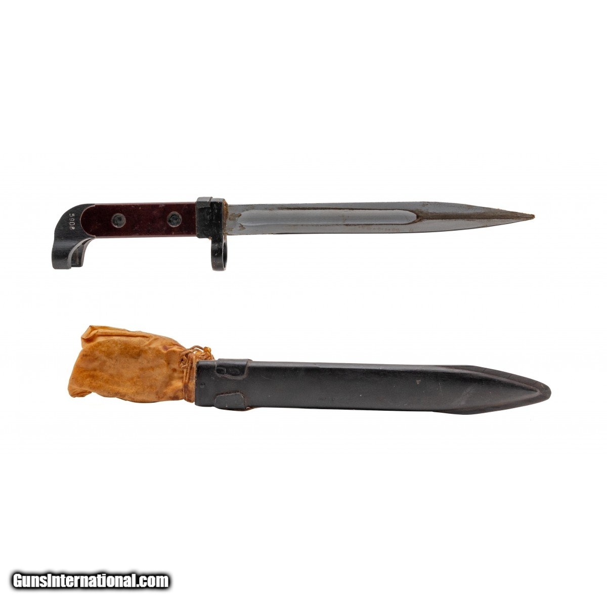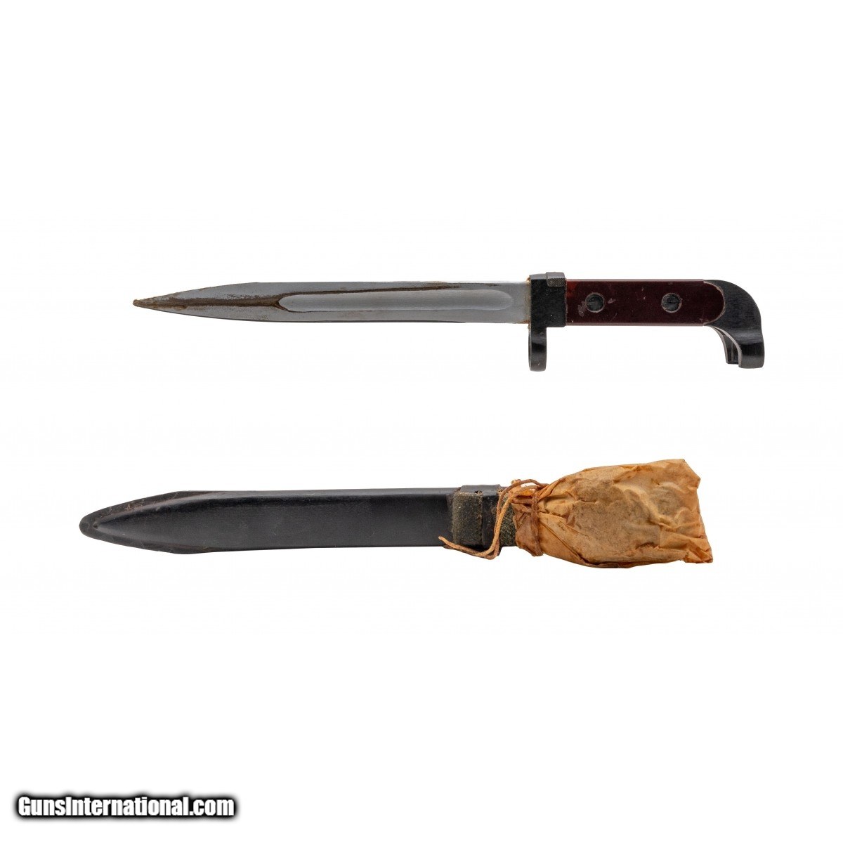 Description: " AK Bayonet with 4"" bakelite handle and 8"" blade. Overall condition is very good. Comes with scabbard. SOLD |