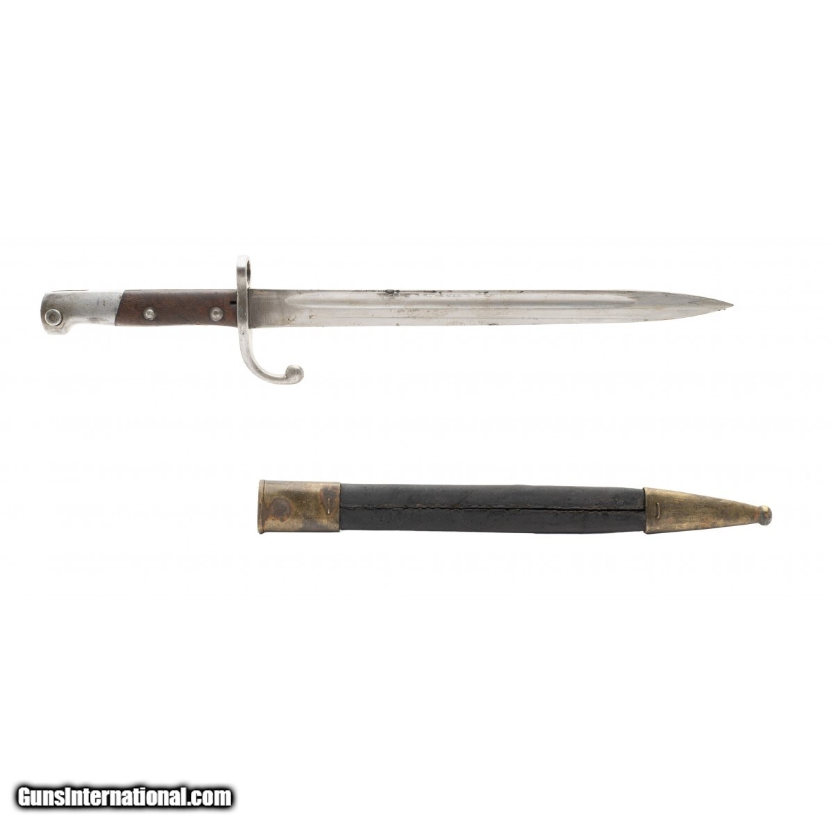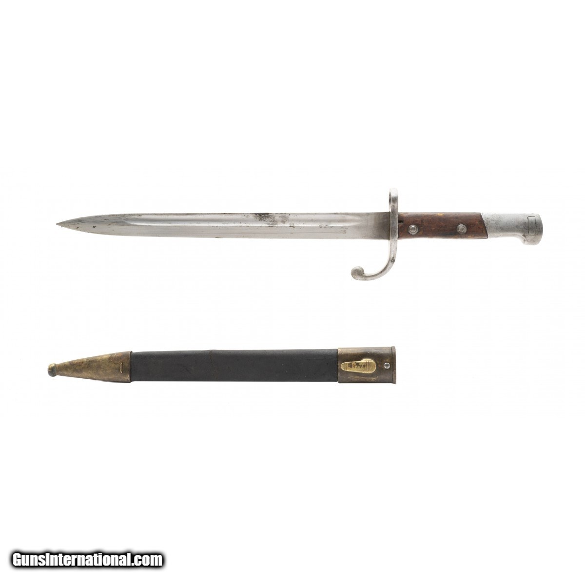 Fits brazillian 1908 rifle. Ricasso is unmarked. Top side of the guard is marked ""FCSAP."" Underside of the gaurd is marked ""1022."" There are a couple areas of pitting on the blade. Overall condition is very good.