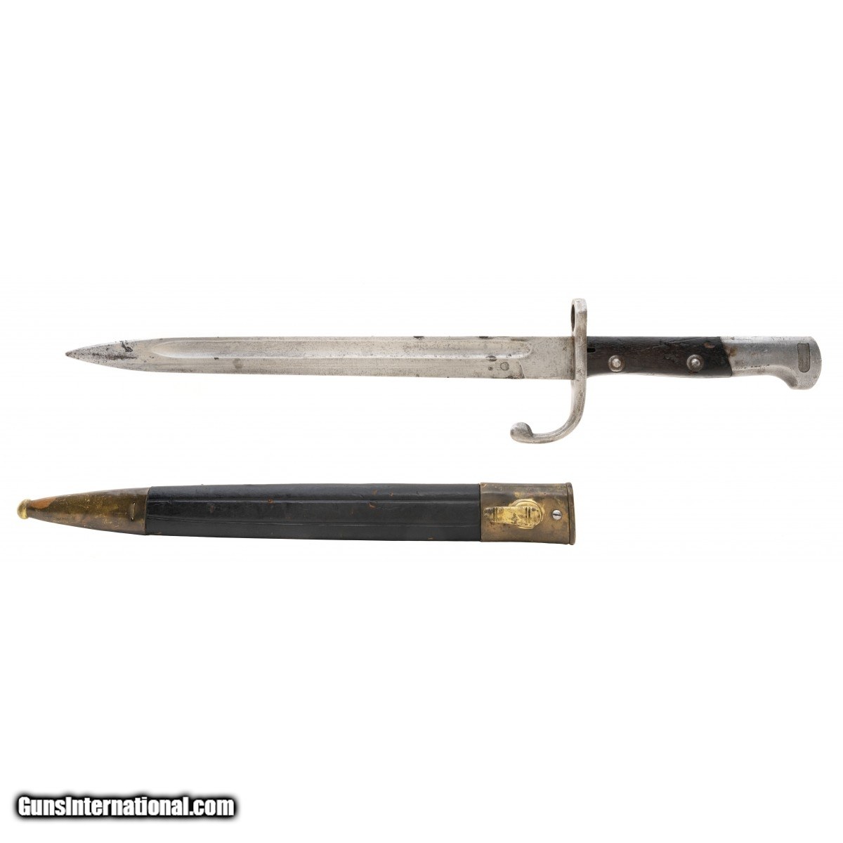 Description: " Brazilian model 1908 bayonet in very good condition.Scabbard is the best.Blade has two dark spots. SOLD |