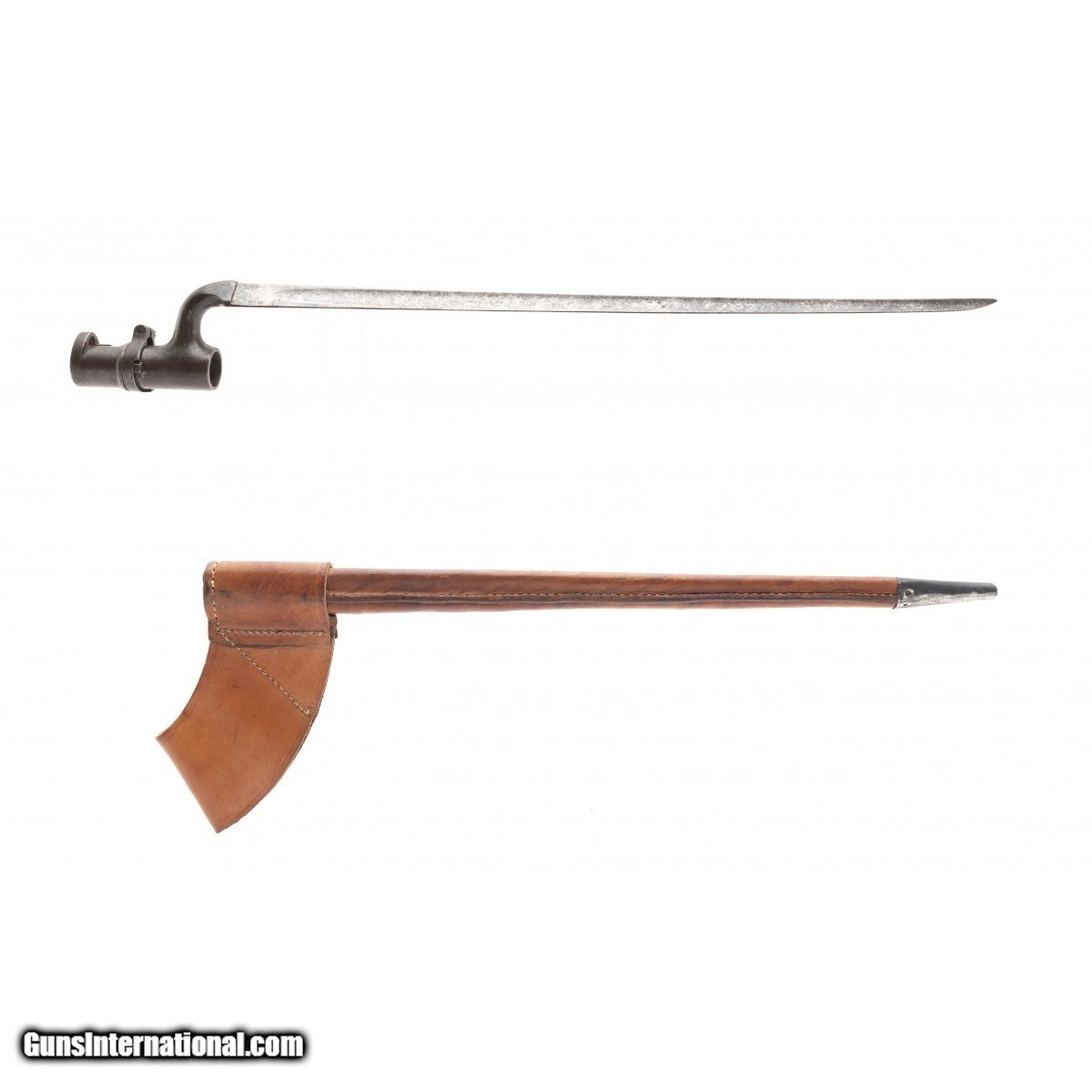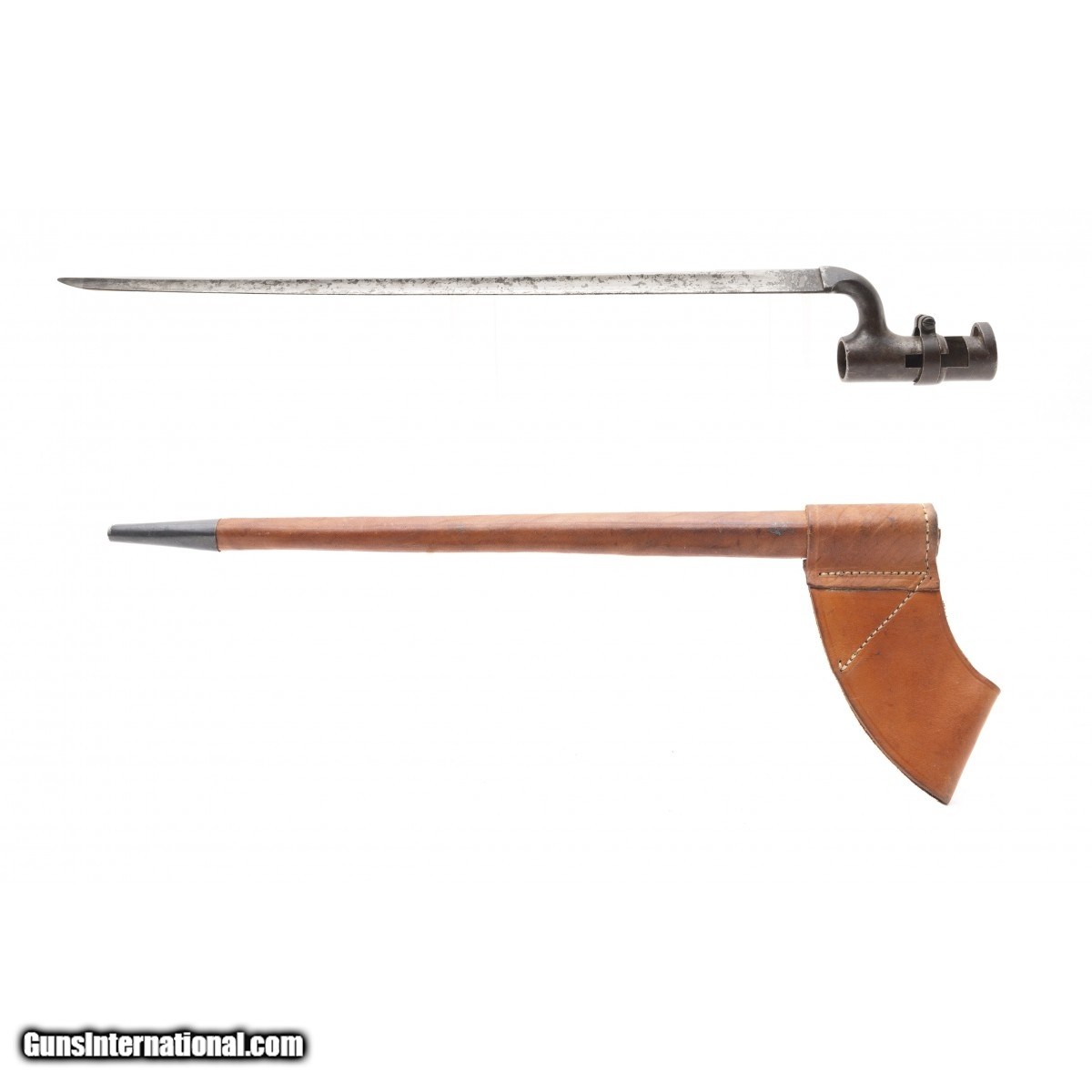 Description: " British Enfield 1853 pattern socket bayonet. Blade has been shortened to 17"". Good overall condition with reproduction scabbard. SOLD |