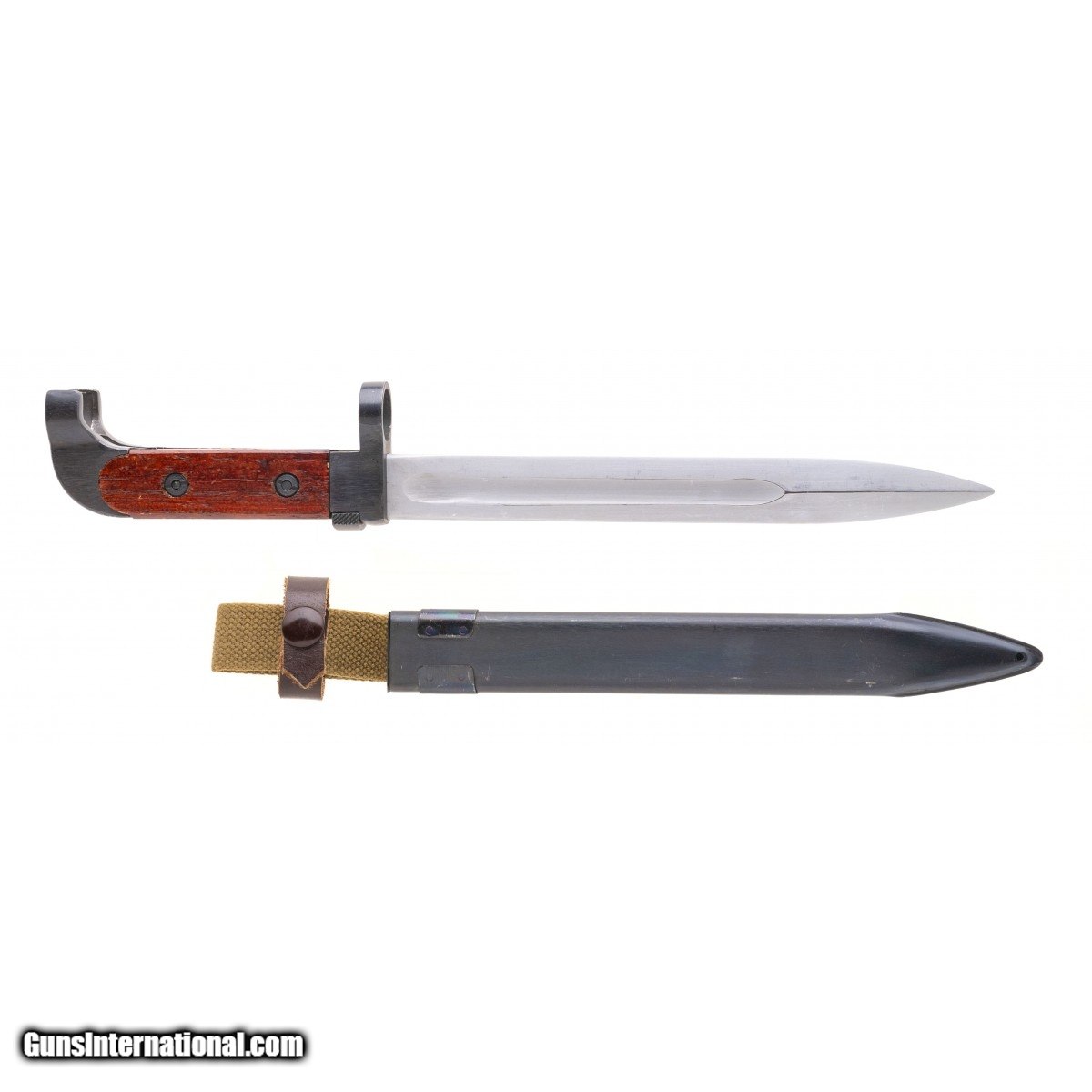 Imported Chinese Kalashnikov knife bayonet from the 1980s for Polytech & NORINCO (China North Industries Corporation) Kalashnikov Type 56 semi-automatic clone rifles. In excellent condition with original scabbard.