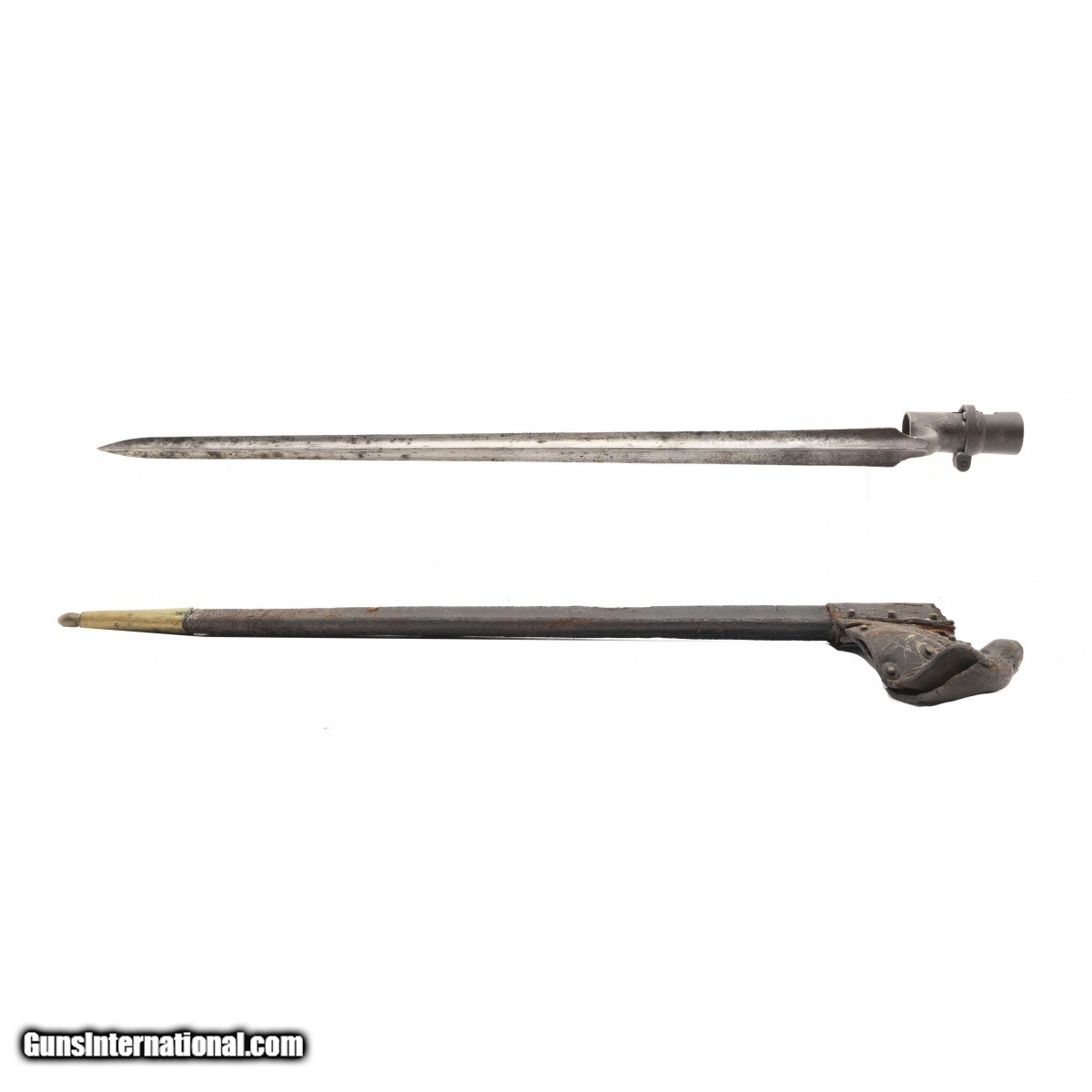 Description: " French socket bayonet. Shank is marked ""NB"". Socket is marked ""D"" over ""4117"". Ricasso has a crown over T with a makers sink of a K. Metal has a brown patina. Leather scabbard shows age. Socket diameter is approximately .85"". SOLD |
