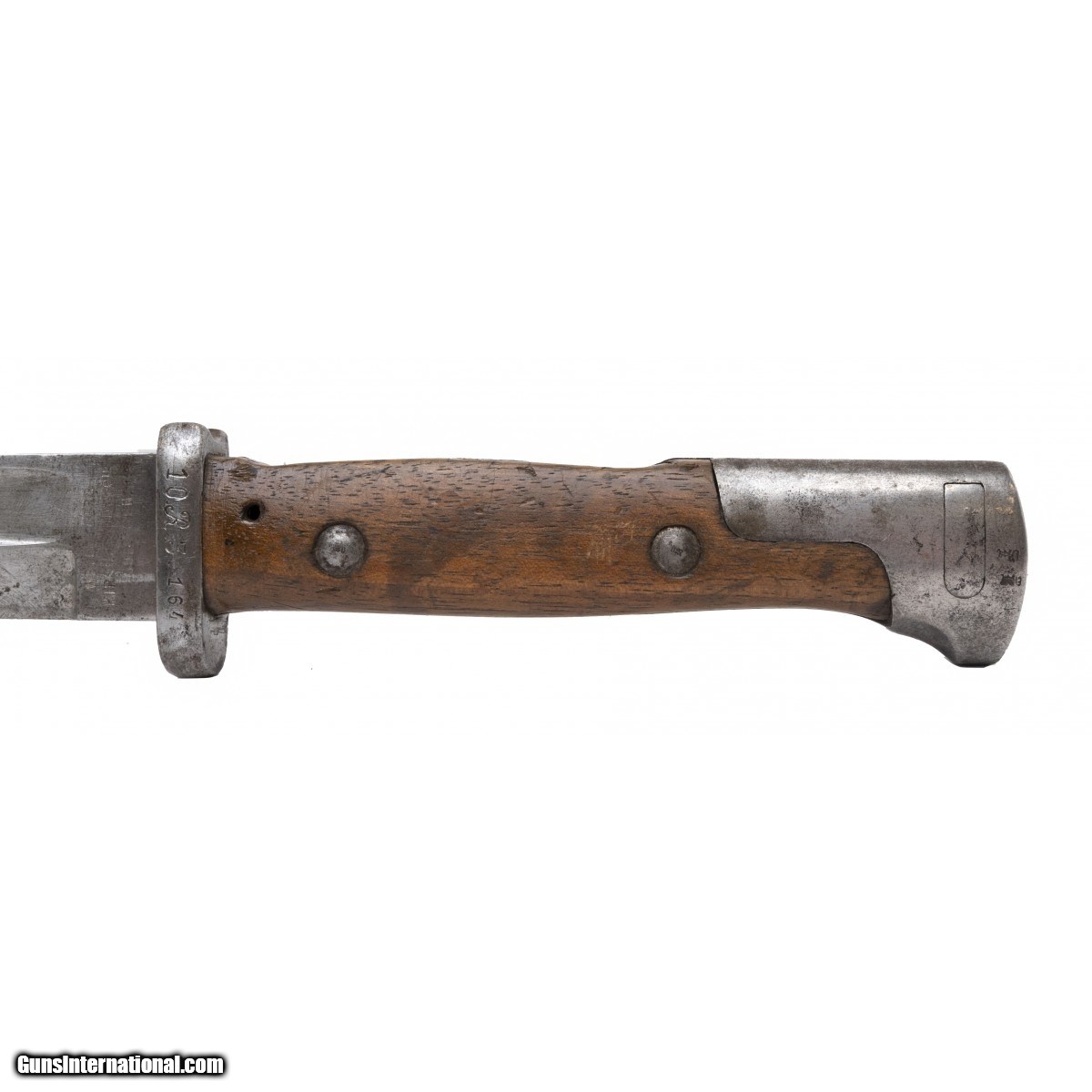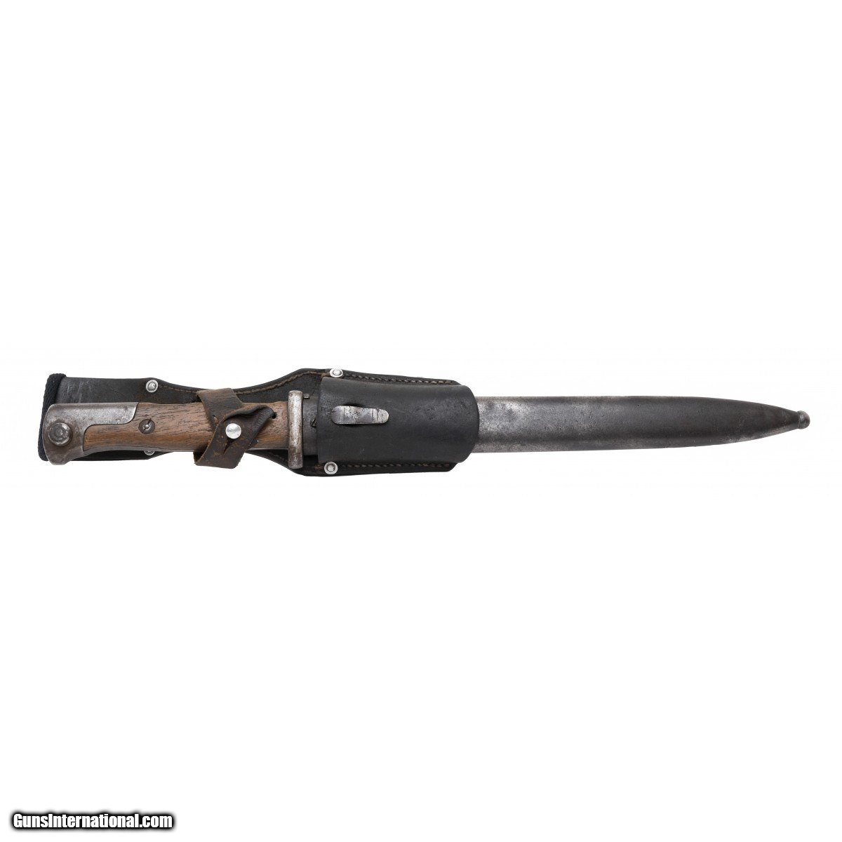 Scarce early '98 bayonet. Converted from model 1871/84 bayonets. Spine has an 1889 date. Guard is unit marked 10.R.3.164. Ricasso is marked Erfurt. Scabbard is a later replacement. Hard to find!