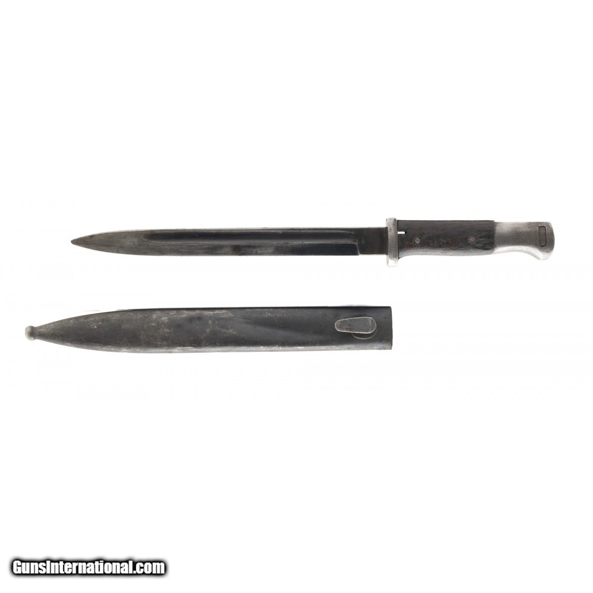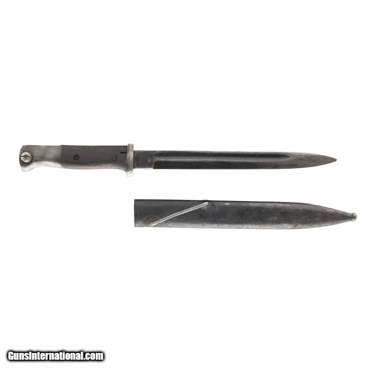 Bayonet is un-marked. Scabbard is WWII German military issued and altered post war with an added belt bar on opposite side of stud. Good overall condition.
