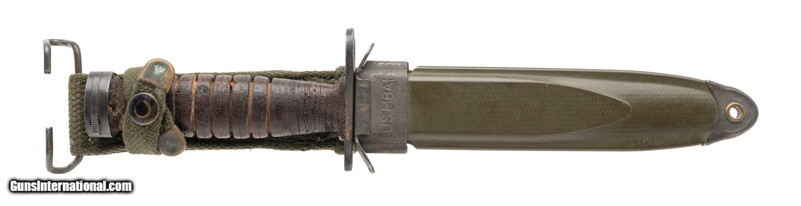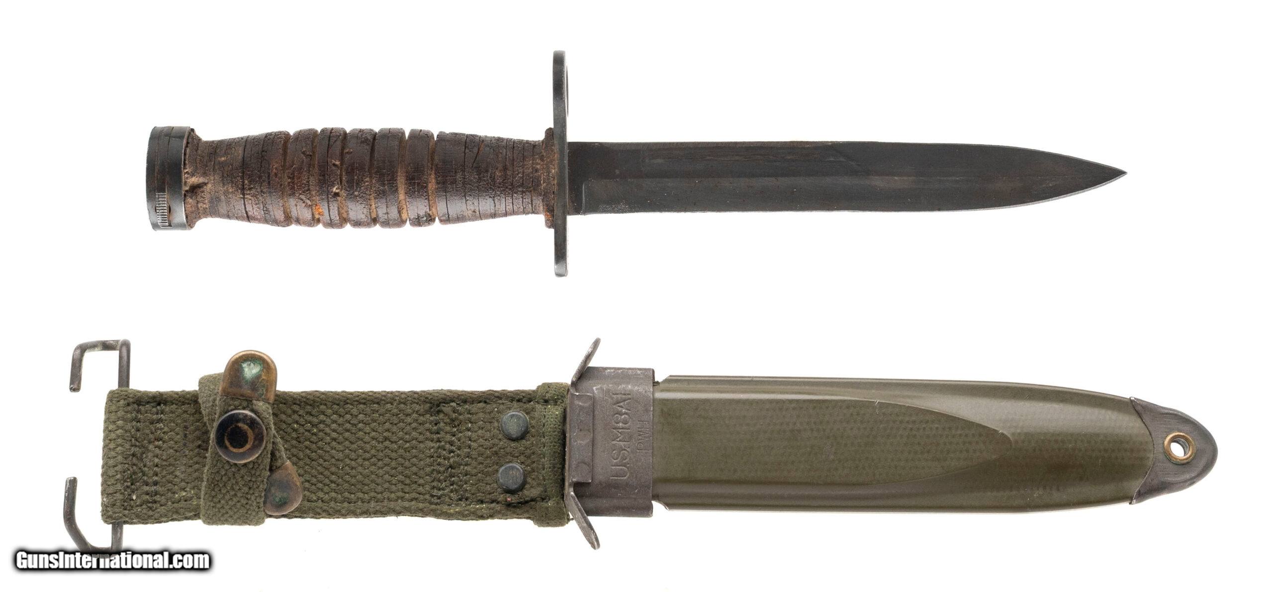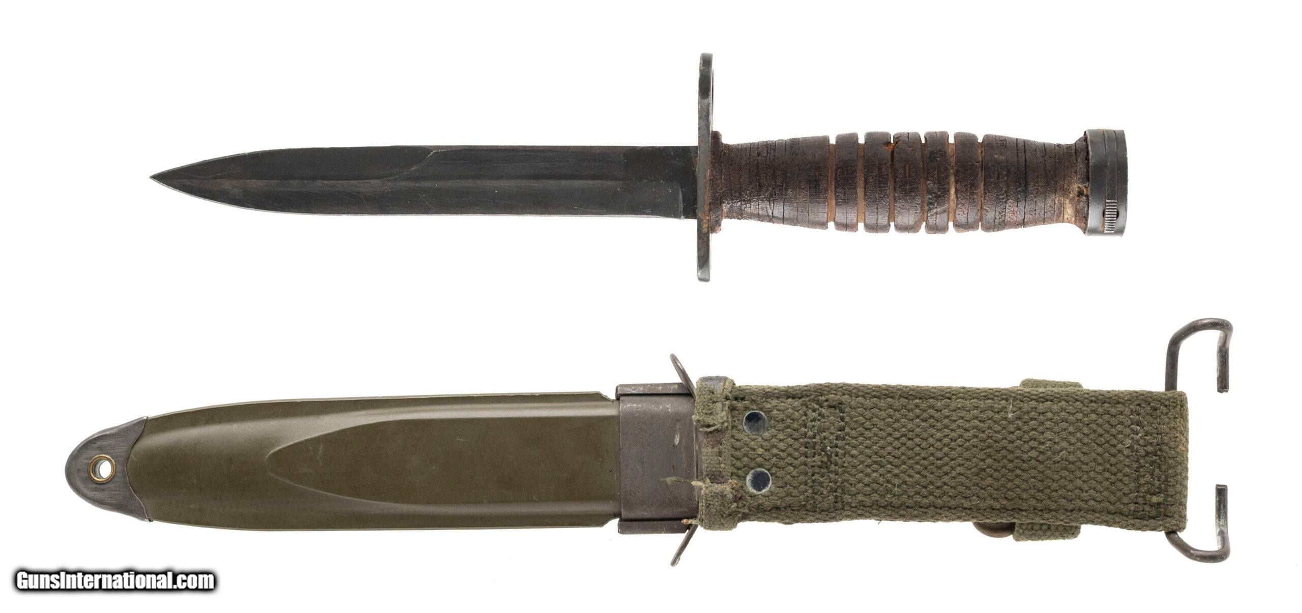 Description: "USGI KINFOLKS 6.5-inch M4 bayonet with M8A1 fiberglass-reinforced nylon scabbard for the M1 Carbine. Price: $175.00 Contact Seller |