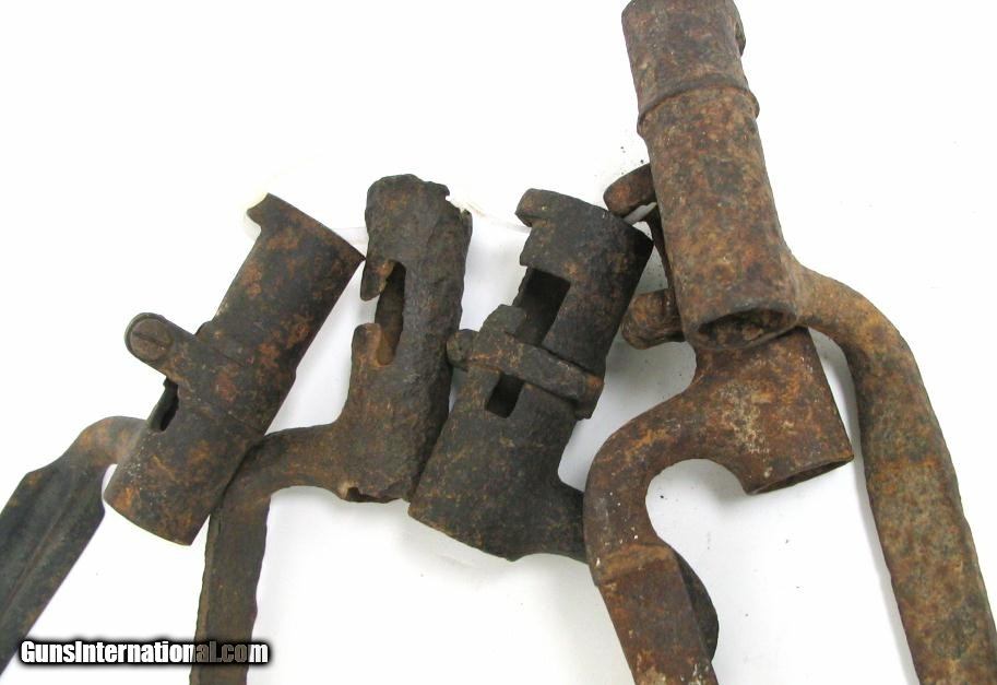Description: "Lot Of 5 Excavated Bayonets U.S. muskets and European etc. Very colorful display items as accessories. SOLD |