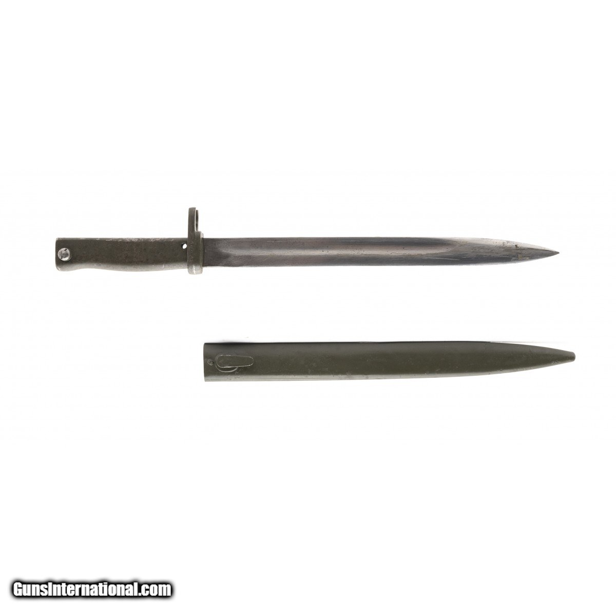 Description: " Turkish WWI era bayonet. Scabbard fit is tight. Guard has Turkish markings. Scabbard and handle have an old paint. SOLD |